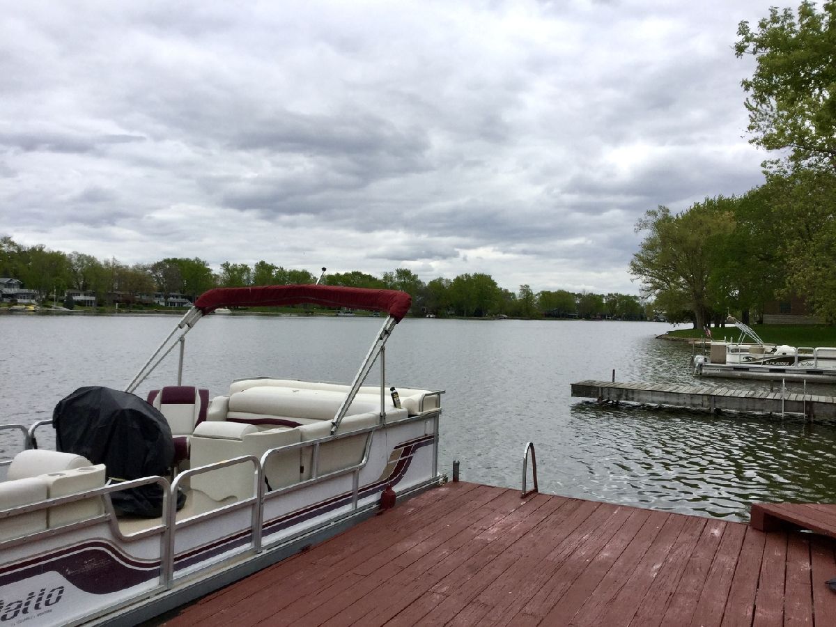 Relax and enjoy this wonderful waterfront property at Bayles Lake! Soak in water views from throughout this home. You'll be impressed from the moment you enter with the beautifully updated open concept main level. The spacious living room is filled with natural light pouring in from the windows and double doors that lead out onto the deck. The kitchen offers all stainless steel appliances, stunning quartz countertops, beautiful backsplash, and white cabinetry! Gorgeous hardwoods flow throughout the main level of the home. In the master suite, you'll enjoy the walk-in closet and the relaxing escape of your private balcony overlooking the lake! Three additional bedrooms and a full bath highlight this move-in ready property. You'll enjoy all that lake life has to offer at this one: a front row seat for fireworks over the lake, a fire pit area, a newly refurbished deck (2020). The heated garage has front and back over head doors for easy access to the lake with the boat. Property includes a pontoon with new vinyl flooring. Schedule your showing today!