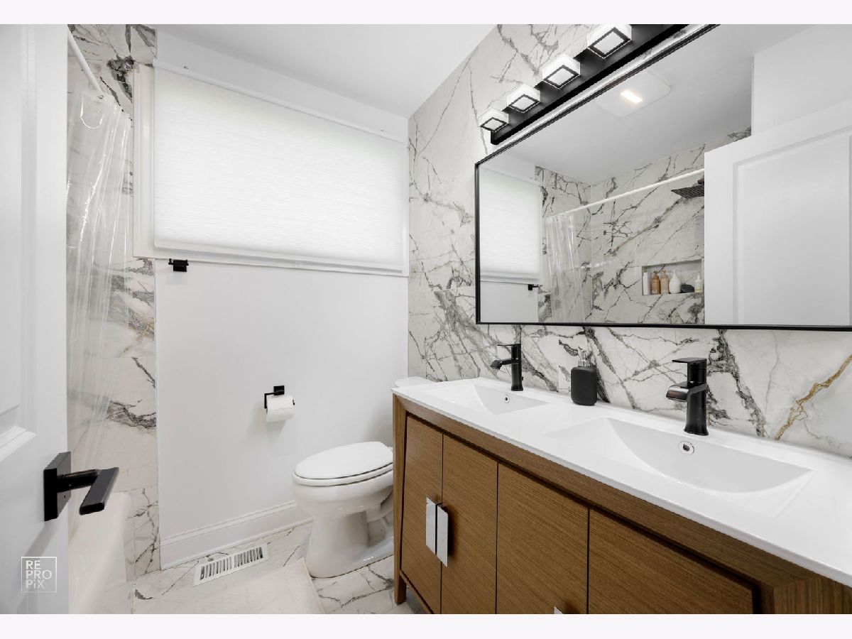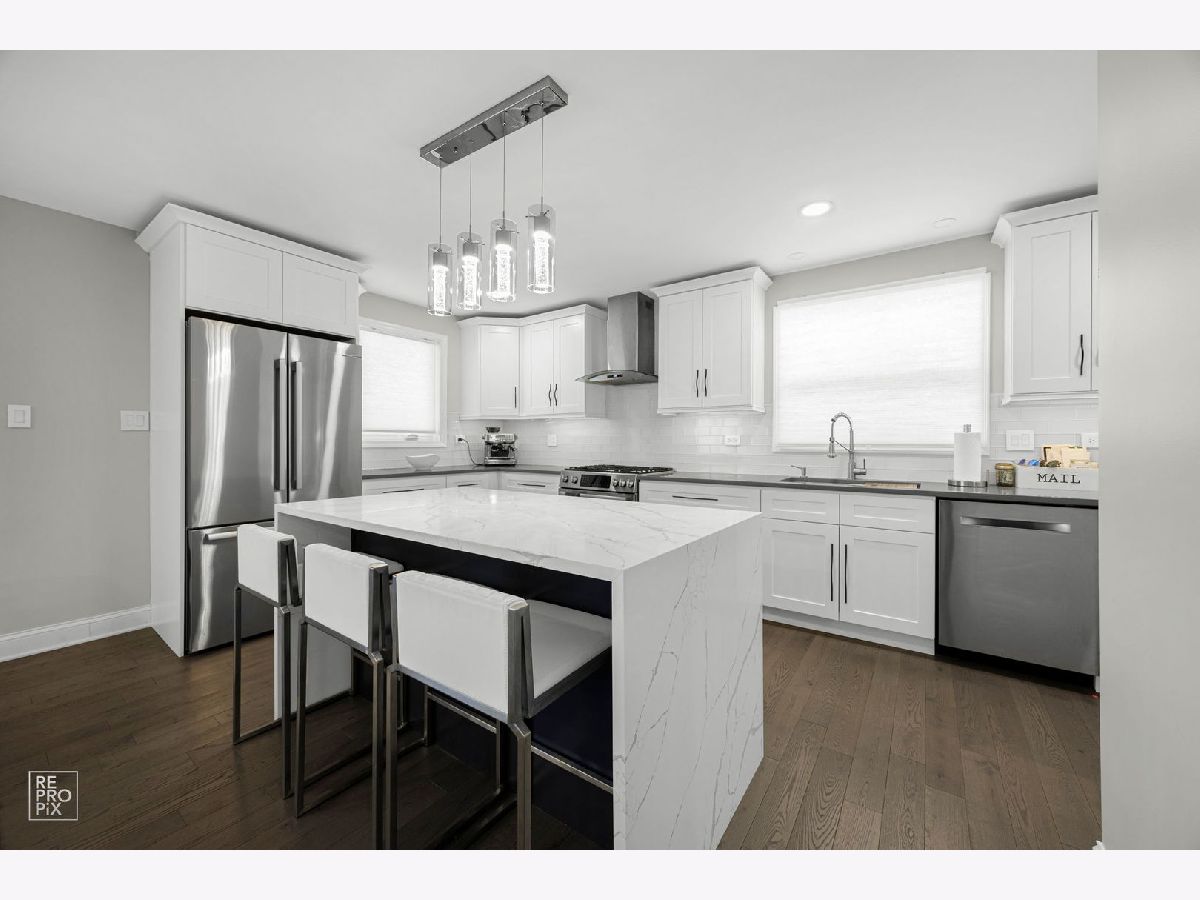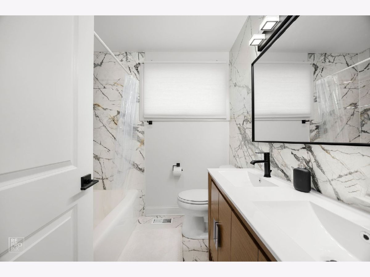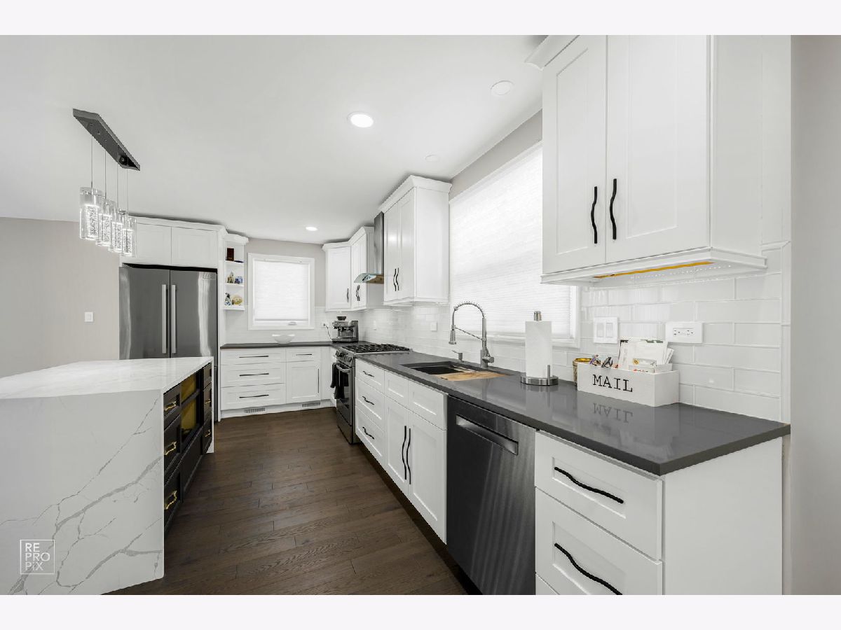 Beautifully Renovated Brick & Stone Ranch. This fully remodeled 3-bedroom, 2-bath ranch offers 1,350 sq ft of stylish, move-in-ready living. Enjoy a new kitchen with quartz countertops, updated baths, brand-new windows, subflooring, and elegant 4-inch oak hardwood floors. The finished basement with vinyl flooring adds flexible space for a family room, office, or guest suite. Major updates include new plumbing, electrical panel, a 2010 roof, and a 2017 HVAC system. Located within walking distance of the Metra, Downtown, top-rated schools, and Melas Park-offering the perfect blend of comfort, convenience, and community.