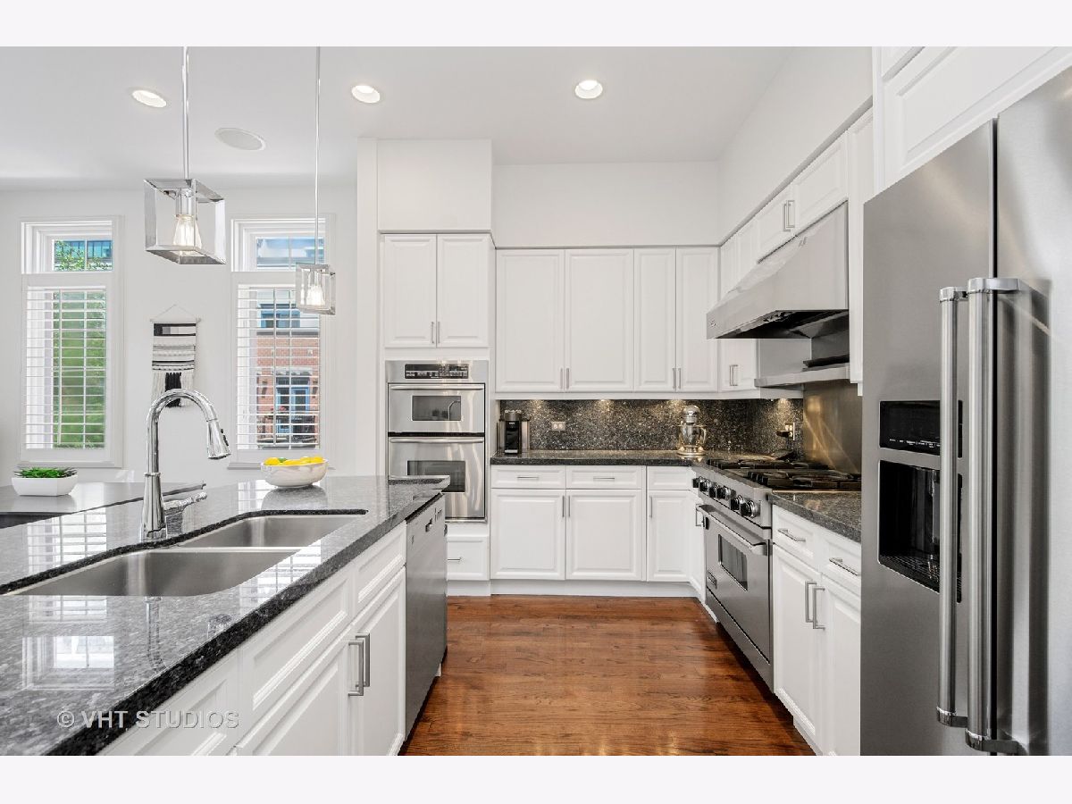 Rarely available extra wide end unit at River North's coveted Tuxedo Park. Lives like a single family home! This light filled home has been completely redone and features 3 spacious bedrooms, 2.5 baths and 4 outdoor spaces. Open floor plan with massive living/dining room area. Large eat in kitchen redone with white cabs, Viking 6-burner range/ KitchenAid/ Bosch, opens to great room w/fireplace, built-ins and balcony perfect for grilling. Huge master suite w/custom walk-in closets, gorgeous bath feats Grohe/Toto/huge walk-in shower & more. Top level is an entertainers dream w/huge rooftop deck w/amazing city views & additional family room. Perfect for summer entertaining. Spacious laundry room, custom plantation shutters throughout, attached garage parking w/additional deeded spot incl. Walk to the best restaurants, East Bank Club, parks, transportation, and the Loop.