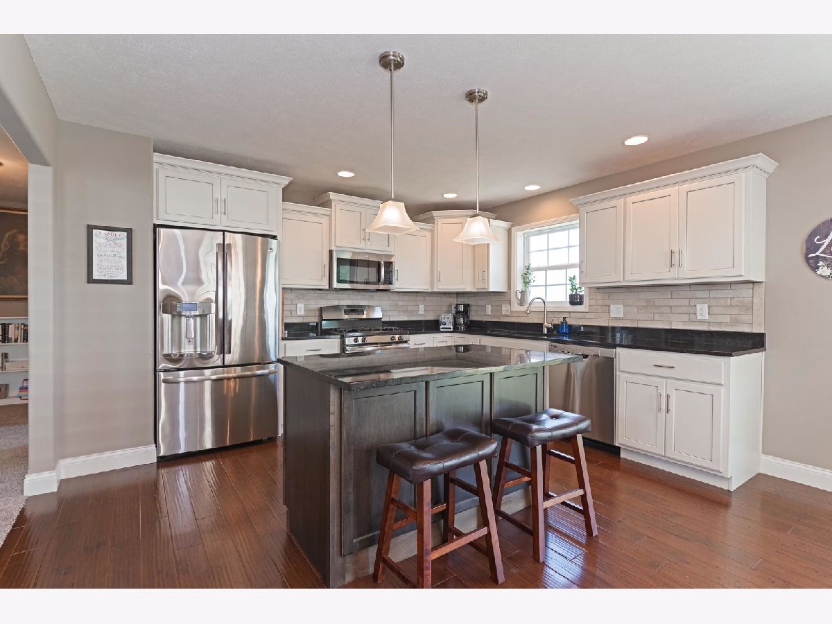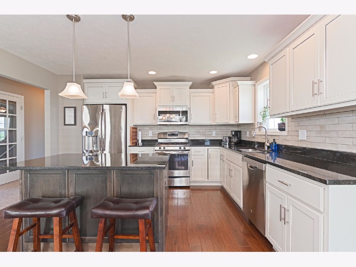 Shows like new!!! NO Backyard neighbors!!! Beautiful landscaping!!! First Floor Master Suite with dual closets! Open floor plan with vaulted ceiling and gas fireplace! Wood floors in kitchen and dining area. Island and granite countertops! Backsplash in kitchen was added in 2018. Owner added cabinets in laundry room too! Half bath is off laundry room and garage. In 2017 basement was finished with bedroom, full bath and nice sized family room.(water proof pad in carpet). New carpet in 2020 on main floor and upstairs! This one won't last!!!