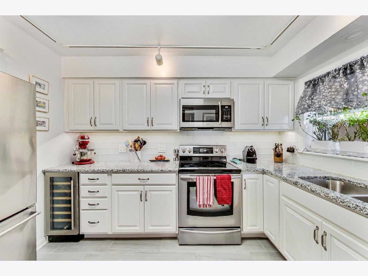 This sunny and spacious Evanston condo is ready for you to move in. Wonderfully maintained, this 2BR, 2BA corner unit has parking, a new kitchen, new electric panel and cherry engineered wood flooring throughout. Location puts you close to Evanston's awesome Lake Michigan beaches, trails and soul refreshing lakefront parks, excellent shopping & dining on the Main-Dempster Mile and easy public transportation options to downtown Chicago or Northwestern University. Get cooking in the bright and lovely kitchen that was remodeled in 2019 with new cabinets, back splash, granite counters, stainless steel sink, tile floor, and an under counter wine/beverage fridge! Stainless steel fridge, stove and dishwasher were replaced before 2019 remodel. Enjoy fresh air, outdoor dining and grilling on your private balcony. Primary bedroom has en-suite bath and a large walk-in closet. Second bedroom, currently set up as an office, is across from the second full bath. This ground floor unit could be ideal for those who prefer no stairs or elevators. The HVAC system was replaced in 2014 for heat and central A/C. Laundry on each floor. Within Evanston public school boundaries for Lincoln, Nichols and ETHS. Several outstanding private schools are close, too. Near St. Francis Hospital campus with pharmacy, professional offices and daycare. Unit can be rented and cats OK within HOA rules. A quick close is possible. Welcome home!