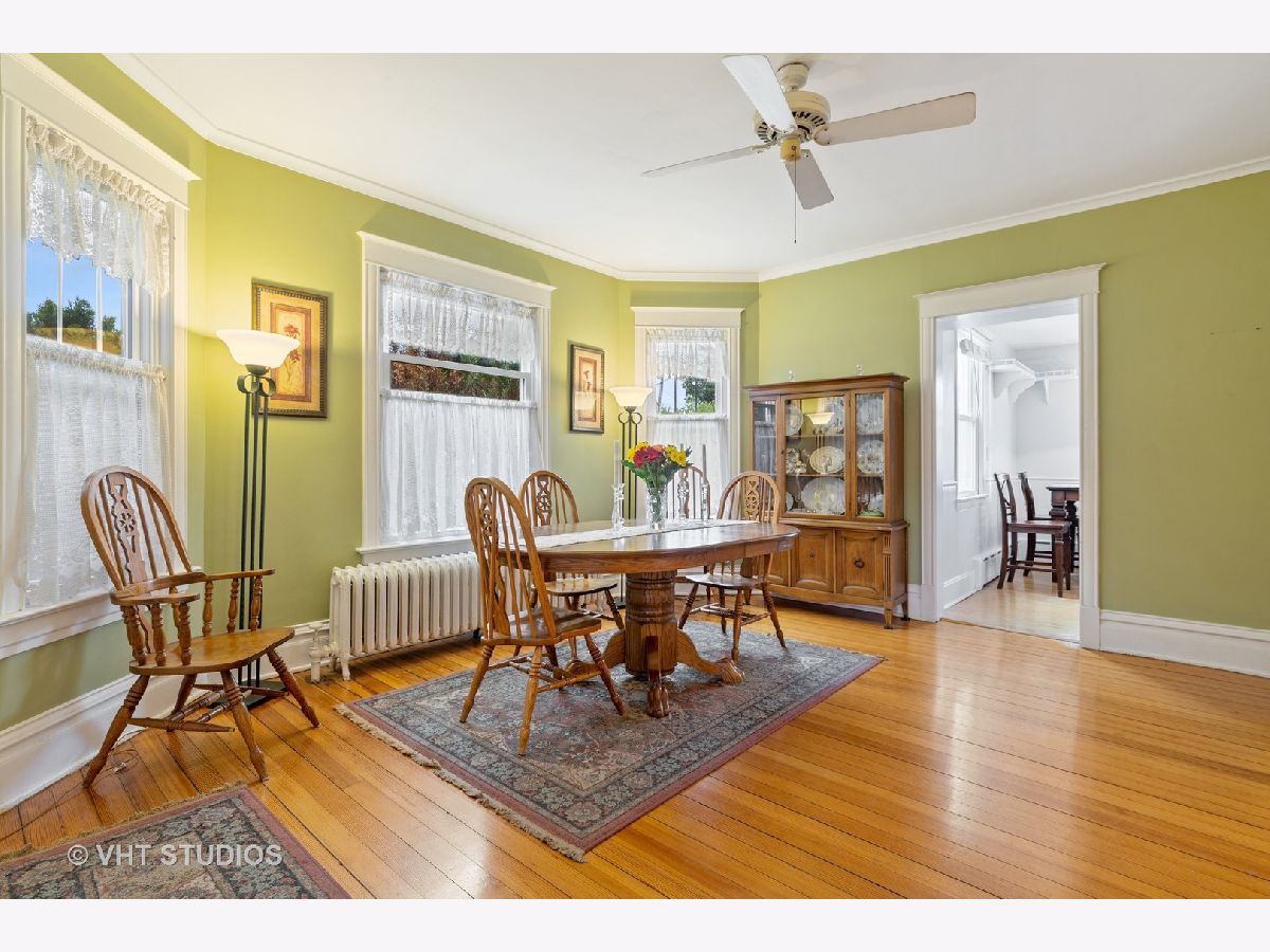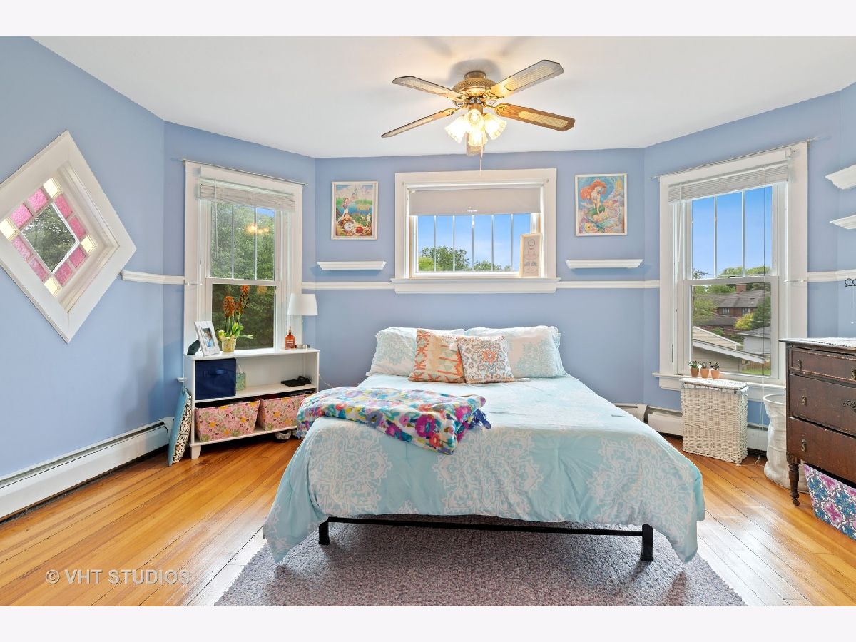 So much potential here to make this home your own whether you are wanting to live here, put an addition onto the back of the home, are an investor or a rehabber. Truly endless possibilities for this vintage farm home style from a bygone era - It's time to fall in love in this 2-story solidly built home. There are 3 bedrooms, a powder room on the first floor, and a full bath on the 2nd floor. Perfectly nestled in the highly sought-after HANA neighborhood of Arlington Heights on a prime "middle of the block" lot. Original details like crown moldings, the tall ceiling height on both the 2nd and the first floors, tall baseboards & stained-glass windows have been preserved in this time-honored home. Walk into the welcoming enclosed wrap-around front porch and Start your morning or end your busy day here and take in the sights and sounds of the neighborhood. The first floors living spaces of the sun-drenched dining, the living, and the office rooms have hardwood floors and newer large windows. kitchen has a large walk-in pantry, a separate eating table space, has a functional layout, and is close to the back-yard door, the garage, and the basement. Upstairs, the Master bedroom easily fits a king-size bed with 2 walk-in closets. The 2nd bedroom is oversized too with a diamond-shaped stained-glass window. The basement is the entire length of the home, is high and dry with a large laundry room with double bowl utility sink, a sump pump with a battery back-up, and two storage rooms - one could be a workshop/craft room. Outside, the side driveway leads to an oversized 2 1/2 car garage and a large tastefully landscaped back yard. Recent updates inc: Boiler ('15), Hot water heater ('17), Roof ('09), windows on all 3 floors ('09), Garage Doors ('16), Oven/Range ('13), Dishwasher ('15), Refrigerator ('19) include: Windows on 1st and 2nd floors, refrigerator. Prime location: close to amazing schools; Olive, Thomas & Hersey. Walk to Library, Metra, parks, Pool, Farmers Market, Shops & restaurants - City amenities in an upscale & very desirable northwest suburb.