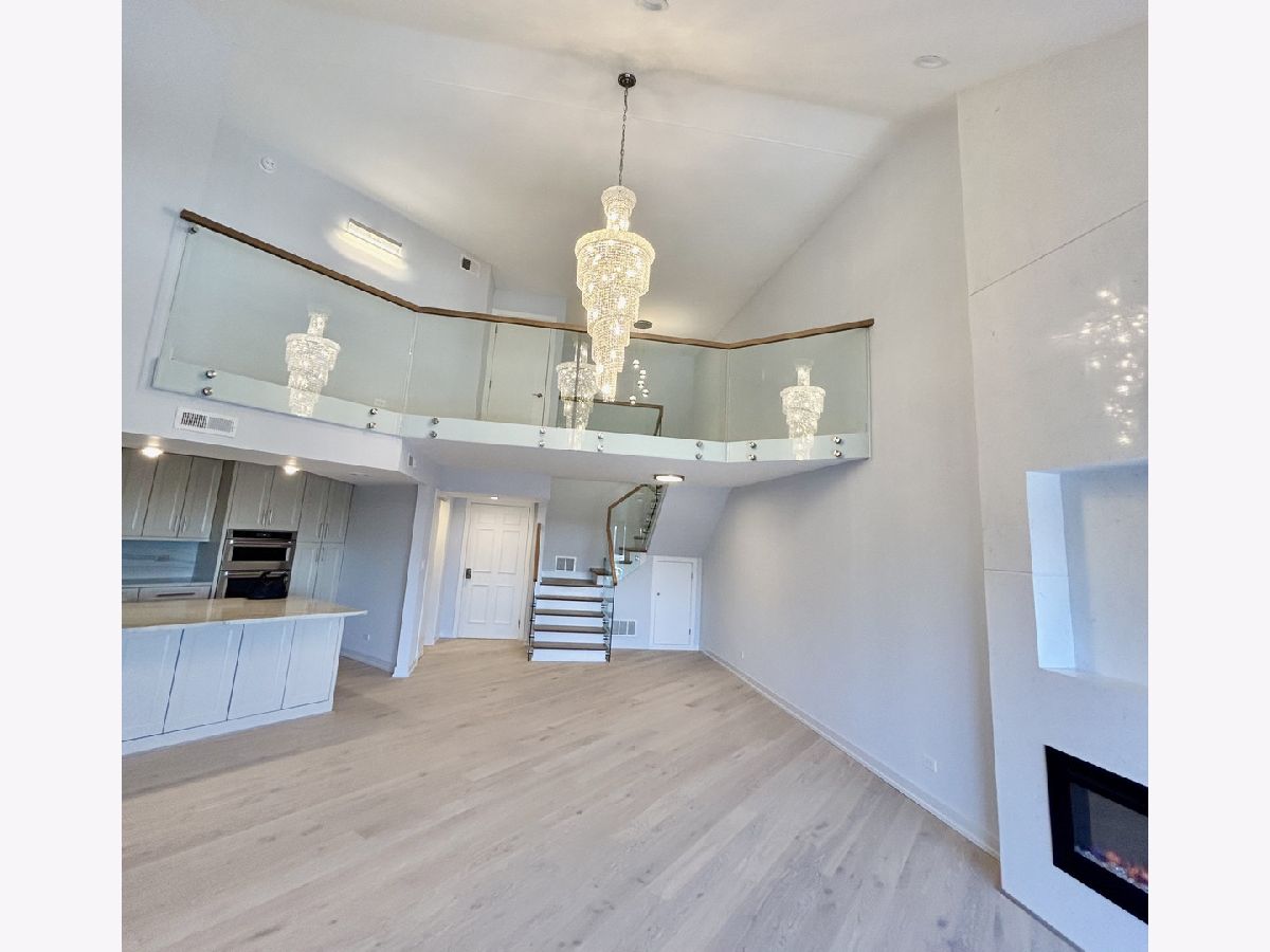 Custom-designed and renovated penthouse with attention to detail with European elegance, clean modern lines, and state-of-the-art stainless steel appliances. Move in ready, opulent and spacious. The unique light fixtures, sconces, and chandeliers are included. A glass railing all along the staircase and upper level compliments the 16 ft Cathedral ceiling. An open modern kitchen encourages effortless entertaining. If you desire a home that exudes grace and ease, without the need for any additional renovations, this is the home for you. New furnace. Some of the features include: *Custom built stonework and electric fireplace *Freestanding Bathtub *KitchenAid stainless steel side by side refrigerator with Under-Shelf Prep Zone and included bakeare, Satin Glide drawers, and smart temperature management *Wine Cooler refrigerator built into the kitchen island * Custom designed closet *Porcelanosa bathrooms *Newly remodeled private balcony and wooden deck *Attached heated garage