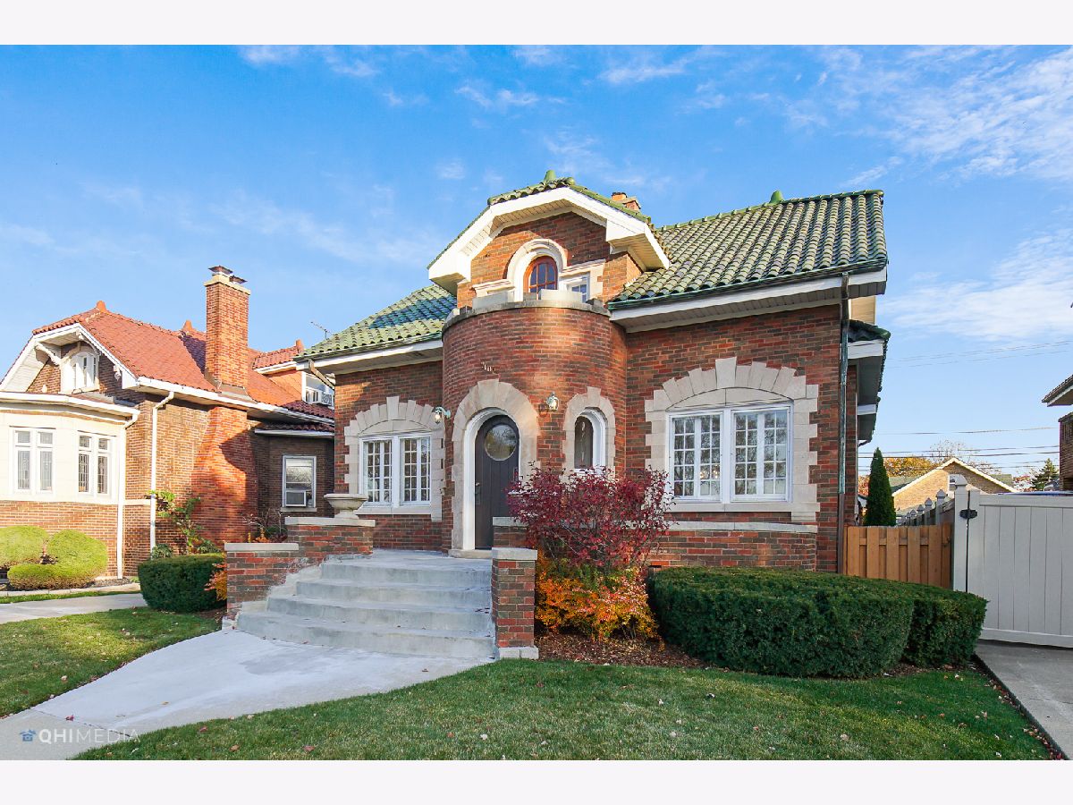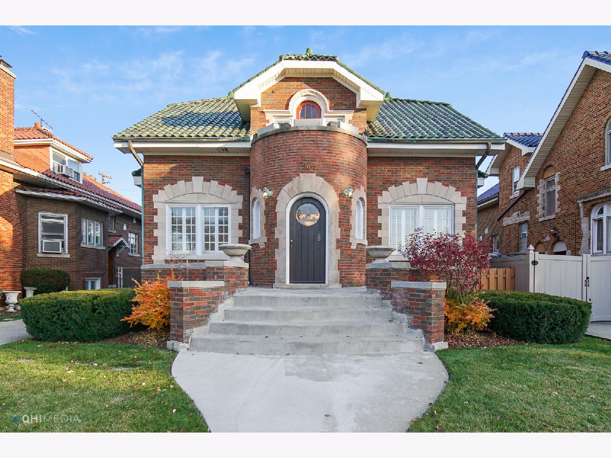 EUROPEAN CUSTOM BUILT HOME WITH STUNNING ELEGANCE AND VINTAGE CHARM IN HISTORIC DEPOT DISTRICT. WALKING DISTANCE TO METRA, COSTCO, NORTH RIVERSIDE MALL, RESTAURANTS, BERWYN PUBLIC LIBRARY, PUBLIC TRANSPORTATION AND WITHIN MINUTES TO I-55 AND I-290. THE BRICK & STONE EXTERIOR IS SYMMETRICAL IN LAYOUT RESEMBLING AN ENTRANCE TO A CASTLE OR EUROPEAN MANSION. MAIN ENTRANCE FEATURES A UNIQUE FOYER WITH CUSTOM DOOR & WINDOWS WITH ETCHED GLASS. THE HOME & GARAGE ROOF IS COVERED WITH GREEN CLAY SPANISH TILES & ALL COPPER GUTTERS, FLASHING AND TRIM. INTERIOR FEATURES COVED CEILINGS, HUGE CASEMENT WINDOWS, HIGHLY TEXTURED PLASTER WALLS IN EXCELLENT CONDITION, BEAUTIFUL WIDE STAIRWAY CONSTRUCTED OF STONE, SIDE ENTRANCE FEATURES STAINED GLASS SIDE WINDOW PANELS, LARGE LIVING ROOM WITH STONE FIREPLACE, FORMAL DINING ROOM WITH BUILT IN VINTAGE CORNER CABINETS. A BUTLER DOOR LEADS INTO THE LARGE KITCHEN WITH SEPARATE PANTRY, GRANITE COUNTER TOPS, ALL STAINLESS STEEL APPLIANCES AND AMPLE SPACE FOR A FULL KITCHEN TABLE SURROUNDED BY WINDOWS SHOWCASING FULL NATURAL LIGHT WHICH ADS THE PERFECT AMBIANCE. ADDITIONAL OFFICE/DEN AND POWDER ROOM ON THE MAIN LEVEL. ALL HARDWOOD FLOORS ON BOTH LEVELS. SECOND LEVEL FEATURES 3 BEDROOMS WITH ORNATE ETCHED PLASTER WALL TRIM, DEN, FULL BATHROOM, AND 2 BALCONIES. FULL OPEN FINISHED BASEMENT WITH WET BAR & PENINSULA, CUSTOM WINE CELLAR, FULL BATHROOM, SEPARATE LARGE LAUNDRY ROOM WITH CLOSETS & LARGE UTILITY ROOM. BRICK OVERSIZED DETACHED 2 CAR GARAGE, GATED CONCRETE CARPORT & CONCRETE DRIVEWAY. MANICURED BACK YARD & DECK. THIS STUNNING HOME HAS BEEN FEATURED IN THE HISTORIC BERWYN'S BUNGALOW TOUR. THIS BEAUTIFUL HOME HAS PASSED THE BERWYN PRE-SALE INSPECTION! DEFINITELY A MUST SEE!!! A REAL PLEASURE TO SHOW. PLEASE CLICK ON VIDEO FOR FULL TOUR OF THE PROPERTY.