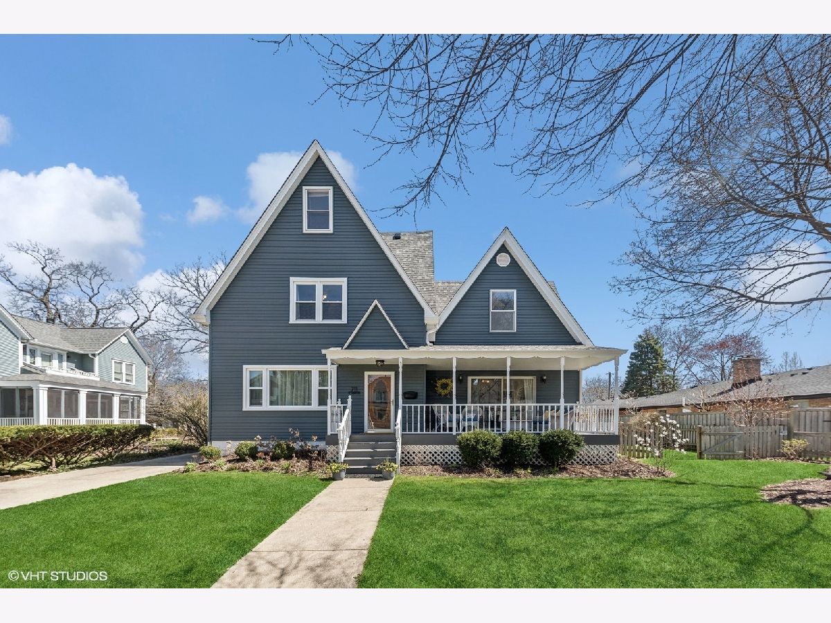 RARE opportunity to own a HISTORIC home in the heart of Arlington Heights! 1879 Farmhouse has been carefully updated to appeal to today's homeowner and has over 3000 sq ft of living SPACE! Extra WIDE lot (75') provides plenty of outdoor green space and room for a 2.5 car garage with easy access to either Dunton Ave. or Hawthorne St. NEW ROOF, SIDING, and WINDOWS. 1ST FLOOR PRIMARY BEDROOM has a walk-in closet and beautifully remodeled ensuite bath. 1ST FLOOR LAUNDRY also provides convenience and handy storage. 2 additional bedrooms are upstairs, along with a huge LIBRARY that could easily be used as a 4th bedroom or study. KITCHEN has been updated with 42" cabinets, stainless appliances, 2 large pantries, an island and solid surface counters/sink. Whimsical spiral staircase takes you up to a BONUS SPACE in the finished attic, providing additional work from home space or hang-out space! FRONT PORCH is the perfect place to start or end your day and spacious back DECK is ideal for outdoor entertaining. Part of the yard is fully FENCED giving children or your furry friends a safe place to play. You will love living steps from the award-winning Arlington Heights Memorial LIBRARY, and a short walk to the TRAIN and all the dining and shopping options of downtown AH! The Historic Arlington Neighborhood Association (HANA) is a vibrant community that allows you to meet your neighbors through events such as picnics, holiday celebrations, and neighborhood walk/runs. And your prime spot on the 4th of July Parade route will guarantee that you will be THE place to be every July 4th for your friends and family! Make your appointment today to see this lovingly maintained one-of-a-kind home!