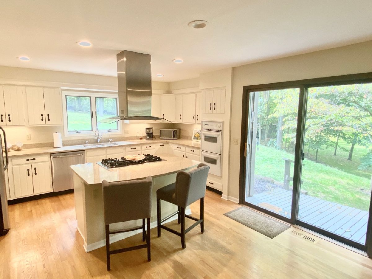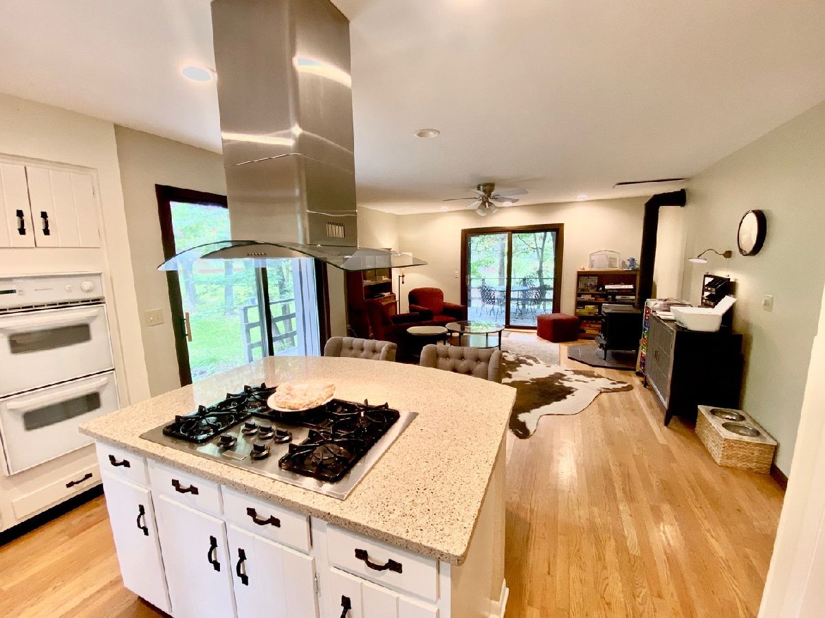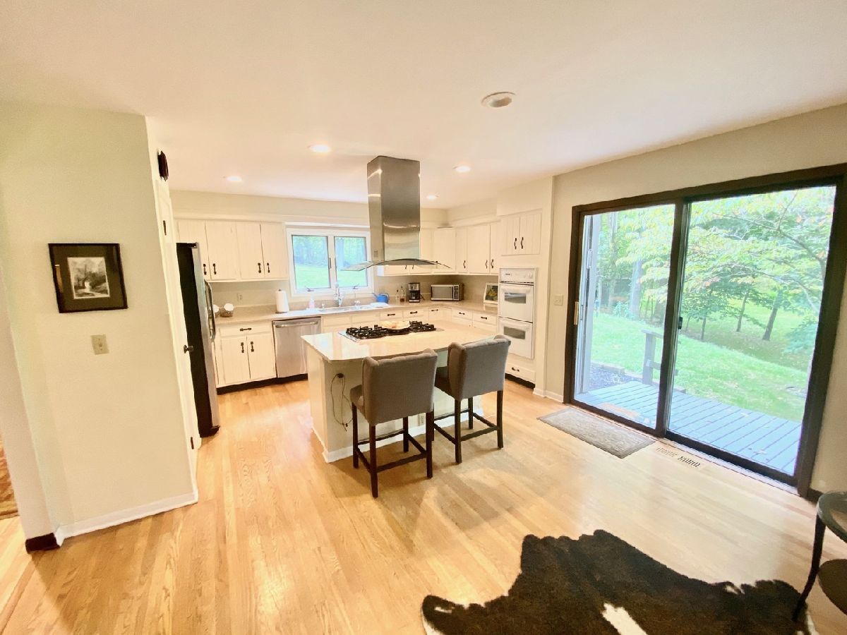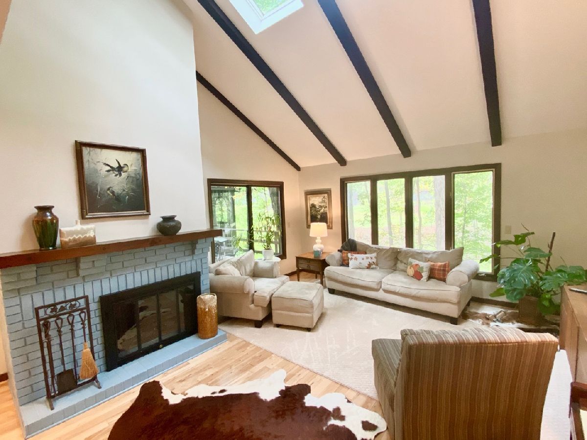 Immaculate Home in a beautiful setting offering plenty of yard, private views, spacious deck and a screened gazebo overlooking the wooded lot just outside of town. 3-4 bedrooms, 2.5 baths and 3 useable levels to spread out and enjoy. The Open kitchen/family room combo has a woodburning stove, quartz counter tops, breakfast island, plenty of counter space and 2 sliders to the deck with fantastic views of the surrounding nature. The main floor great room offers a 2 story vaulted ceiling with added natural light from the skylights, a brick wood fireplace, hardwood floors and is perfect for a dining room table. Upstairs there is 3-4 nice sized bedrooms or definately room for an in home office. The lower level is perfect for additional living space, ample storage and has a 1/2 bath. This home is move in ready and easy to show.