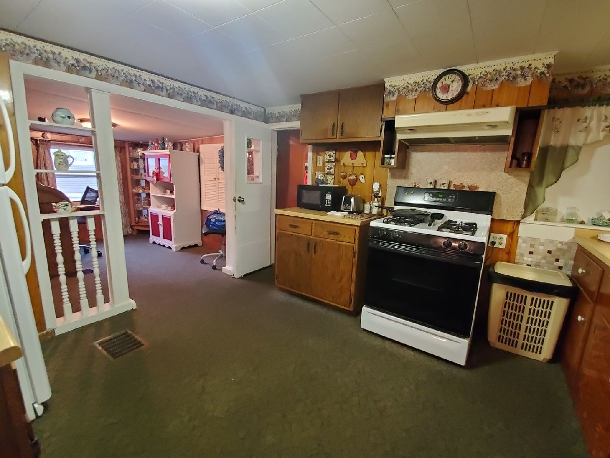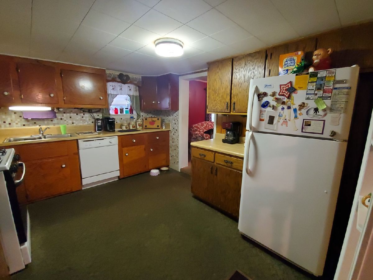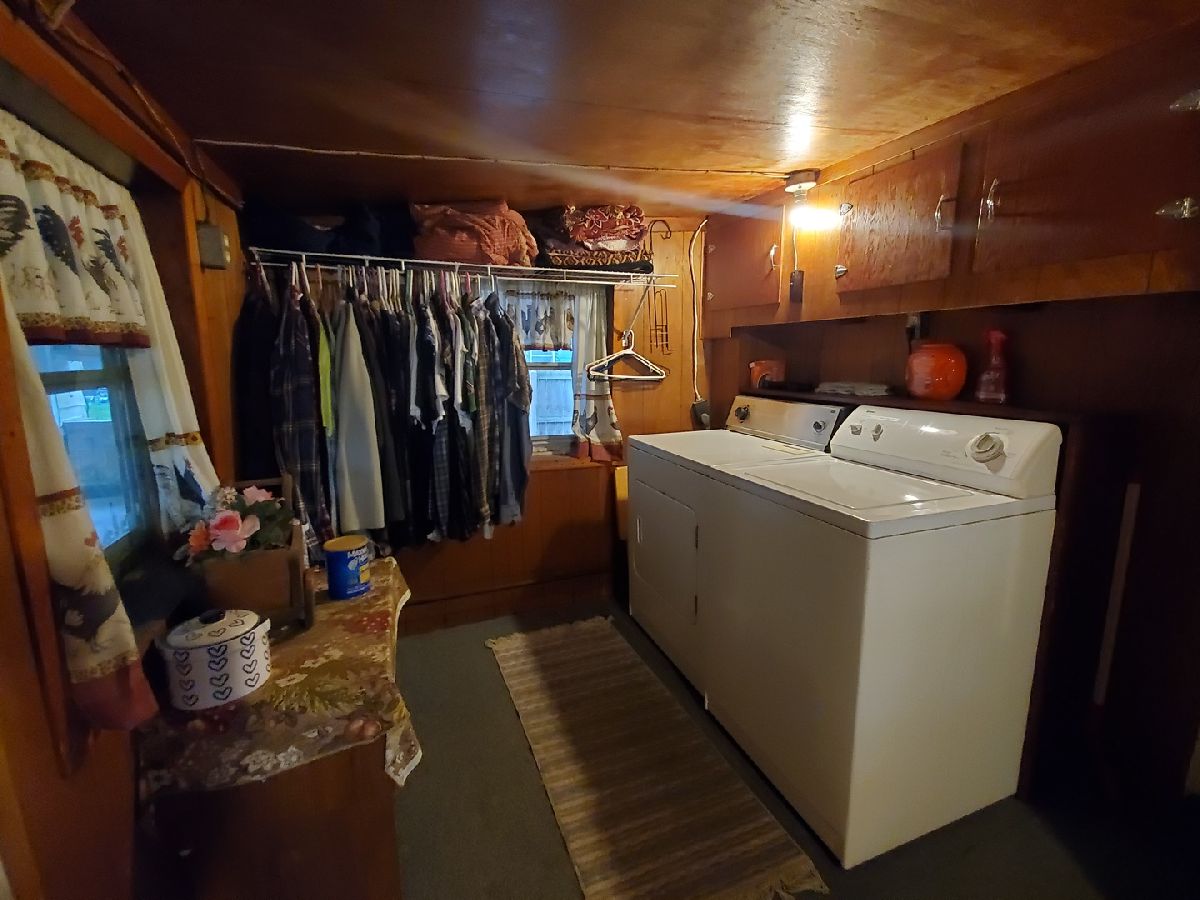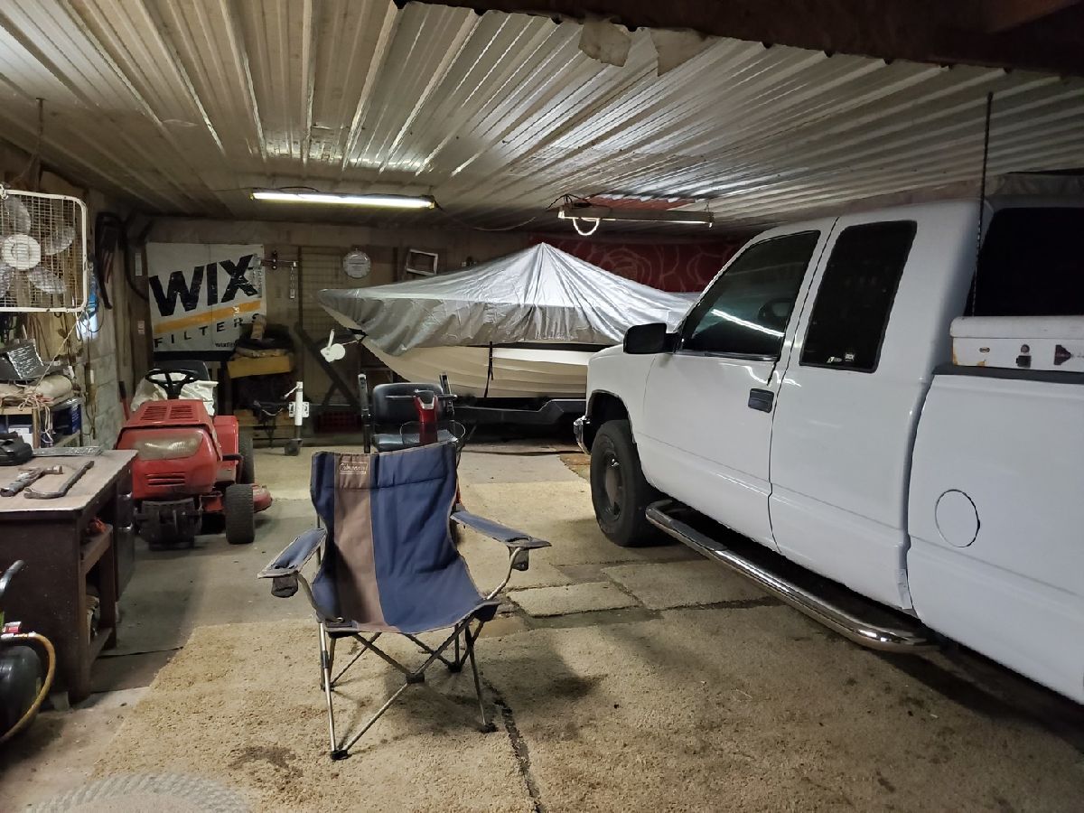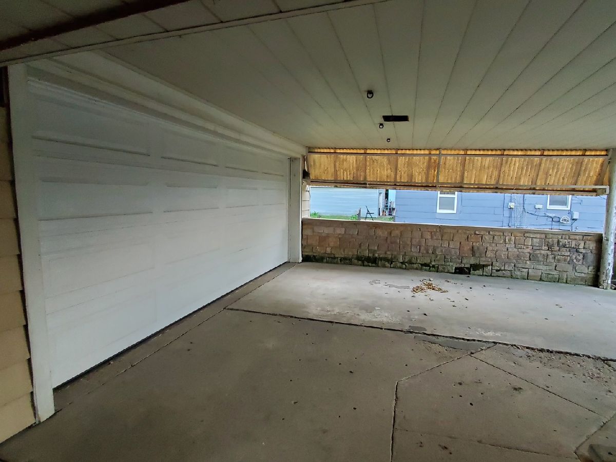This is the property if you need an oversized deep garage (36 x25) for a big truck and a boat, plus a long driveway with covered patio, nice yard and a carport too. Home has 2 bedrooms, enclosed front porch is being used as a 3rd bedroom and back porch is being used as laundry room/mudroom. Great pantry cabinet between kitchen and dining area. Other room is nice open space between main floor bedroom and bath. Bathroom has tiled floor and nice walk-in tiled shower. Some windows have been replaced and home has a steel roof. Needs a little TLC but has great space to call home at this price!! Property is being Sold 'as is' so all inspections are for buyers purposes only.