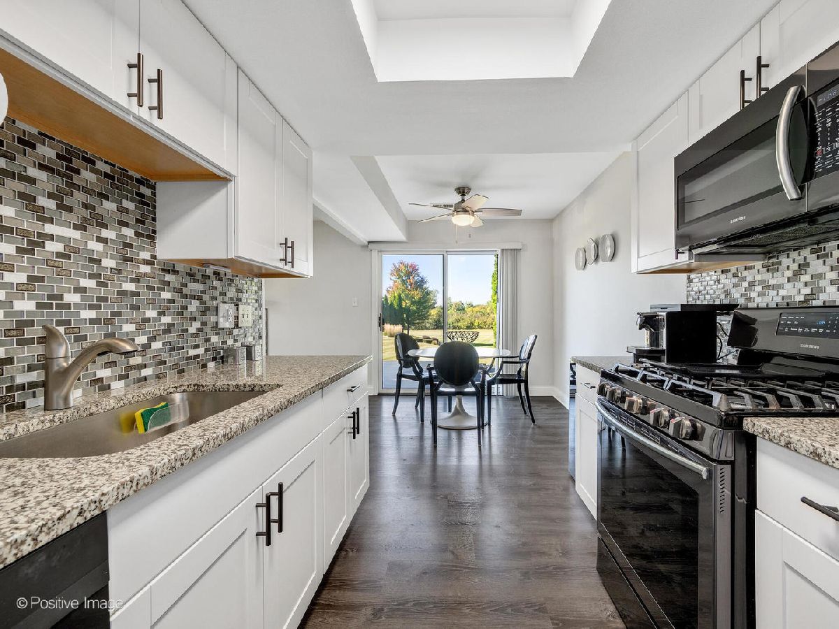 BEAUTIFULLY REMODELED END UNIT IN THE HEART OF TINLEY PARK! Stunning waterproof Oak Vinyl flooring throughout the home installed in 2020, is complimented by neutral paint throughout the home. An updated 1/2 bath on the first-floor features updated fixtures and fresh paint. The living room boasts vaulted ceiling with skylight, and a gas fireplace to enjoy on cool nights. From the eating area in the kitchen, enjoy views of the backyard from the sliding glass door. The updated kitchen features granite countertops, matching appliances, and beautiful backsplash added in 2018. The 1 car attached garage has a new epoxy floor added in 2020, along with cabinetry for extra storage. The second floor features two large bedrooms, and two full bathrooms. The primary bedroom is spacious, and includes a loft and full bathroom en-suite with stunning upgrades. The additional bedroom has beautiful built in cabinetry for storage. From the composite back deck accessible from the sliding glass door, there are views of the open field. Centrally located in Tinley Park conveniently off Harlem Avenue, minutes from Park Center Plaza with tons of shopping and dining. Close to 294 & 80, easy access for commuters.