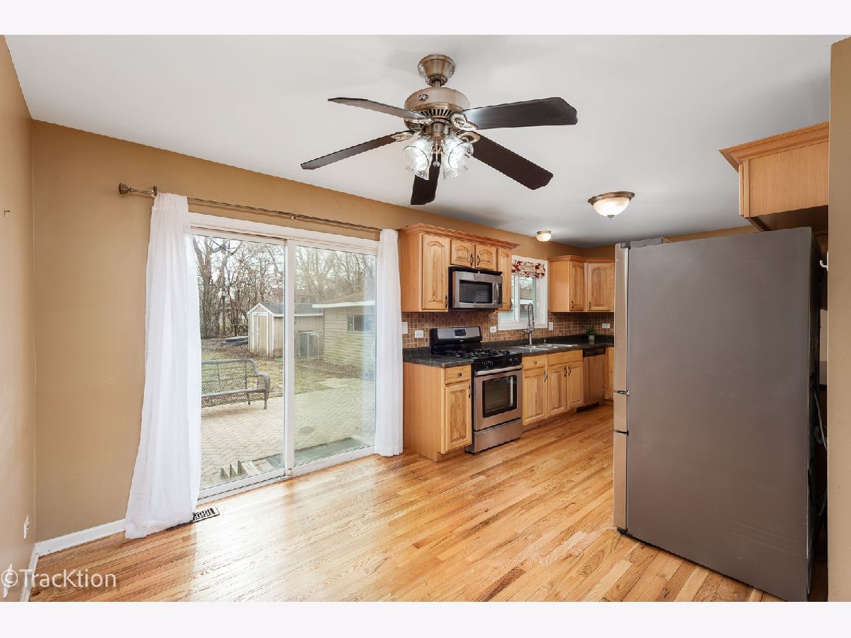 Set on half an acre, this lovely ranch features freshly refinished hardwood floors, a bright living room with a large bay window, and timeless plantation shutters. The kitchen is equipped with warm maple cabinetry and stainless steel appliances, flowing seamlessly into the dining area and out to a spacious brick paver patio with a built-in gas grill - perfect for hosting family and friends. 3 nice size bedrooms, with built in shelves in the closets. Full bathroom includes a granite-topped vanity. The partially finished lower level provides additional living space, including a bonus room, ideal for a home office or playroom. Plus spacious living area and a wet bar. The front-load Whirlpool washer and dryer, tankless water heater, and storage space round out the lower level. Step outside to enjoy a backyard with a fire pit, storage shed, built-in grill, and even a tree house! Conveniently located near I-55 and I-294 and I-355, shopping, dining, parks, and a good school district, only minutes away from a Waterfall Glen Forest Preserve with miles of beautiful trails this home truly is what Darien is known for - a Nice Place to Live!