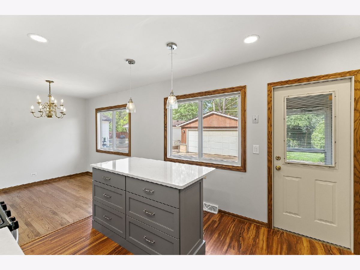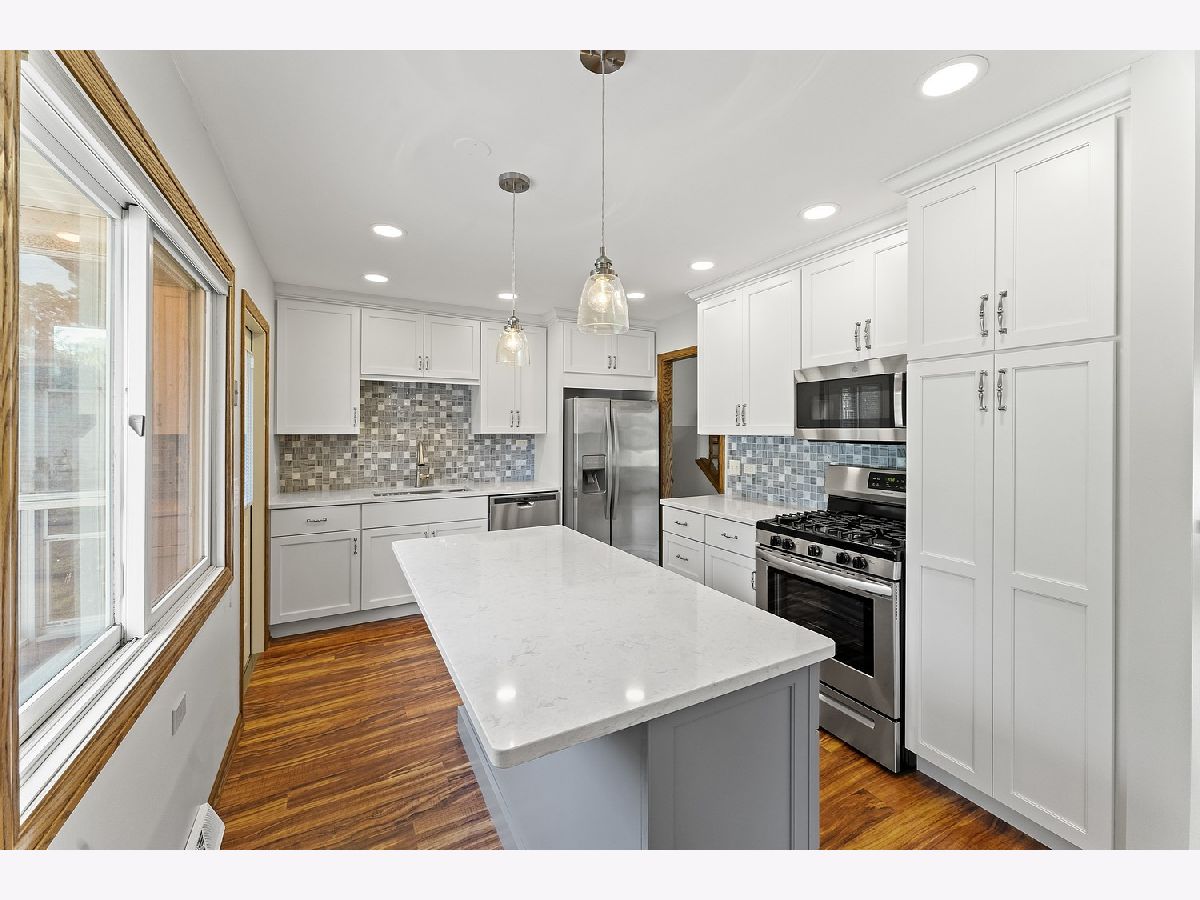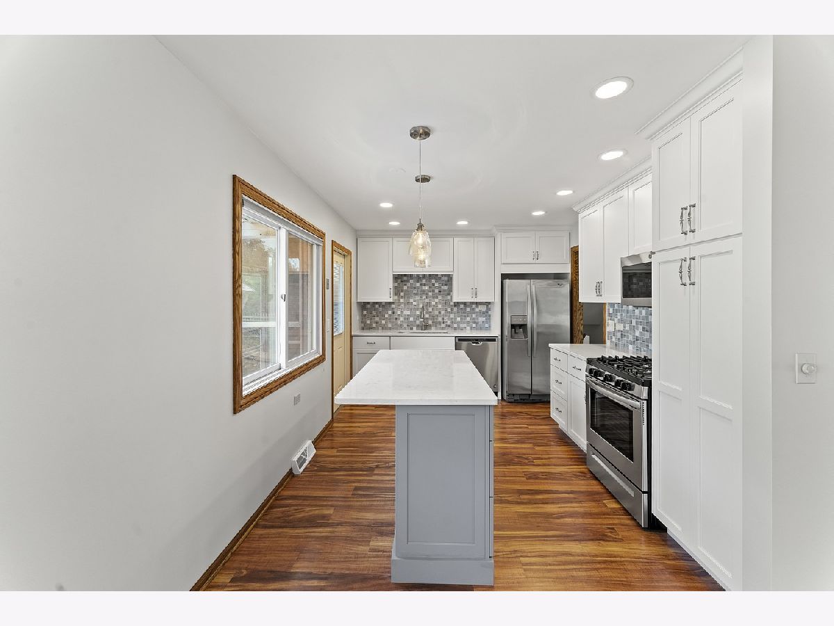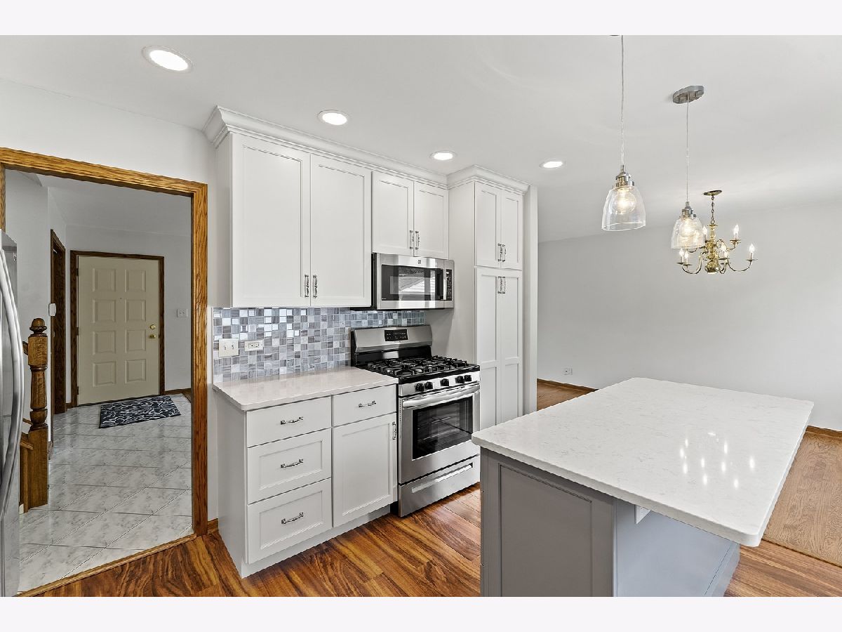 Beautiful 3-bedroom, 2-bath split-level home tucked away in a quiet cul-de-sac location in Mount Prospect. You will love the new kitchen (never been used) with an island, stainless steel appliances, gas range, microwave/convection oven and quartz countertops. Both bathrooms have been updated. The sparkling hardwood floors were just refinished. Home has been freshly painted. Enjoy the huge yard with a cement patio on this oversized lot. Everyone loves a 2-car garage. New roof on house and garage this year. When we say move in ready, this home is! Popular Hersey High School. Home currently has no tax exemptions.