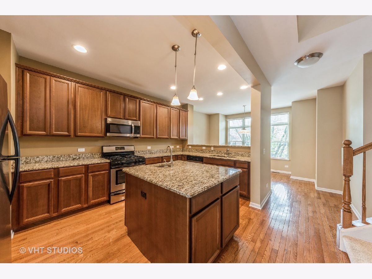 There is nothing to do but move right in to this Beautiful Vernon Hills townhome that features a flowing floor plan and a neutral color palate. This home offers you room to spread out with three levels of living space. The main level offers a flex space that can be a family room, office or 4th BR. Head up to the main level living space to find a spacious sun-drenched kitchen with 42" cabinets, granite counter tops, stainless steel appliances and a center island with a prep sink. Endless cabinet space and a reach in pantry. Easy flow to the living room with double slider doors to the balcony. Gleaming hardwood floors throughout this level and custom wood railings. The top floor features 3 sizable bedrooms and two full baths. The primary suite contains a walk-in closet with organizers and an en-suite bathroom with a walk-in shower. Efficiently located laundry on the bedroom level. A short .1 mile to Starbucks and Walgreens. Vernon Hills Metra is located 1.5 miles and easy highway access to 294.