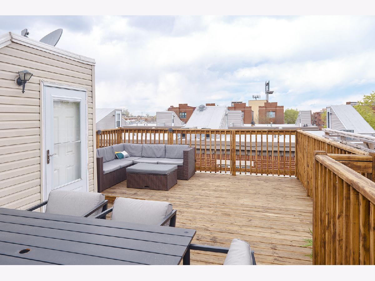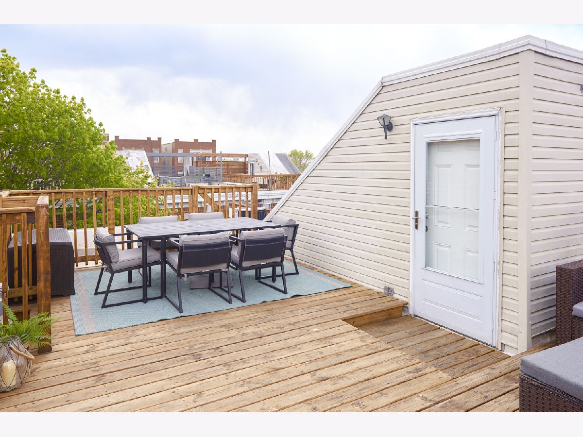 Tri-Taylor/Medical District Townhome with 3+ levels of living and a NEW private rooftop terrace! Enter through the beautifully landscaped front courtyard to the first floor which features a fully enclosed bedroom with ensuite bathroom, perfect for a guest room or home office. Up the stairs to the main living area featuring hardwood floors, spacious kitchen with pantry and breakfast nook, open-concept living with room for a full dining table, and gas fireplace in the living room. Southern exposure brings beautiful natural light! The third floor boasts two generous-sized bedrooms, each with double closets, a full five-piece bathroom, and in-unit laundry. Walk up through your interior access to the new, spacious private rooftop deck with skyline views! Complete with an attached 2-car garage: a rare find in the city. Or take advantage of the 5-minute walk to the CTA Blue Line to get you downtown in minutes. Active, social, and financially-stable homeowners association. Roof was replaced in 2017 and rooftop deck was installed in 2018 and then stained and sealed in 2020.