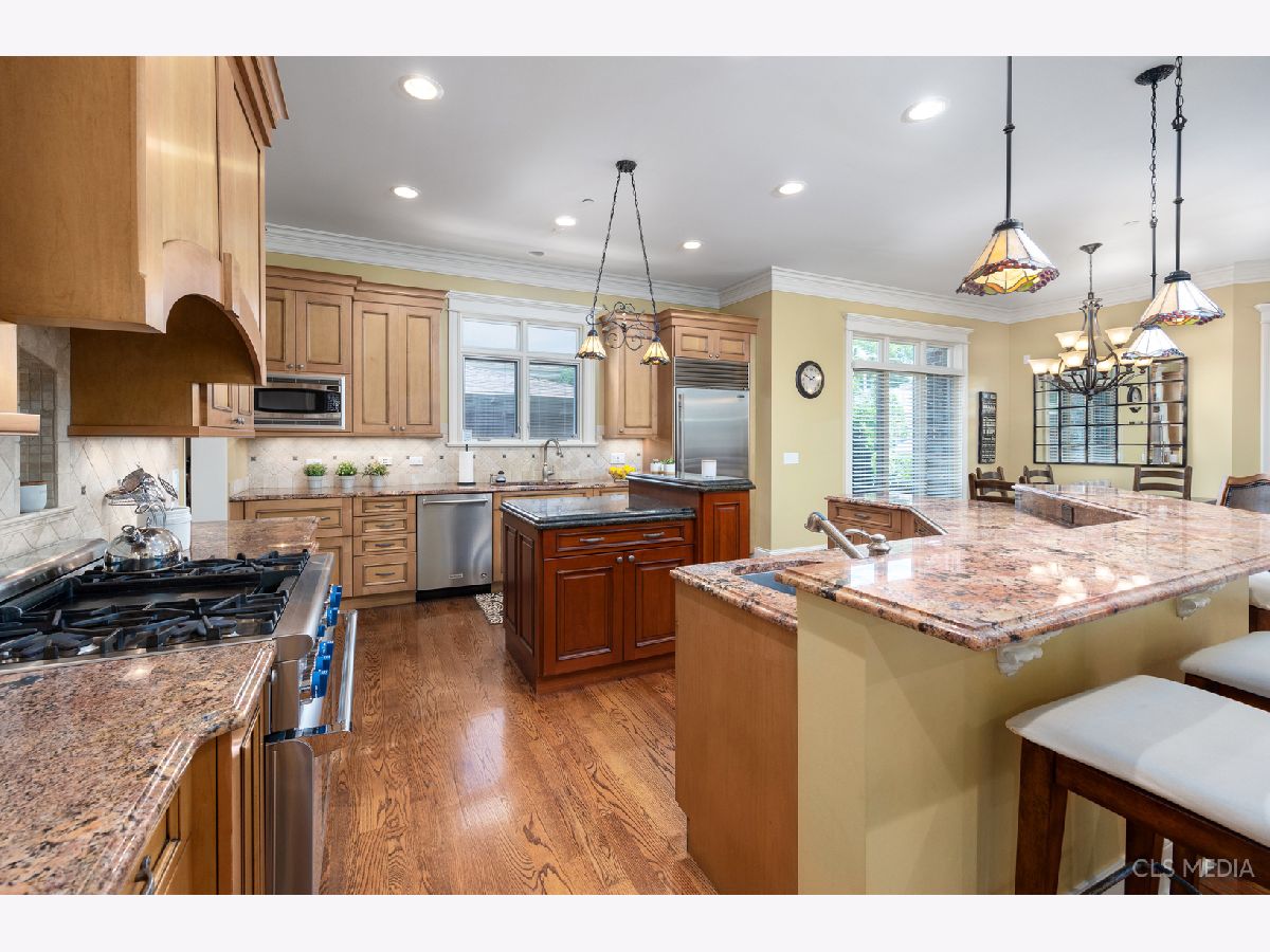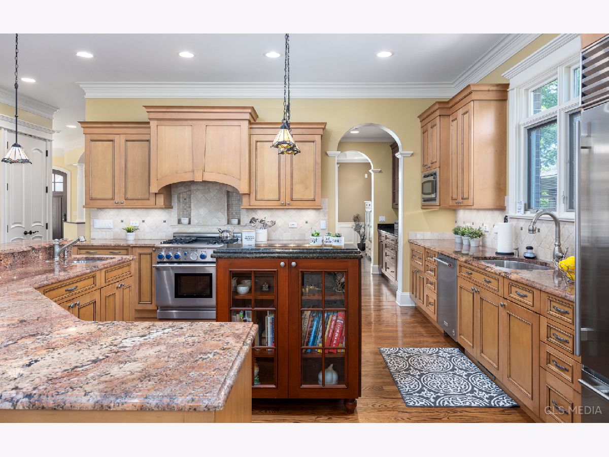 Show this beautiful and spacious custom-built home on the quiet and coveted tree-lined Babetta Ave today! 4953 square feet plus finished 3rd level attic and full basement for a total of 7000 sf of timelessly finished living space on a 60' x 230' lot. This traditional home boasts gorgeous custom woodwork, base, crown molding and coffered ceilings and is as beautiful as it is functional with 10" ceilings, a large open-concept kitchen open to the light and bright large family room and kitchen eating area. Custom cabinetry and granite counters with double islands are really a chef and entertainer's dream! Thermador oven range, Sub-Zero refrigerator, and a tasteful butler's pantry which leads you into the dining room - large enough for a 10 person table. This level also features a cozy living room space with room for a baby grand located off the foyer and a large home office with custom built-in cabinetry and desk. Off the kitchen is the Florida room with custom cabinets, a granite countertop bar, beverage refrigerator and ice maker. The 2nd floor has 4 bedrooms and a 2nd office (perfect for students or a toy/gaming room). The spacious primary bedroom features tray ceilings, a private balcony to enjoy peaceful mornings, and a gorgeous en-suite bathroom with heated floors, separate jacuzzi bathtub and tiled shower, a new double vanity and 2 walk-in closets. The guest room has it's own spacious closet and en suite and the large hall bath features timeless style and a double sink vanity. Completing the 2nd level is a large beautiful laundry room with newer machines. Gorgeous full finished basement, perfect for entertaining and with space enough for a pool table, watching movies in front of the fireplace and serving guests in the beautiful kitchenette with full-size appliances, custom cabinets and granite countertops. This 2000 sf living space has radiant heating, a private entrance, a 2nd laundry room, game room, full bathroom and a multi-purpose room which could be a 5th bedroom or weight room as is used now. And just when you thought the property couldn't get better, enter the back yard. The lot size is approximately 60' x 230', a brick paver driveway with multiple levels of patio space for dining, grilling, and relaxing by the gas firepit. 960 sf detached, 4-car cedar garage is heated and finished with epoxy flooring (perfect for continuing the outdoor entertaining during inclimate weather). 1/2 mile to Dee Rd Metra and 7 min drive to Uptown Park Ridge. Make this dream home yours today!