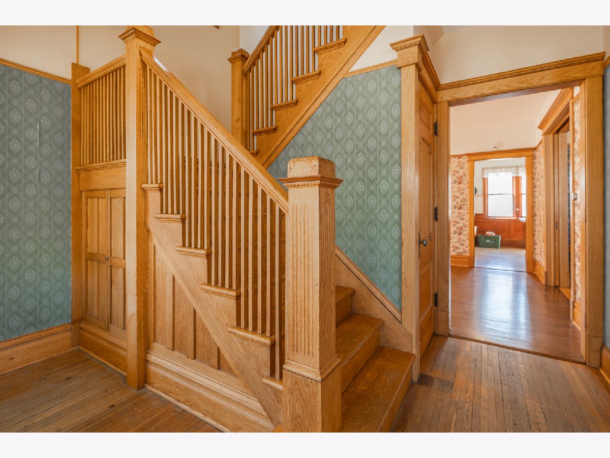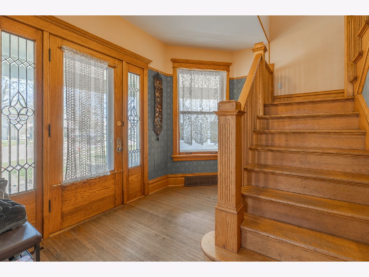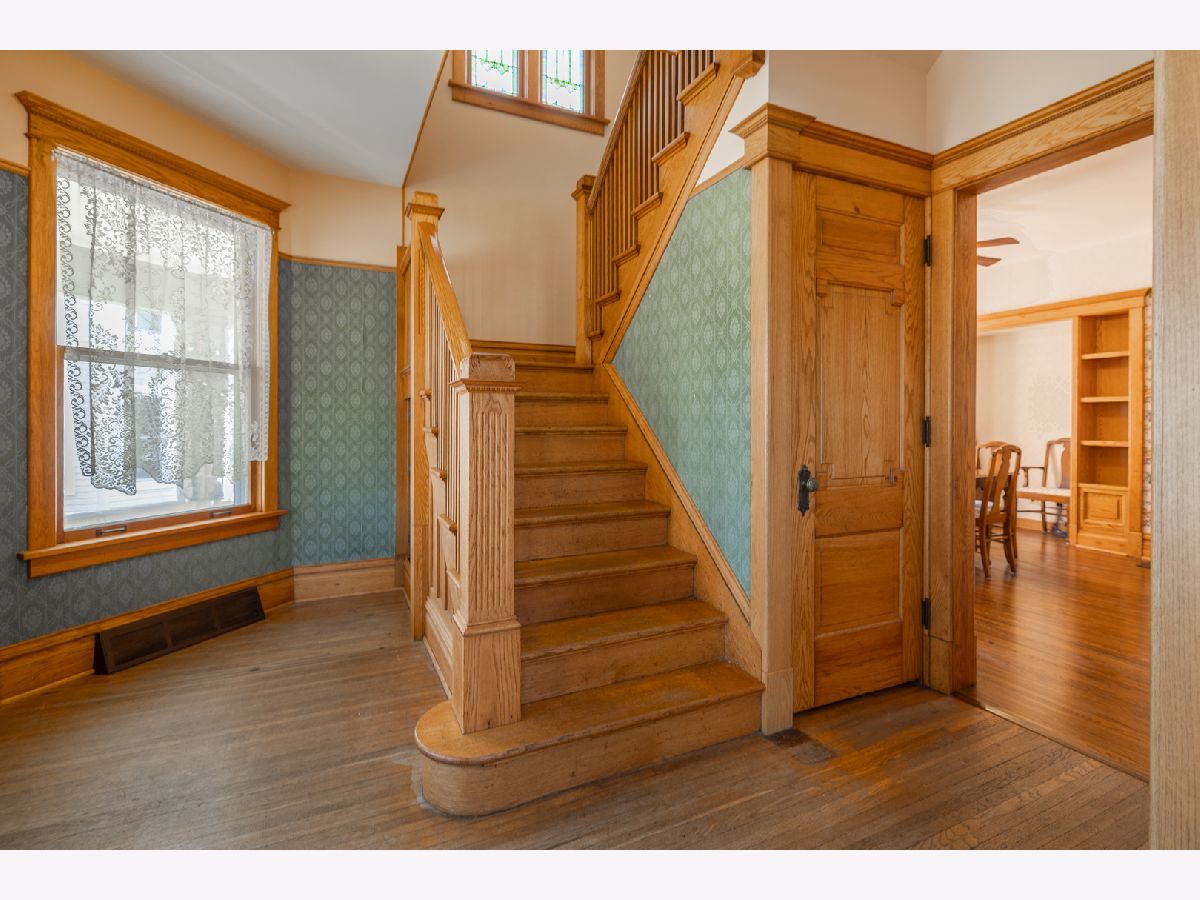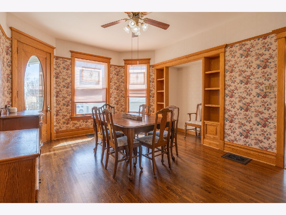 Bring your fairy tales to life in this Sycamore gem. The home unfolds with a charming parlor/sitting room flowing into the living room, showcasing original baseboards and windows, and then through pocket doors to the formal dining room. The well-appointed kitchen features stainless steel appliances, luxurious tile, updated cabinet fronts on original frames, and wainscoting crafted from reclaimed wood from the historic Sycamore Courthouse Hanger-one of the many unique touches connecting this home to Sycamore's rich past. Discover original 1900s leaded glass and gleaming hardwood floors on the first level, transitioning to original maple flooring upstairs. Display your literary passion on the built-in bookshelves, and never worry about storage space with a full basement and attic. Even the little ones have a hideout under the stairs! Convenience is key with a remodeled first-floor 3/4 bath (ceramic floor) and an updated second-floor full bath boasting a double vanity (bubble jetted tub sold "as is"). A second staircase off the kitchen leads to the upper level, while another ascends to the unfinished attic, previously plumbed for a half bath. The upstairs laundry room offers the potential for a fifth bedroom. Modern comforts include 200 Amp service, newer basement plumbing and water service, HVAC replaced in2024. The impressive 2.5 car garage, built in 2010, features heated floors and a substantial 13 x 30 loft-a fantastic recreation space or "man/woman cave," complete with a workbench and included cabinets, and heated by natural gas. Perched above the heated, oversized 2-car garage is a full-size loft The backyard is partially fenced, while the serene front porch offers a peaceful retreat. New dishwasher is on order. The second-floor washer and dryer can be moved to the basement before move-in upon request.