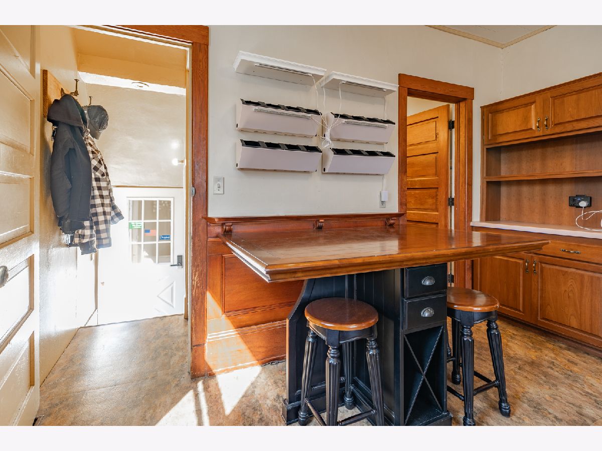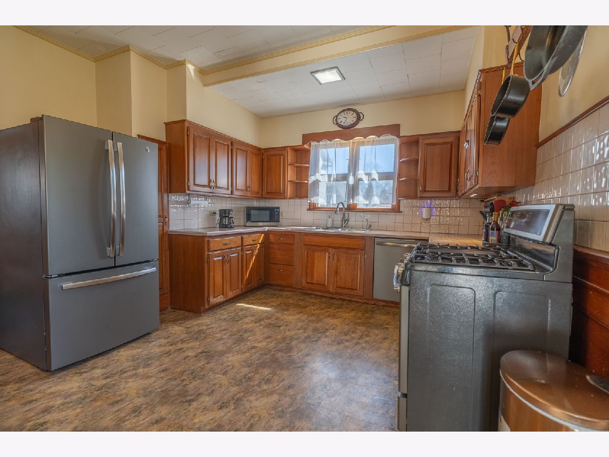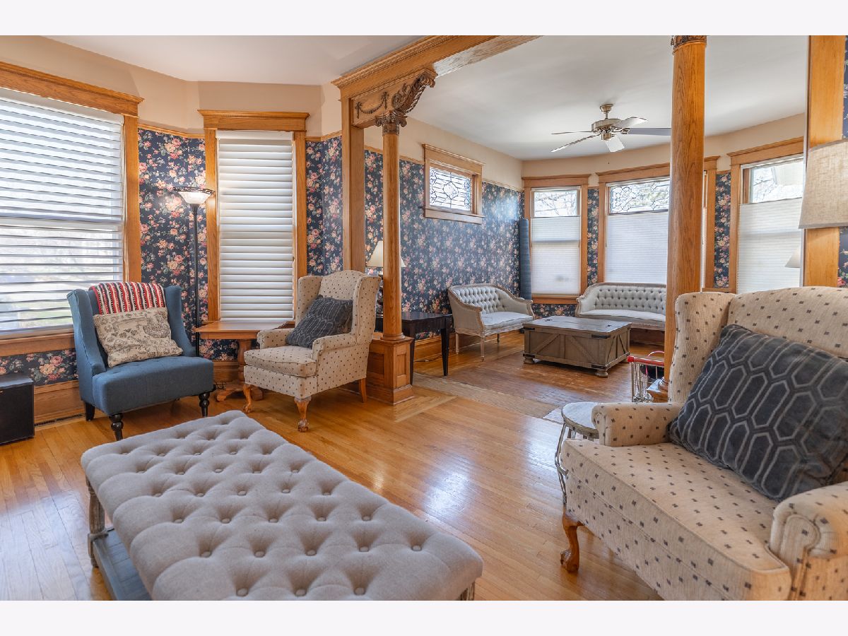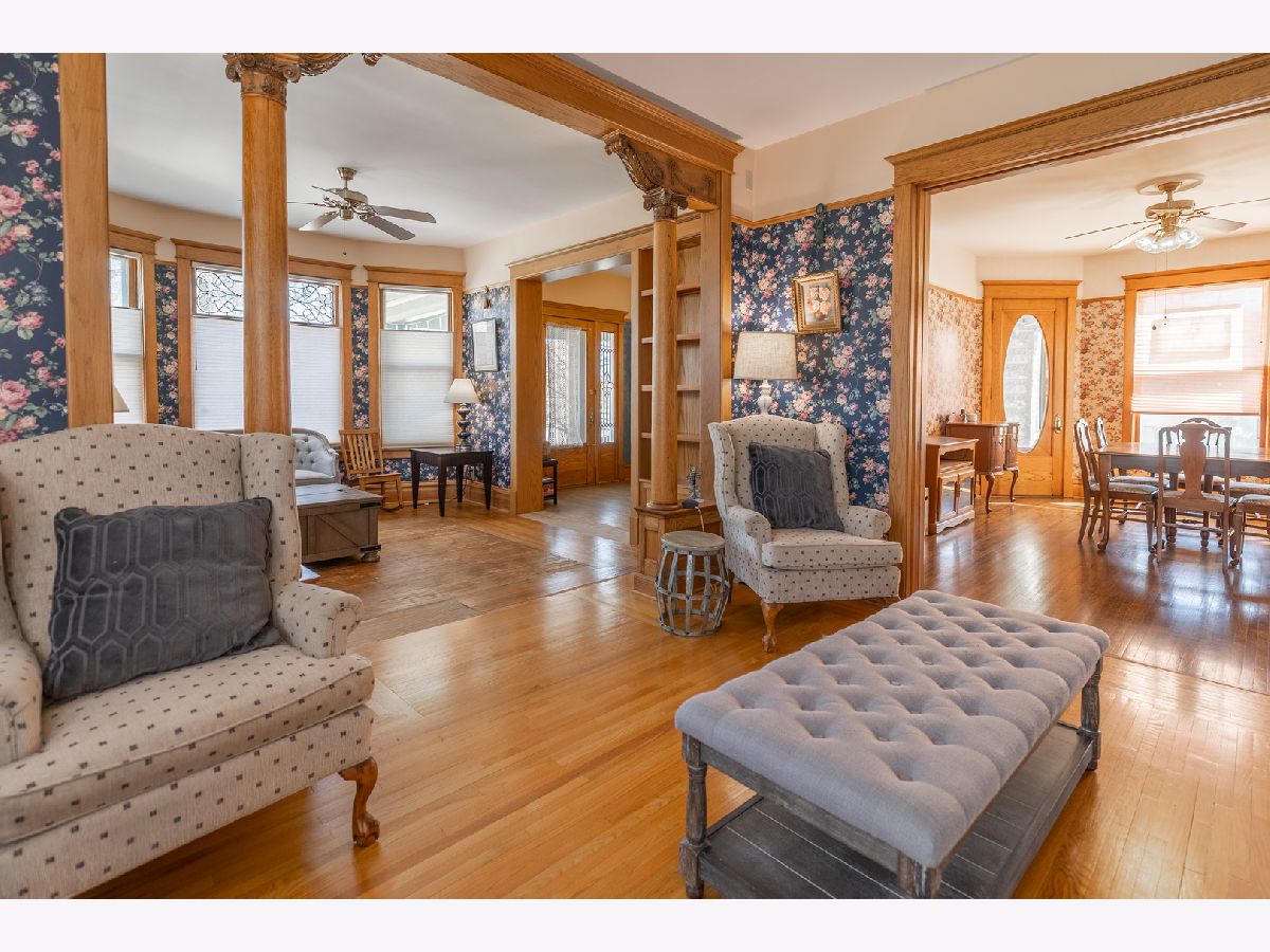 Bring your fairy tales to life in this Sycamore gem. The home unfolds with a charming parlor/sitting room flowing into the living room, showcasing original baseboards and windows, and then through pocket doors to the formal dining room. The well-appointed kitchen features stainless steel appliances, luxurious tile, updated cabinet fronts on original frames, and wainscoting crafted from reclaimed wood from the historic Sycamore Courthouse Hanger-one of the many unique touches connecting this home to Sycamore's rich past. Discover original 1900s leaded glass and gleaming hardwood floors on the first level, transitioning to original maple flooring upstairs. Display your literary passion on the built-in bookshelves, and never worry about storage space with a full basement and attic. Even the little ones have a hideout under the stairs! Convenience is key with a remodeled first-floor 3/4 bath (ceramic floor) and an updated second-floor full bath boasting a double vanity (bubble jetted tub sold "as is"). A second staircase off the kitchen leads to the upper level, while another ascends to the unfinished attic, previously plumbed for a half bath. The upstairs laundry room offers the potential for a fifth bedroom. Modern comforts include 200 Amp service, newer basement plumbing and water service, HVAC replaced in2024. The impressive 2.5 car garage, built in 2010, features heated floors and a substantial 13 x 30 loft-a fantastic recreation space or "man/woman cave," complete with a workbench and included cabinets, and heated by natural gas. Perched above the heated, oversized 2-car garage is a full-size loft The backyard is partially fenced, while the serene front porch offers a peaceful retreat. New dishwasher is on order. The second-floor washer and dryer can be moved to the basement before move-in upon request.