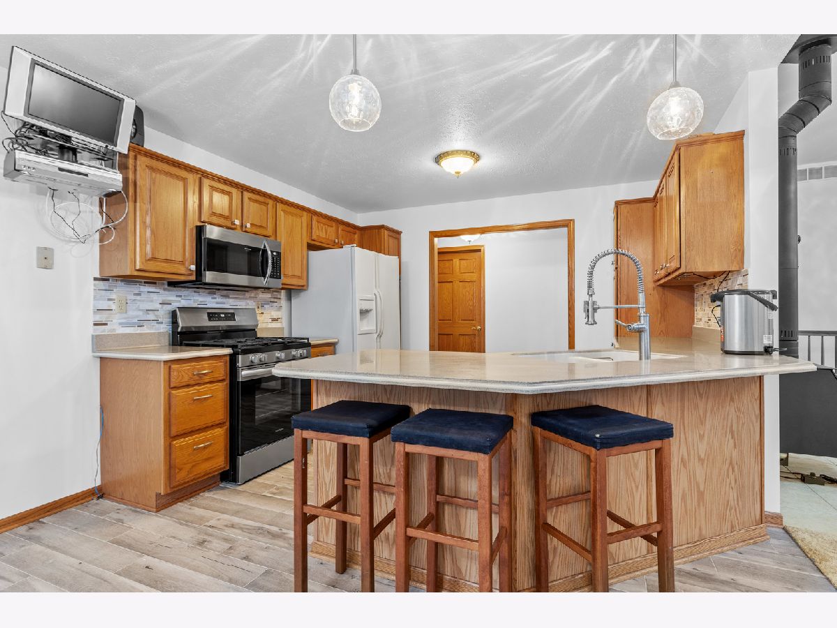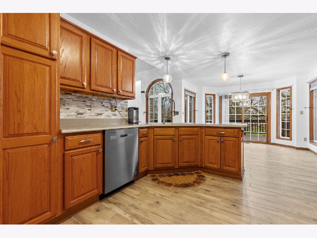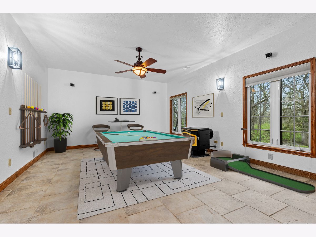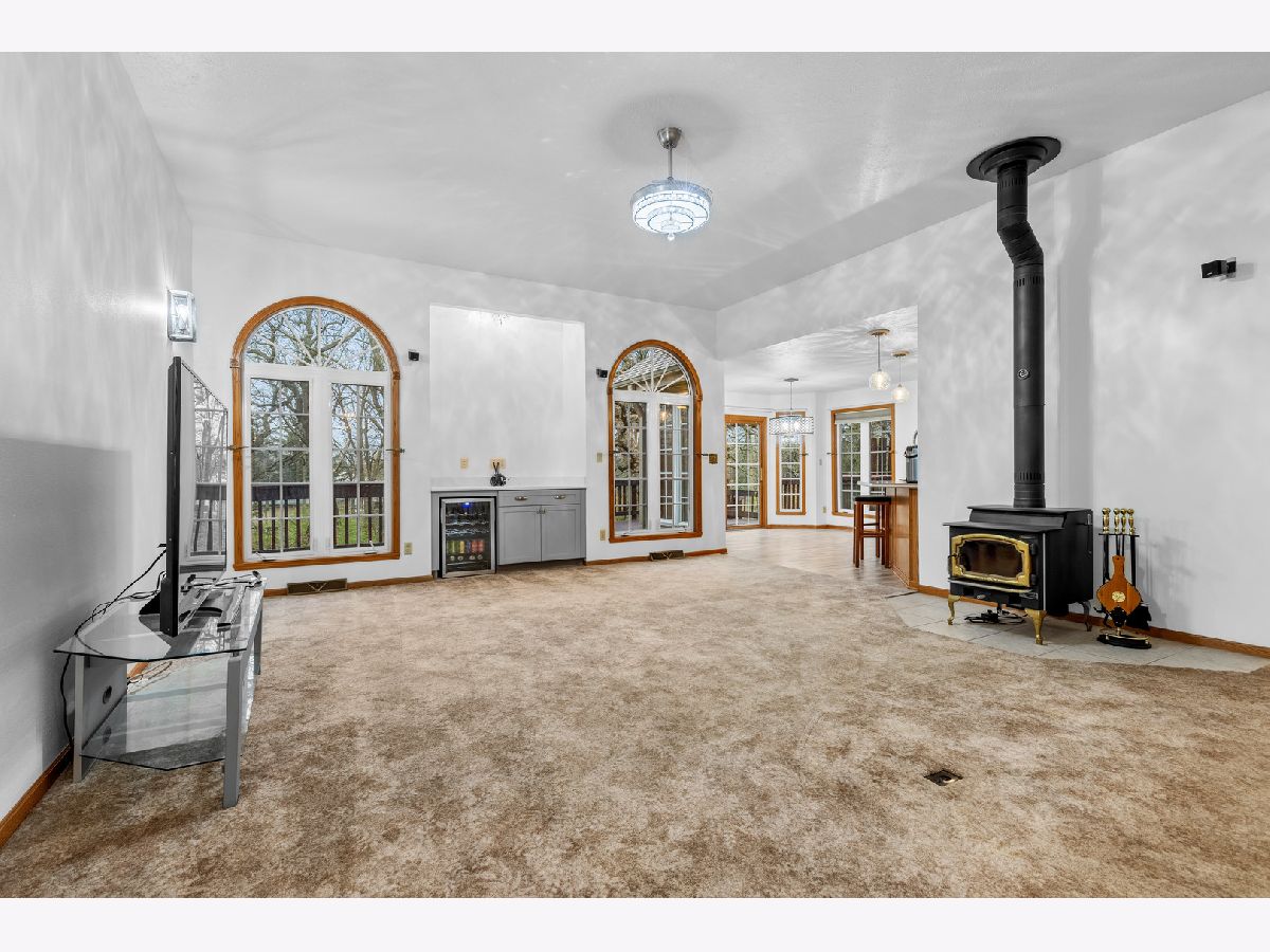 Impressive house on an amazing lot that backs up to the Winnebago County forest preserve! This is a full brick front split bedroom ranch with finished full walkout lower level located and upscale Prairie Ridge subdivision! As you approach you will notice that it is a professionally landscaped yard with irrigation and exterior lighting. Walking through the entry you will see it is an open floor plan, with raised ceilings, solid 6 panel doors throughout, and a freshly painted main floor. There are several new light fixtures throughout. The great room has a newer dry bar, wine refrigerator, with quartz countertop and one of two wood burning stoves to keep you warm. The kitchen features oak cabinetry with peninsula, corian countertops, mosaic tile backsplash, and new porcelain wood plank tile! The kitchen flows into an elongated breakfast nook to take in the views of the backyard with four windows and the glass slider that leads to the backyard. There is a separate dining room with high volume ceilings to host family get-togethers or a flex room to utilize in different ways. The primary bedroom has trendy light colored wide plank hardwood floors along with the two other bedrooms. The primary bedroom has an en suite bathroom complete with whirlpool tub, separate shower, double vanity, and walk in closet. If that wasn't enough there is also a glass sliding door that leads to a hot tub for peace and relaxation! On the opposite side of the house are two additional bedrooms and a full bathroom that has wall tile above the tub surround. To complete the main floor there is first floor laundry with half bath. Downstairs all finished areas have 9 foot ceilings, a family room with wood burning stove, and newer oversize ceramic tile. In the rec area there is a small kitchenette and glass French doors that open up to a fourth bedroom. Off the rec room area is a three season room has windows abound to take in nature's beauty! For added convenience there is a 3rd bathroom that has newer hexagon tile floors. In the unfinished basement there is plenty of room for storage and a second the point of entry to the backyard. Low 9.3% tax rate with highly desired Hononegah schools! Other updates include new roof in 2022, new water softener in 2024, and new hot water heater in 2023. Everything is ready to go. Don't miss your opportunity to see it while it's here!