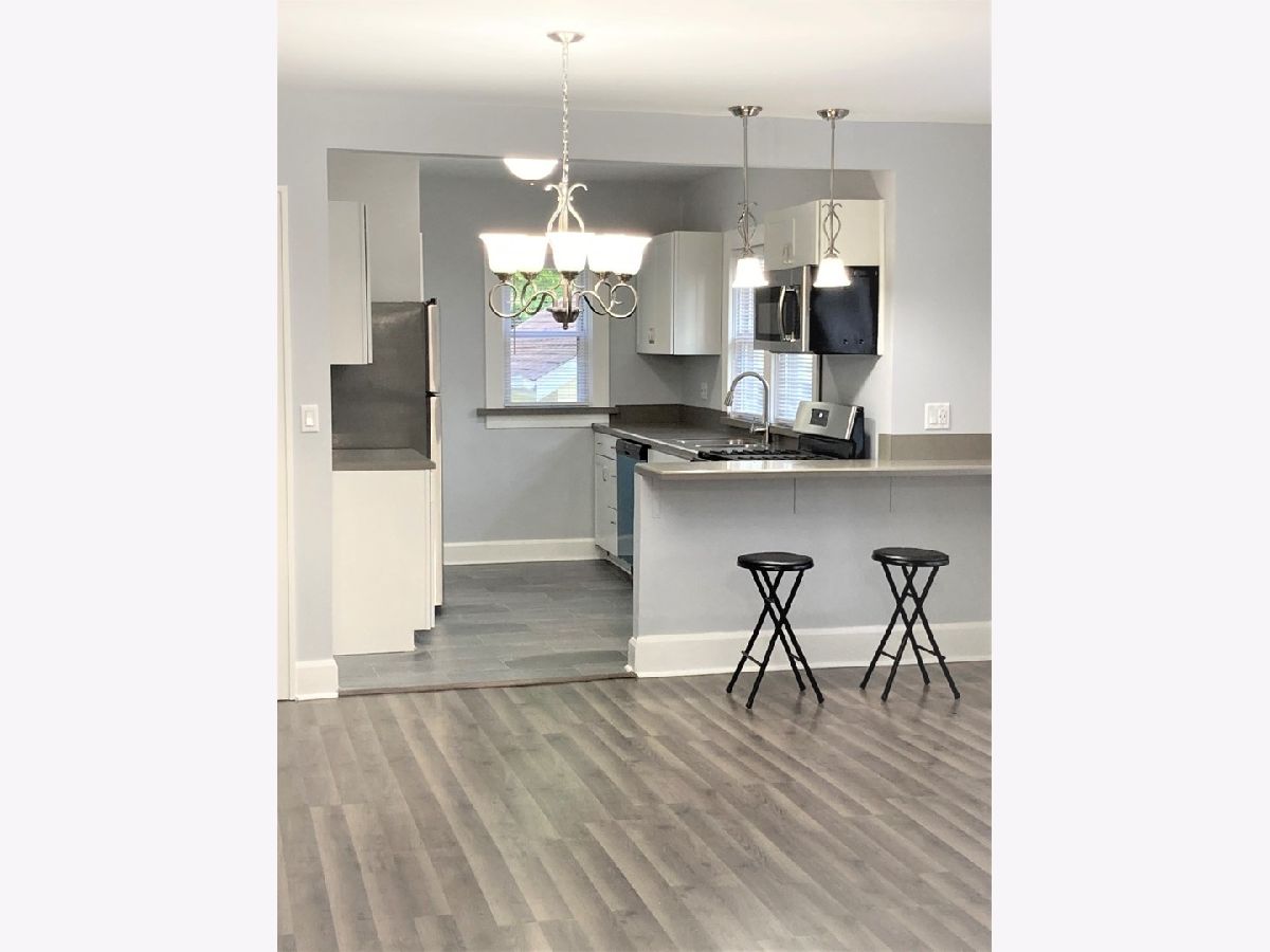 Remodeled 1.5-story home with a covered front porch. Living room opens to the dining room. Main-floor master and 2nd bedroom, along with a full bath. The third bedroom is upstairs. There's a full basement with bathroom roughed in, and a one-car detached garage. The home is vinyl sided with a newer roof and windows. New Plumbing, updated electrical, remodeled bathroom and kitchen, All new stainless steel appliances, updated I LED lighting fixtures, New Central Air, new wood laminate flooring, updated attic with recess lights and ample closets, freshly painted.