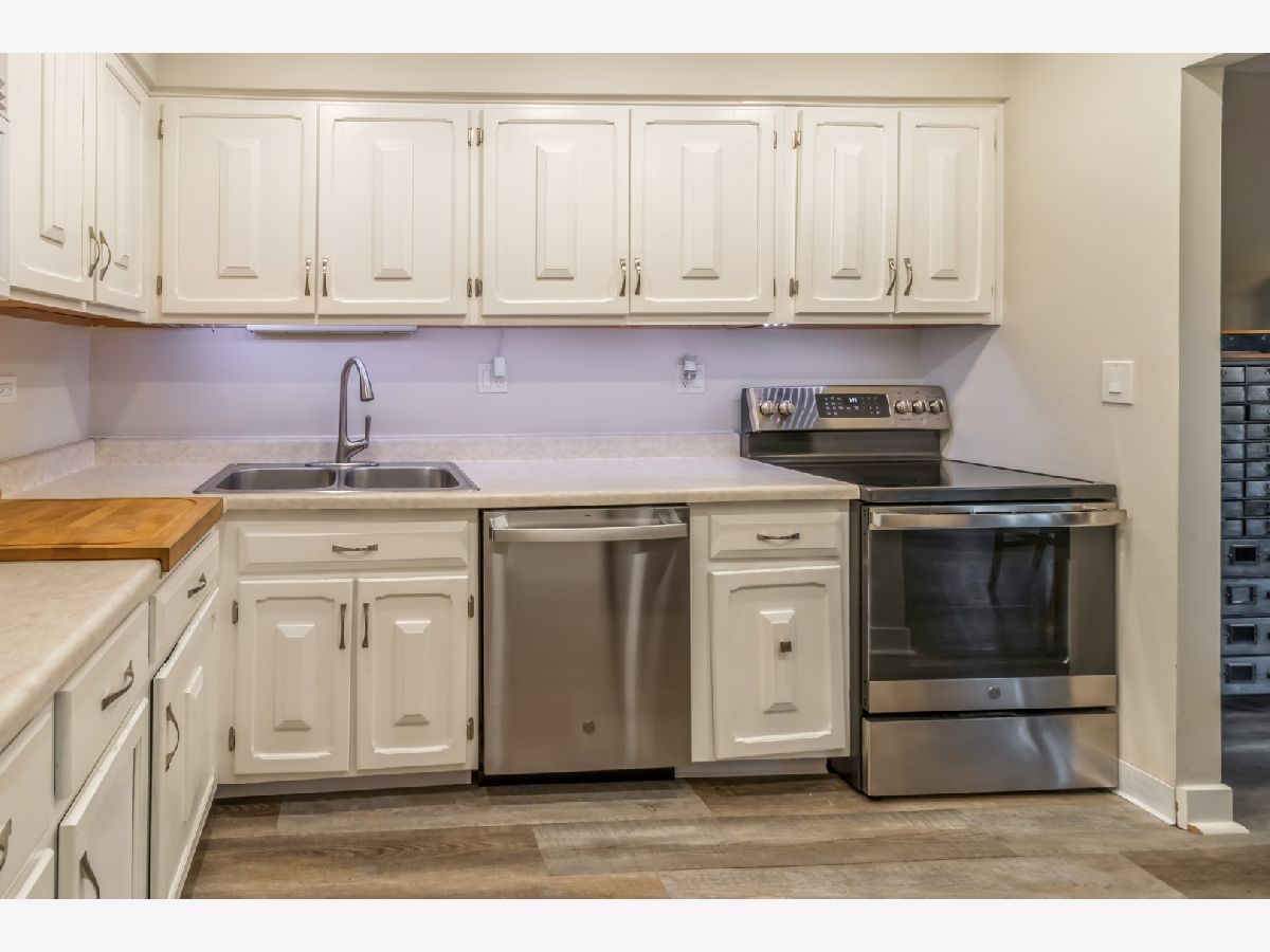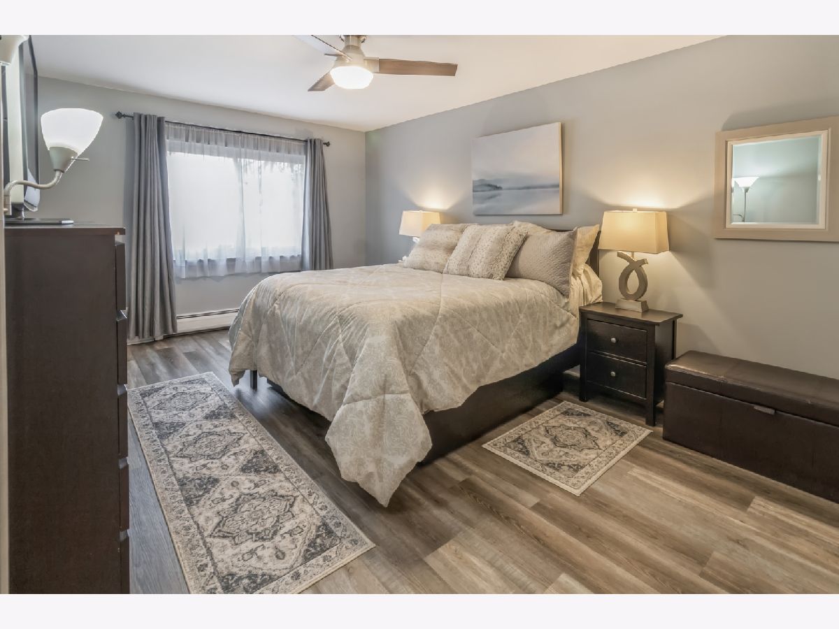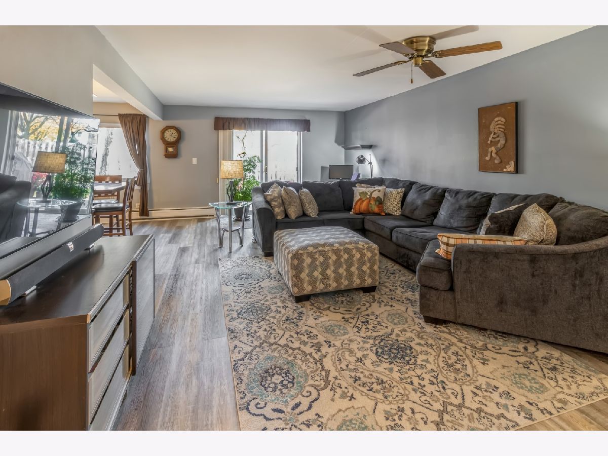 Welcome Home to this newly updated condominium in Brittany Place! This First floor home offers Grey LVP flooring through out and newer paint. The Kitchen has white cabinetry and newer hardware with stainless steel appliances. Large French door refrigerator and a pantry. Plenty of room for your cooking needs. This home offers a large family room, dining room combination. Look right out side of your back private patio door for some peace and tranquillity on your outdoor space perfect for grilling and entertaining. The Primary bedroom is large enough for a king size bedroom set with ample closet space and storage. The bathroom is updated with added wainscoting. The communal laundry is in the basement. However, you can add laundry in your unit if you prefer. Basement also has your own private storage locker. This unit is warm and charming and ready for its new owner. Close to everything Arlington Heights has to offer, close to 90 for easy expressway access.