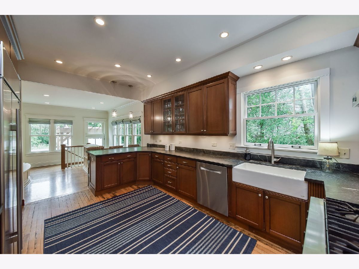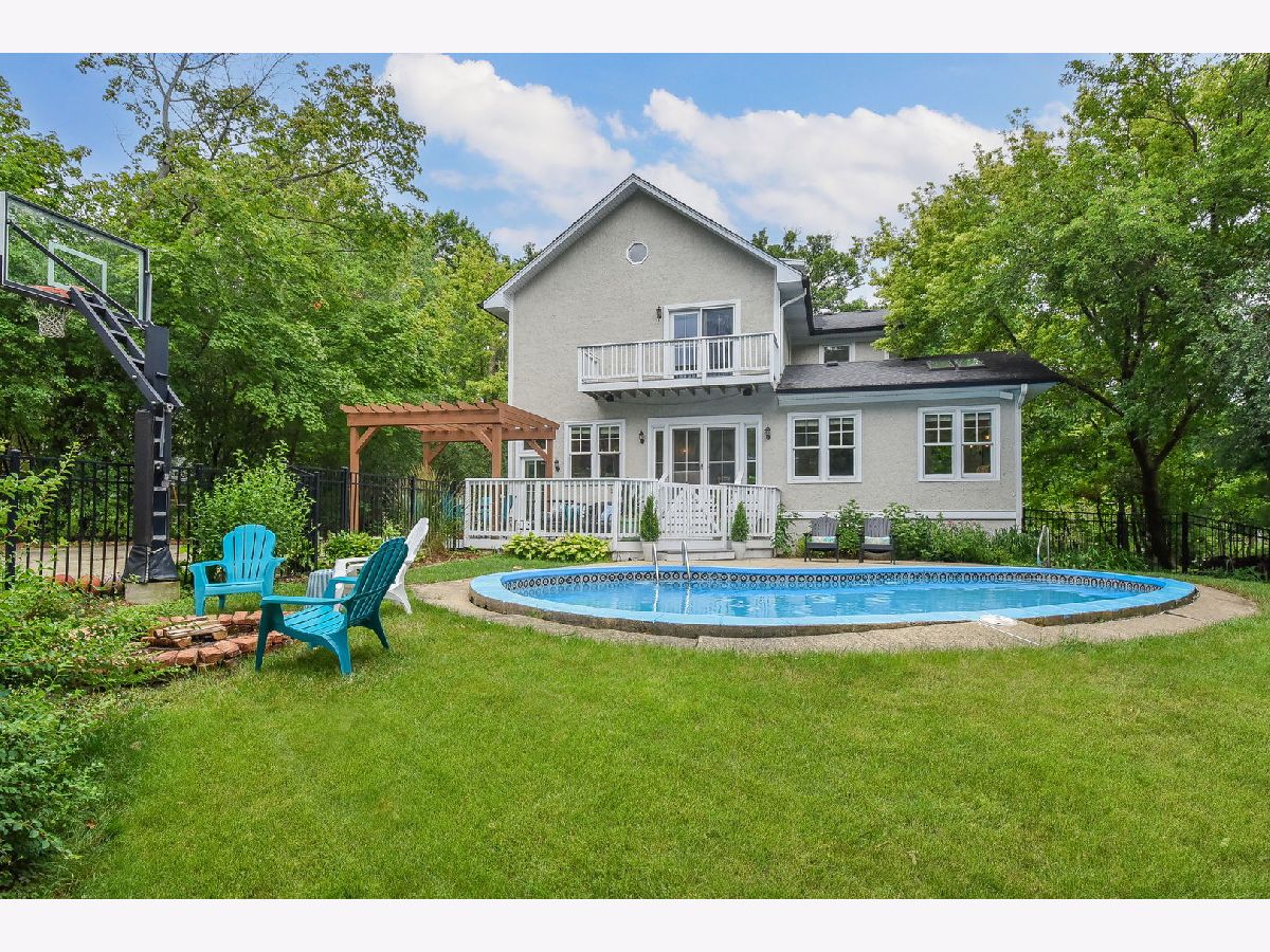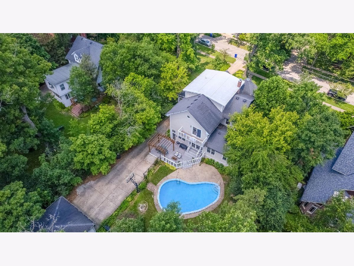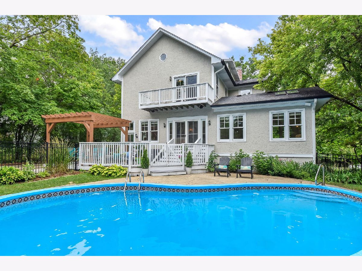 Rare opportunity to own over 3/4 of an acre on one of Glen Ellyn's most beloved blocks. In addition to the coveted Hillside Avenue location, this classic vintage home offers 6 bedrooms, 3 bathrooms, a 4 car garage and pool situated among towering trees in a breathtaking setting! As you enter you are greeted by the gracious foyer & living room with wood burning fireplace and coffered ceilings. Live & entertain in style in the open concept gourmet kitchen complete with soapstone counters and Subzero/Viking/Bosch appliances & a beautifully designed mudroom area. The sun drenched oversized family room with built ins and skylights opens to the eating area and kitchen. The main level also offers an office, a first floor bedroom and a full first floor bathroom. The second floor includes a true primary suite w/French doors opening to the balcony providing aerial views of the spectacular park like backyard as well as a spa bath, large walk in closet and laundry. There are four additional bedrooms and an updated hall bath on the second floor as well as a finished 3rd floor - rec room area. The unfinished basement is perfect for a play room and offers great storage - bathroom plumbing has been roughed in. Lush, deep yard has a newer fence with multiple outdoor living areas - sip coffee on the covered front porch or entertain poolside on the oversized deck w/pergola. Stroll 3 blocks to town & train, Prairie Path & Ben Franklin Elementary Grade School. The opportunity to own this much land on this prestigious street doesn't come often!