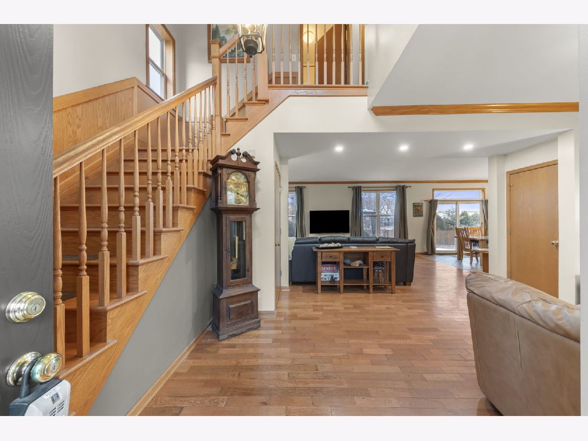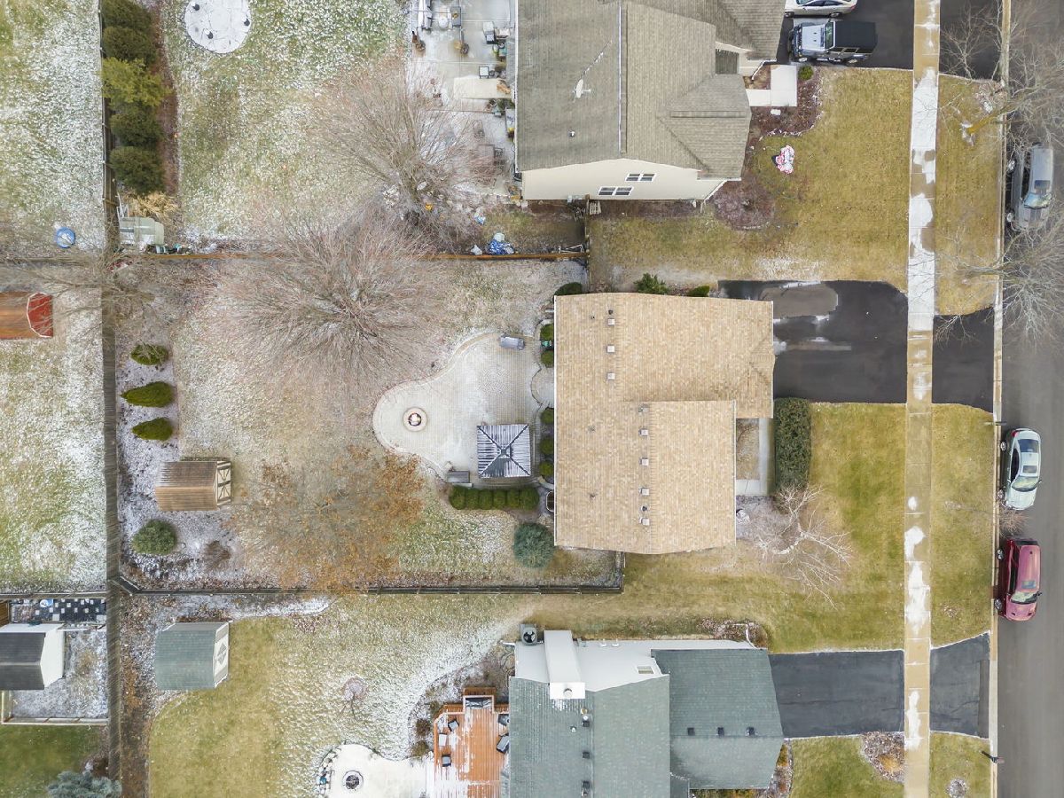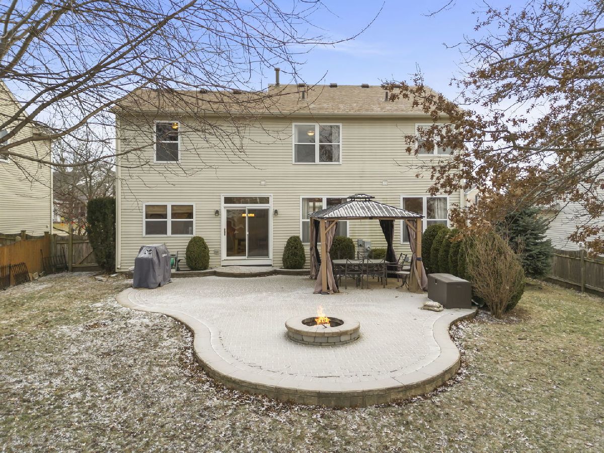 Discover the perfect blend of timeless charm and modern updates in this beautifully maintained, one-owner home! Step into the graceful two-story foyer with gleaming hardwood floors that extend throughout the main level, setting the stage for this 3-bedroom, 2.1-bath masterpiece with crown moldings throughout. The centerpiece of the home is the completely rebuilt oak staircase with elegant, paneled wainscoting-a true showstopper! Designed for effortless entertaining, the layout flows seamlessly from the spacious Living Room to the expansive Family Room and Dining Area, where sliding doors open to a stunning backyard retreat. The heart of the home, the kitchen, boasts durable Staron countertops, large island, custom shelving in both pantries, and a stylish tiled backsplash-a chef's dream! Unwind in the luxurious Master Suite featuring a walk-in closet and spa-like ensuite with a double sink vanity, soaking tub, new Kohler shower, and luxury plank vinyl flooring. The generously sized second and third bedrooms, along with a full hall bath, complete the upper level, which also includes the ultimate convenience of second-floor laundry. The unfinished basement offers endless possibilities with a concrete crawl space with plenty of space for storage and a radon mitigation system already installed. Step outside to your private oasis - a serene, fully fenced yard with an extended brick paver patio, cozy fire pit, beautiful gazebo, mature trees, and a handy shed to store all of your gardening tools that you will use for this wonderful yard! Recent updates include a new roof (2019), newer AC and water heater, a brand-new sliding door to the patio, updated lighting throughout, fresh exterior trim paint, and new asphalt driveway. BONUS: The seller is offering a carpet credit, giving you the chance to make this move-in-ready home truly yours! Incredible location, just minutes from I-88, premier shopping, scenic bike paths, and nature trails, this home has it all. Act fast-homes like this don't stay on the market for long. Schedule your showing today!