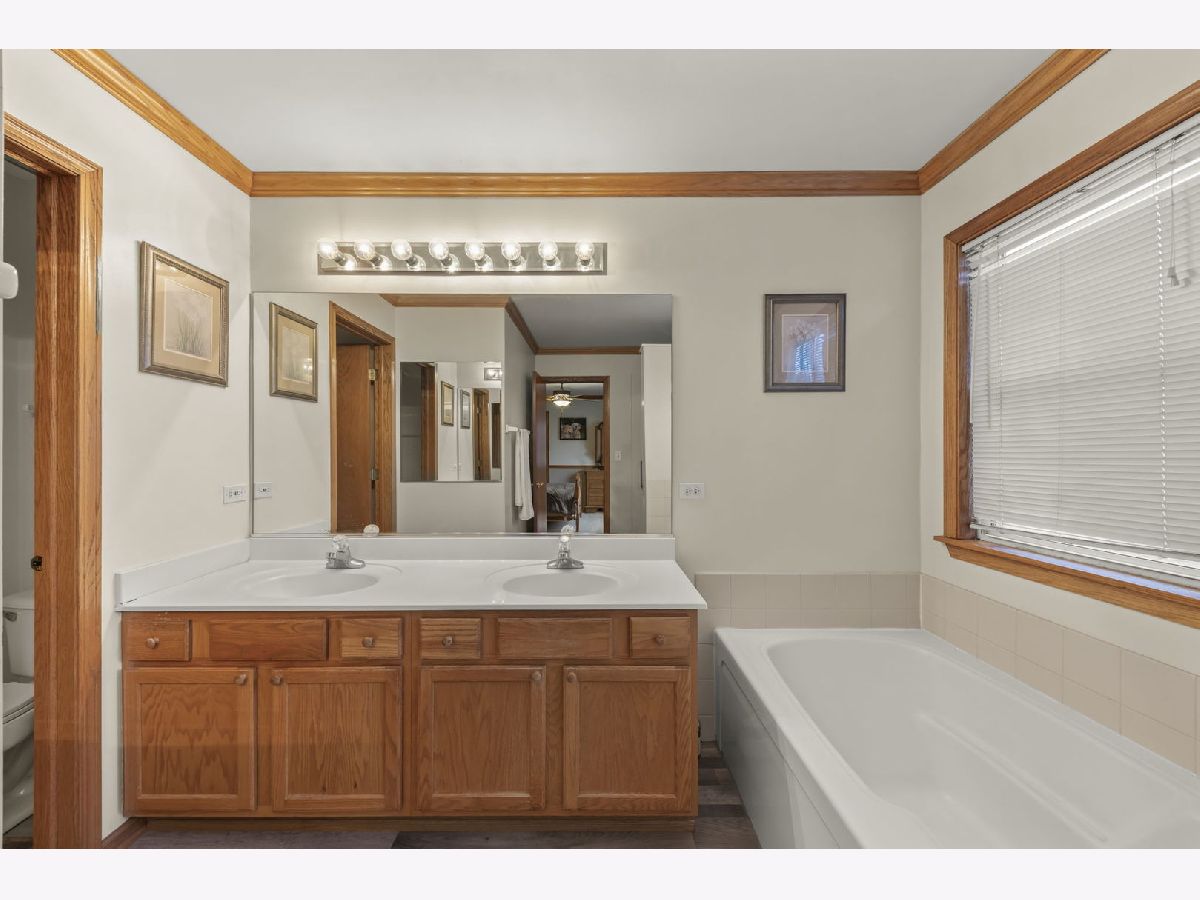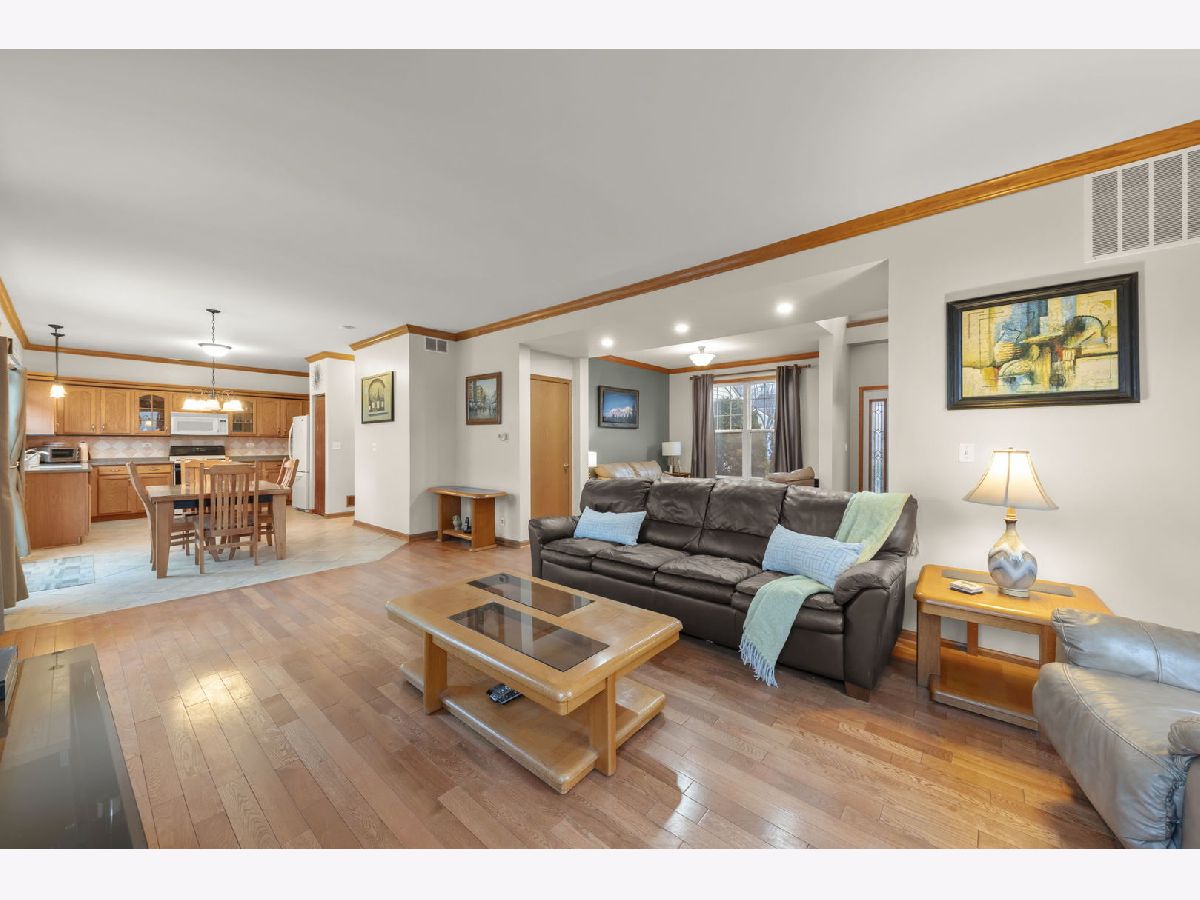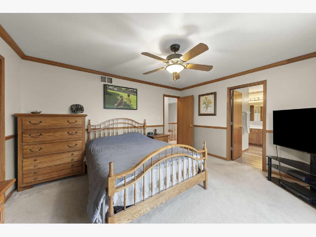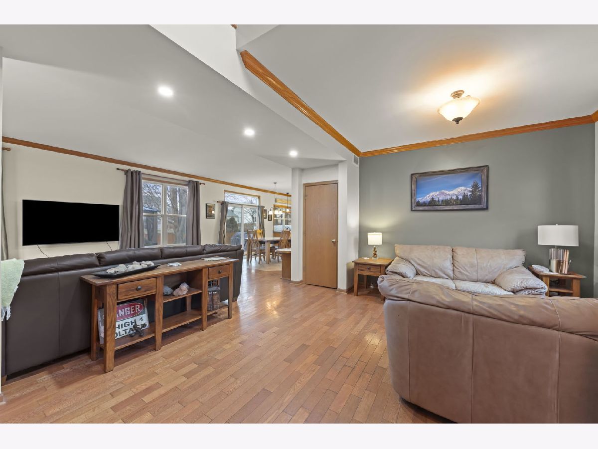 Discover the perfect blend of timeless charm and modern updates in this beautifully maintained, one-owner home! Step into the graceful two-story foyer with gleaming hardwood floors that extend throughout the main level, setting the stage for this 3-bedroom, 2.1-bath masterpiece with crown moldings throughout. The centerpiece of the home is the completely rebuilt oak staircase with elegant, paneled wainscoting-a true showstopper! Designed for effortless entertaining, the layout flows seamlessly from the spacious Living Room to the expansive Family Room and Dining Area, where sliding doors open to a stunning backyard retreat. The heart of the home, the kitchen, boasts durable Staron countertops, large island, custom shelving in both pantries, and a stylish tiled backsplash-a chef's dream! Unwind in the luxurious Master Suite featuring a walk-in closet and spa-like ensuite with a double sink vanity, soaking tub, new Kohler shower, and luxury plank vinyl flooring. The generously sized second and third bedrooms, along with a full hall bath, complete the upper level, which also includes the ultimate convenience of second-floor laundry. The unfinished basement offers endless possibilities with a concrete crawl space with plenty of space for storage and a radon mitigation system already installed. Step outside to your private oasis - a serene, fully fenced yard with an extended brick paver patio, cozy fire pit, beautiful gazebo, mature trees, and a handy shed to store all of your gardening tools that you will use for this wonderful yard! Recent updates include a new roof (2019), newer AC and water heater, a brand-new sliding door to the patio, updated lighting throughout, fresh exterior trim paint, and new asphalt driveway. BONUS: The seller is offering a carpet credit, giving you the chance to make this move-in-ready home truly yours! Incredible location, just minutes from I-88, premier shopping, scenic bike paths, and nature trails, this home has it all. Act fast-homes like this don't stay on the market for long. Schedule your showing today!