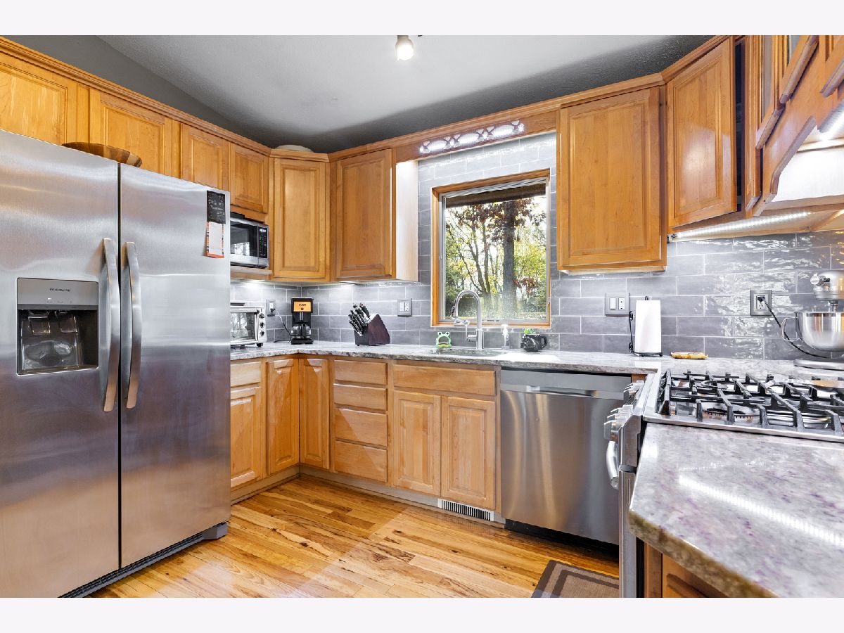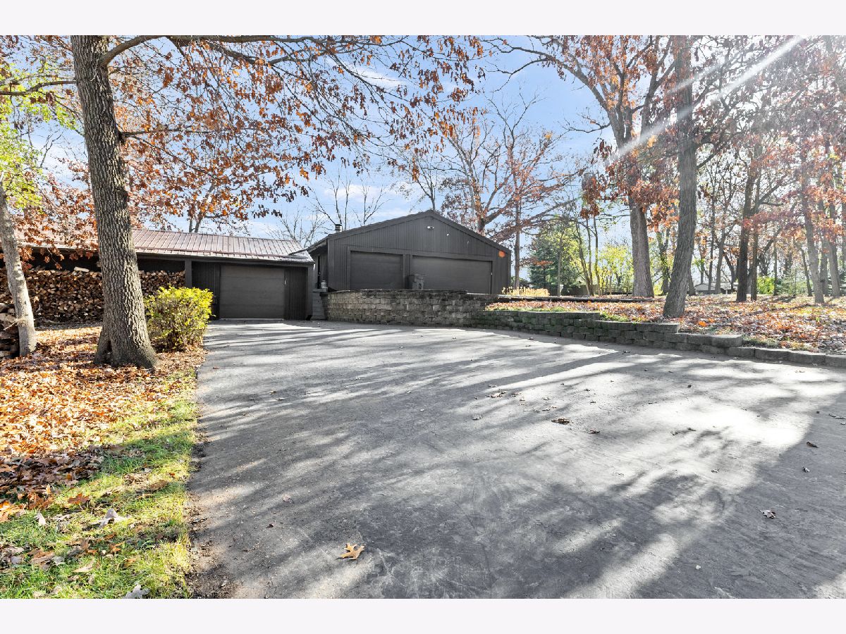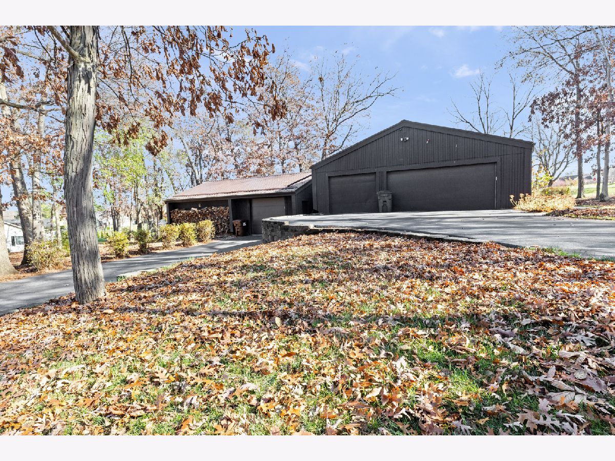 Fully exposed, walkout from finished lower level Ranch, sitting on a wooded lot full of mature trees. Want a heated workshop, extra garage or storage space, man cave, this home has both attached and detached garages for you. A wow kitchen, hickory hardwood flooring, stainless steel appliances, cabinetry with pullouts, granite countertops, gas cooktop, eating area. Living Room with gas fireplace, Hickory hardwood floors. Almost every window replaced, Pella windows. Family Room with vaulted ceiling. Decorator colors, professionally painted. Primary Bathroom is spa like, walk-in tile shower with 7 shower heads, tile floor, double vanity sink, granite countertop, newer lighting.6 panel solid doors. Oak stairway leading down to professionally finished lower level. 2nd Family Room with fireplace, bar area, tin ceiling, tile floor, bedroom. Walk out to patio with 6 person Jacuzzi hot tub. Professionally landscaped almost an acre lot with a firepit.