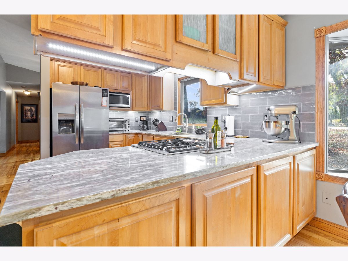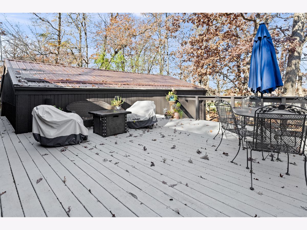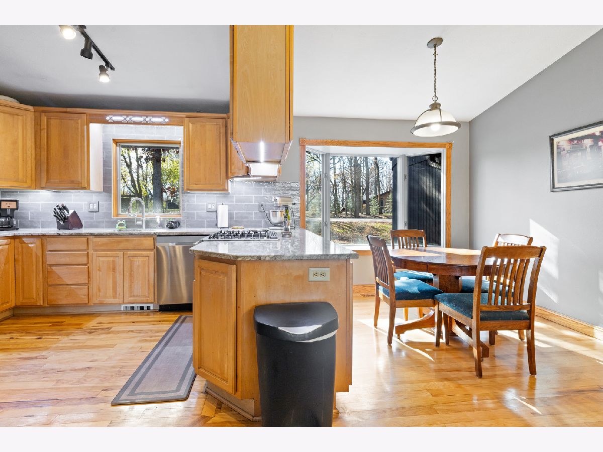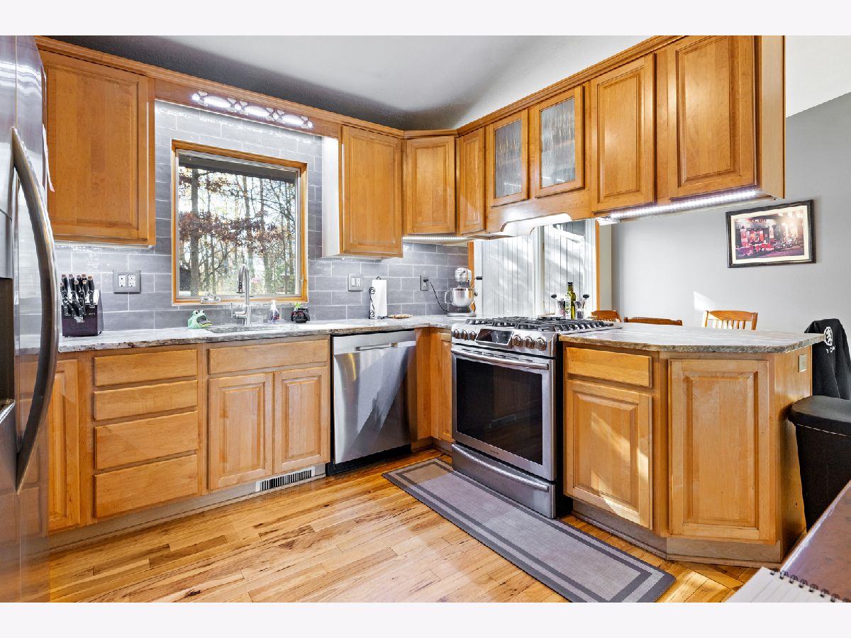 Fully exposed, walkout from finished lower level Ranch, sitting on a wooded lot full of mature trees. Want a heated workshop, extra garage or storage space, man cave, this home has both attached and detached garages for you. A wow kitchen, hickory hardwood flooring, stainless steel appliances, cabinetry with pullouts, granite countertops, gas cooktop, eating area. Living Room with gas fireplace, Hickory hardwood floors. Almost every window replaced, Pella windows. Family Room with vaulted ceiling. Decorator colors, professionally painted. Primary Bathroom is spa like, walk-in tile shower with 7 shower heads, tile floor, double vanity sink, granite countertop, newer lighting.6 panel solid doors. Oak stairway leading down to professionally finished lower level. 2nd Family Room with fireplace, bar area, tin ceiling, tile floor, bedroom. Walk out to patio with 6 person Jacuzzi hot tub. Professionally landscaped almost an acre lot with a firepit.