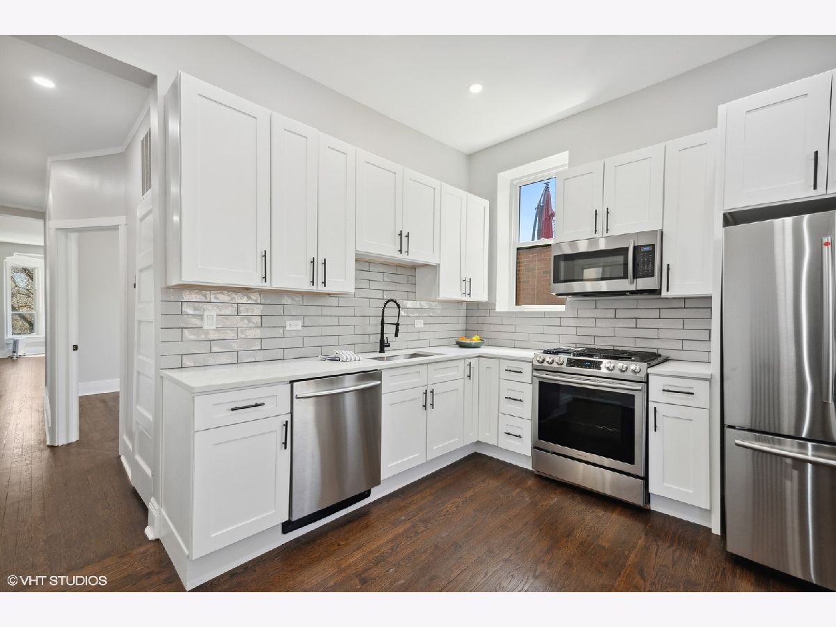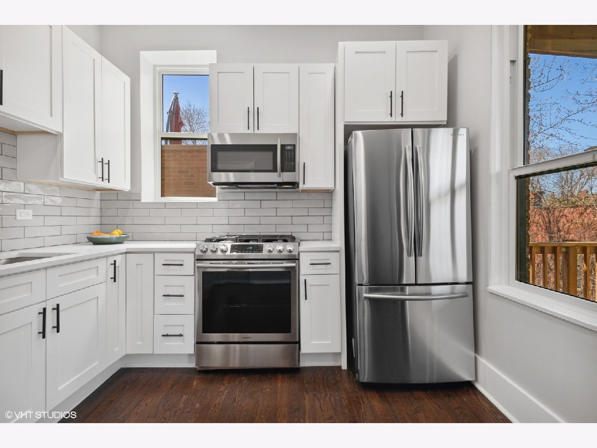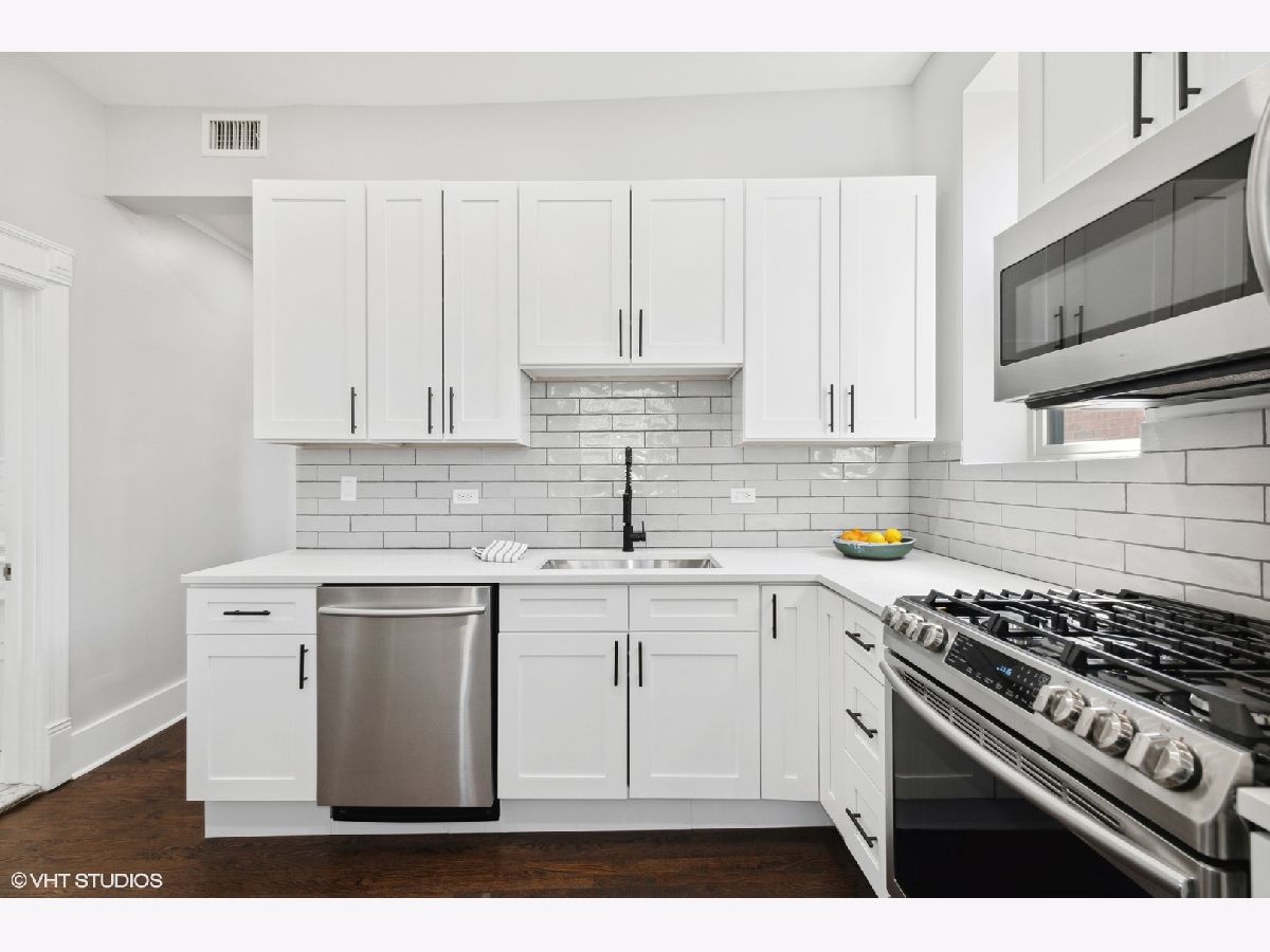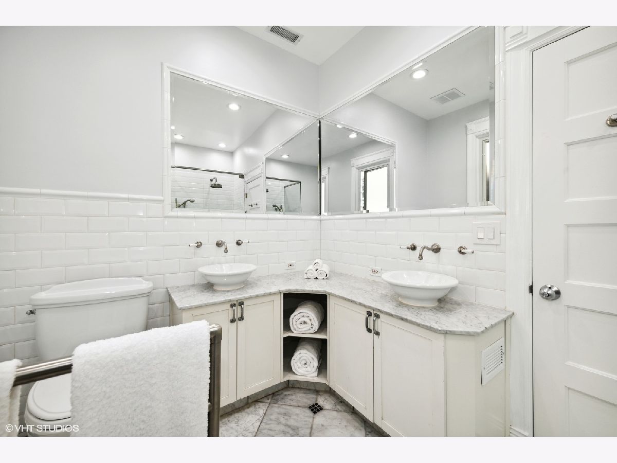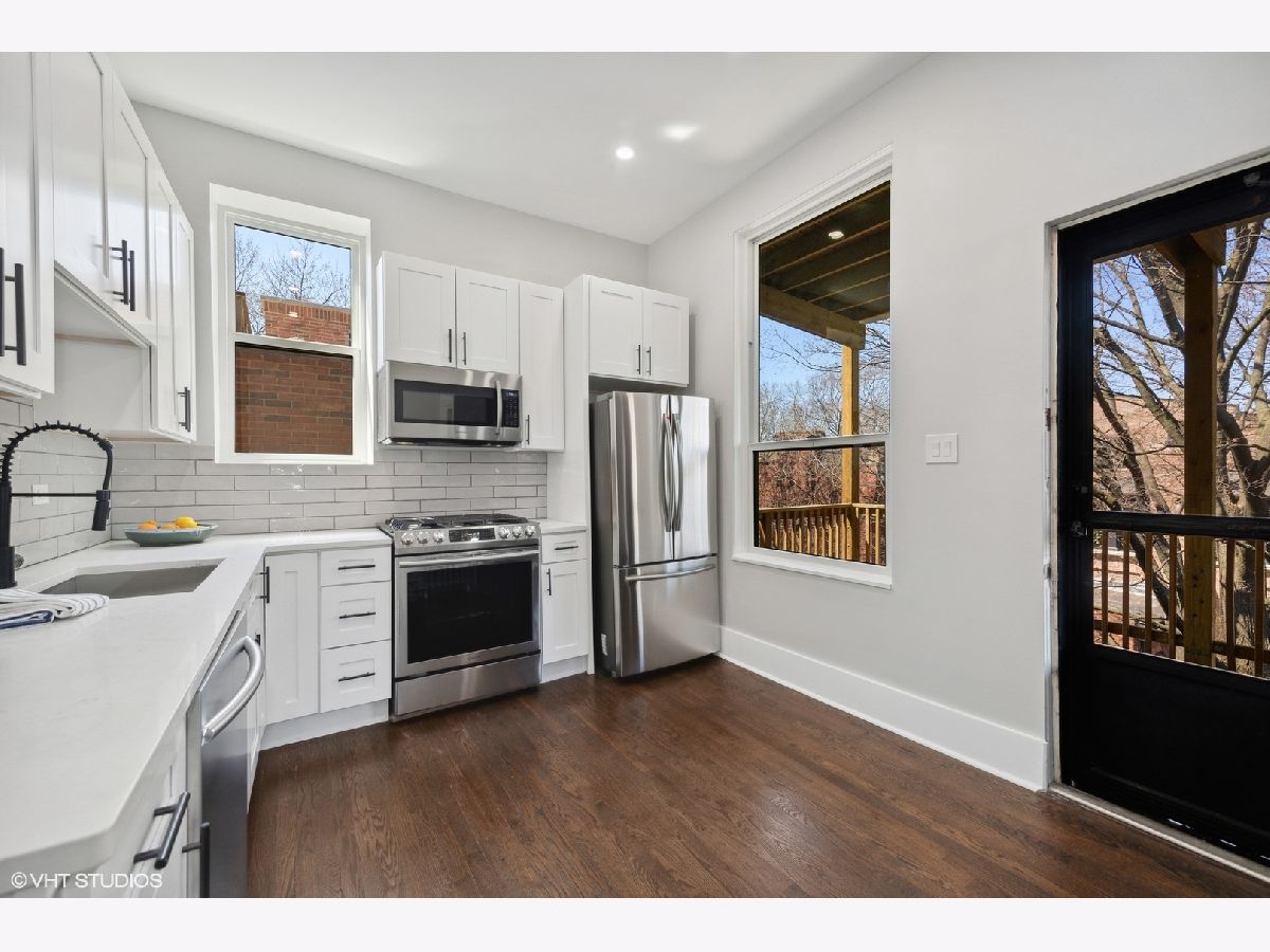 Fantastic top floor home in prime Lincoln Park location overlooks beautiful Oz Park and is flooded with light. While still retaining some classic details for warmth, this wonderful home has been fully redone and provides every modern convenience with style. Featuring beautiful hardwood floors, tall ceilings, and great light in every room. Oversized living and dining room with fireplace and big new windows that overlook Oz Park and space that easily accommodates large furniture. Kitchen is completely new with white cabinets, quartz counters, large subway tile backsplash, and all new appliances. Plus this great kitchen opens to spectacular oversized deck, providing great outdoor living and entertaining space directly off kitchen, nestled in mature trees and overlooking Burling Street homes & yards. Back inside, beautiful marble bath features double sinks, air jet tub and walk-in shower with seat and classic subway tile surround. Laundry room off kitchen provides pantry and storage space. Solid, well-maintained building with large additional storage space. Central air, fresh new paint, newer windows and tasteful lighting throughout, along with some great original details leave nothing to do but move in and enjoy Summer from this wonderful home in the heart of Lincoln Park, steps to great restaurants, parks, shopping, and Lincoln Elementary school, as well as close to Brown Purple & Red Line trains and the lakefront.