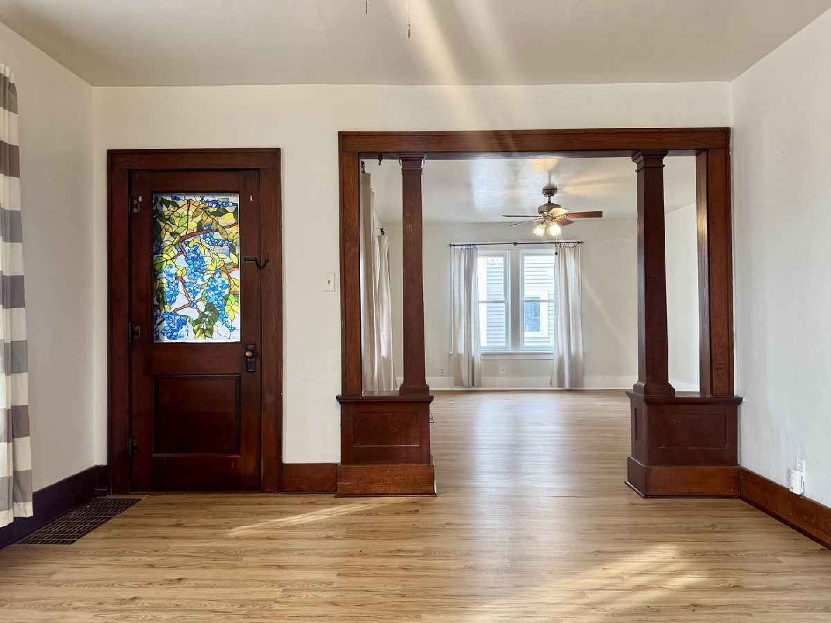 Take a look at this 3 bedroom home that has been recently cleaned and painted, and is move in ready! You'll love the spacious main level layout with replacement windows and tons of natural light. The main level also conveniently holds the washer and dryer which stay with the property, the full (and beautifully remodeled) bathroom, and one of the bedrooms, so you can enjoy main level living if so desired. The upper level features two additional bedrooms, with one of them boasting beautiful hardwood floors and a walk in closet. The basement has ample room for storage and a partially finished area that was previously used as a non-conforming bedroom and could be utilized now for a variety of uses. This home sits on a corner lot with a nice sized back yard and has an enclosed front porch as well as a heated, enclosed back porch. The roof was replaced in late 2023, water heater is new, and furnace is less than 10 years old. Schedule your showing today!