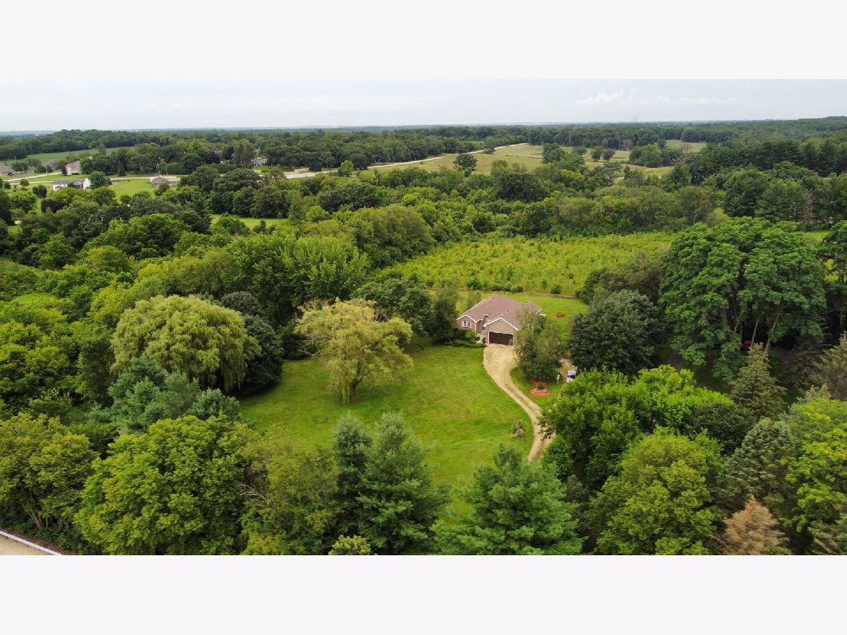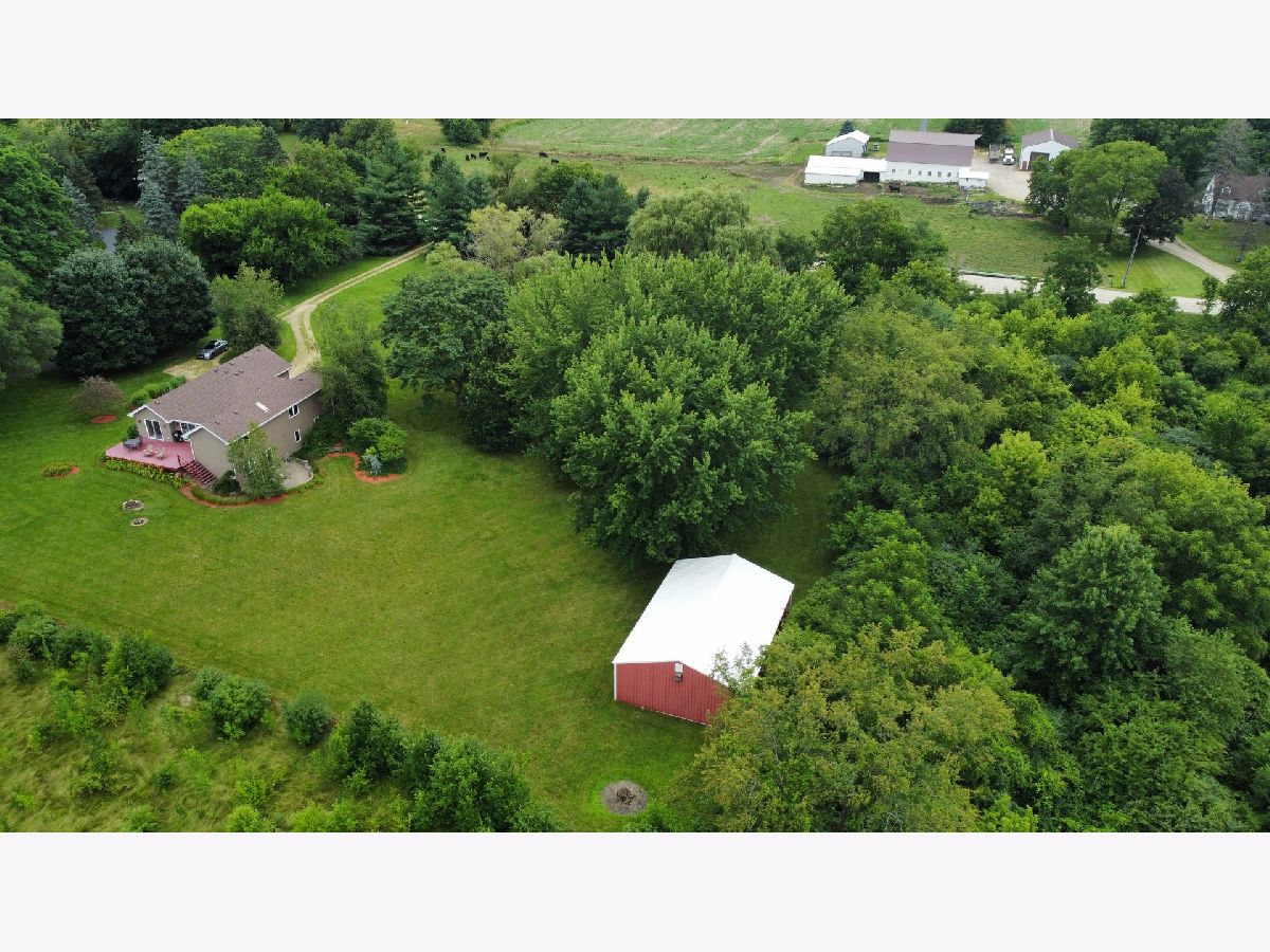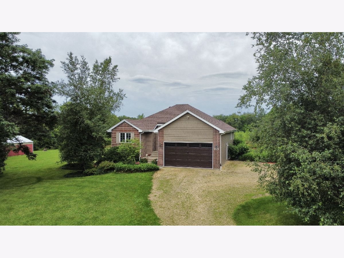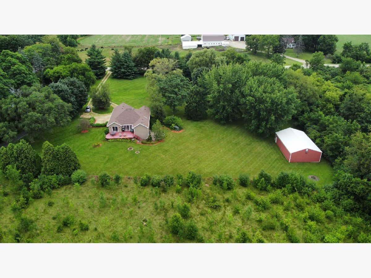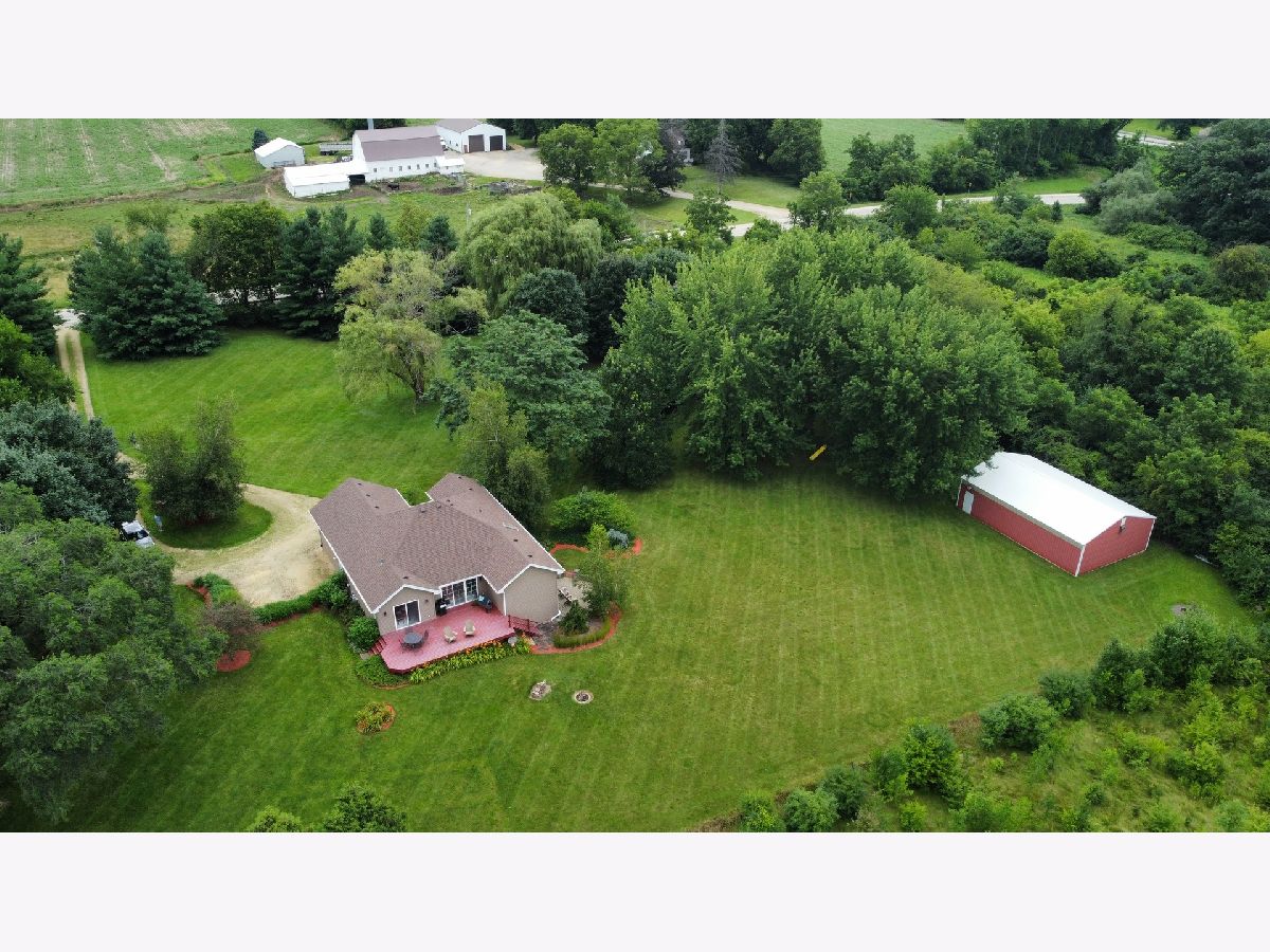 Escape to peaceful country living in this beautiful one-owner 4- bedroom, 3-bath ranch home set on 8 picturesque acres. A winding creek with a natural spring & mature trees creates a serene backdrop for this inviting property. Upon entering the tiled foyer, you are greeted with a bright & airy floor plan showcasing a slice of nature through the oversized windows/sliding door in the living room with white-washed hardwood flooring & a vaulted ceiling. Large eat-in kitchen with white cabinetry, granite countertops, breakfast bar, SS appliances, tile backsplash, a walk-in pantry & sliders out to the 27' x 16' deck with new top boards. 2 bedrooms on the main floor + a bonus room with French doors that could be an office, formal dining or 3rd bedroom. Primary bedroom with vaulted ceiling, walk-in closet private bathroom with Jacuzzi tub, separate shower, vanity with Quartz top & skylight to let in lots of natural light. The fully exposed lower level with 9' ft ceiling boasts 2 bedrooms, a game area with wet bar, full bath with Quartz top & a family room with a stacked stone gas fireplace with patio doors that lead out to a brick paver patio, perfect for entertaining or relaxing. 2.5 car garage with insulated finished drywall, epoxy flooring and even an 8' ft garage door to fit your oversized vehicles. Outside you have a 30' x 45' outbuilding with electricity providing ample space for storage, hobbies, or a workshop. Roof on house & building, siding, gutters, insulated garage door new in 2021, furnace with April Aire 2020, AC 2021, 50-gallon water heater 2016, water softener 2020. Portion of the property has AG zoning for your animals, low county taxes, Winnebago school district within minutes to the highway for easy access to local amenities.