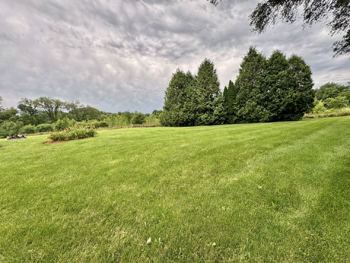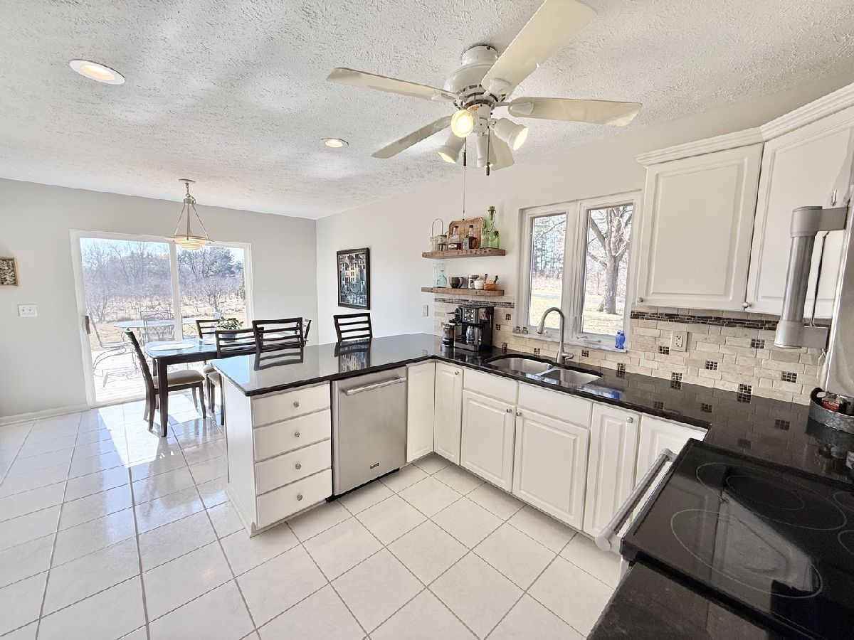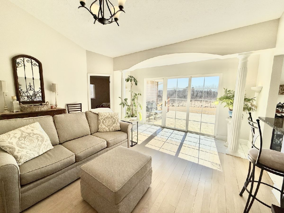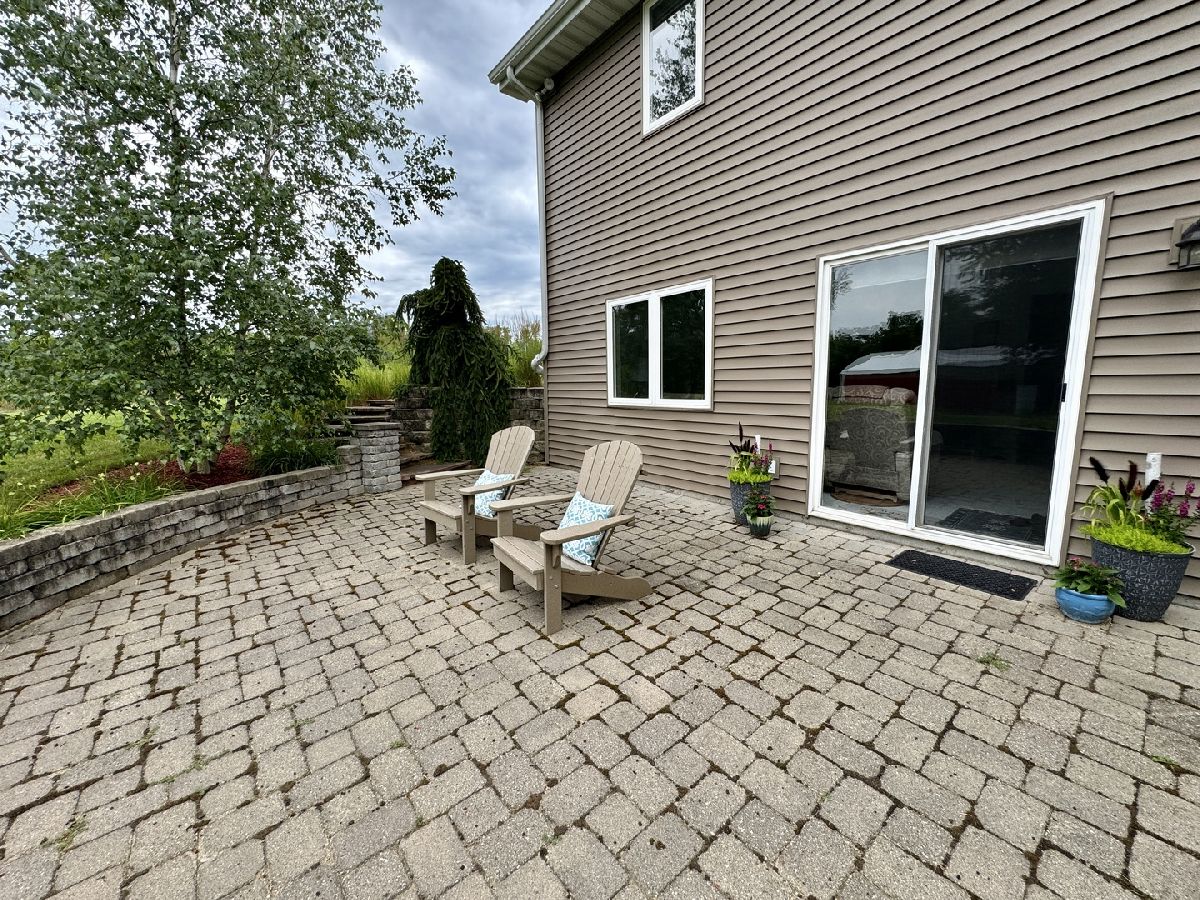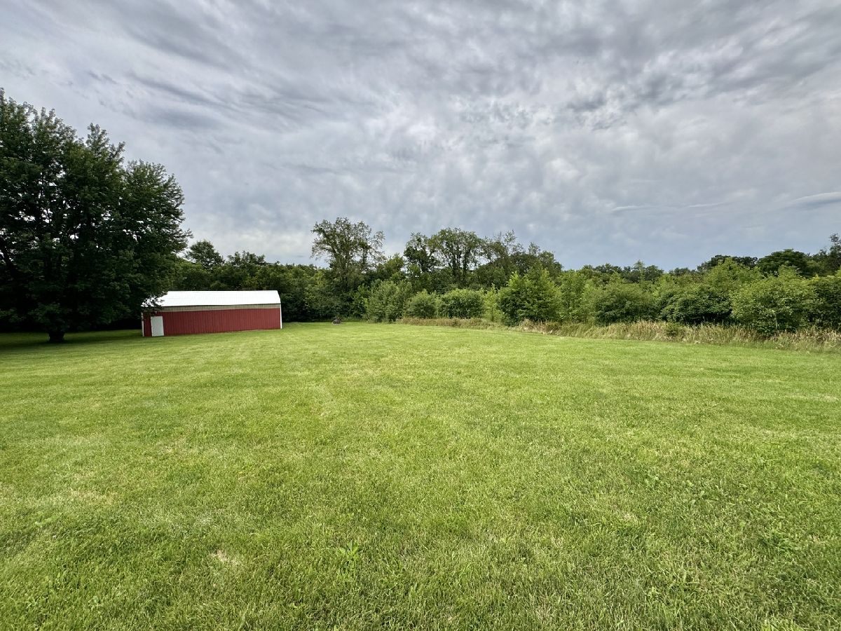 Escape to peaceful country living in this beautiful one-owner 4- bedroom, 3-bath ranch home set on 8 picturesque acres. A winding creek with a natural spring & mature trees creates a serene backdrop for this inviting property. Upon entering the tiled foyer, you are greeted with a bright & airy floor plan showcasing a slice of nature through the oversized windows/sliding door in the living room with white-washed hardwood flooring & a vaulted ceiling. Large eat-in kitchen with white cabinetry, granite countertops, breakfast bar, SS appliances, tile backsplash, a walk-in pantry & sliders out to the 27' x 16' deck with new top boards. 2 bedrooms on the main floor + a bonus room with French doors that could be an office, formal dining or 3rd bedroom. Primary bedroom with vaulted ceiling, walk-in closet private bathroom with Jacuzzi tub, separate shower, vanity with Quartz top & skylight to let in lots of natural light. The fully exposed lower level with 9' ft ceiling boasts 2 bedrooms, a game area with wet bar, full bath with Quartz top & a family room with a stacked stone gas fireplace with patio doors that lead out to a brick paver patio, perfect for entertaining or relaxing. 2.5 car garage with insulated finished drywall, epoxy flooring and even an 8' ft garage door to fit your oversized vehicles. Outside you have a 30' x 45' outbuilding with electricity providing ample space for storage, hobbies, or a workshop. Roof on house & building, siding, gutters, insulated garage door new in 2021, furnace with April Aire 2020, AC 2021, 50-gallon water heater 2016, water softener 2020. Portion of the property has AG zoning for your animals, low county taxes, Winnebago school district within minutes to the highway for easy access to local amenities.
