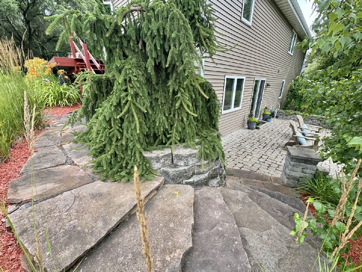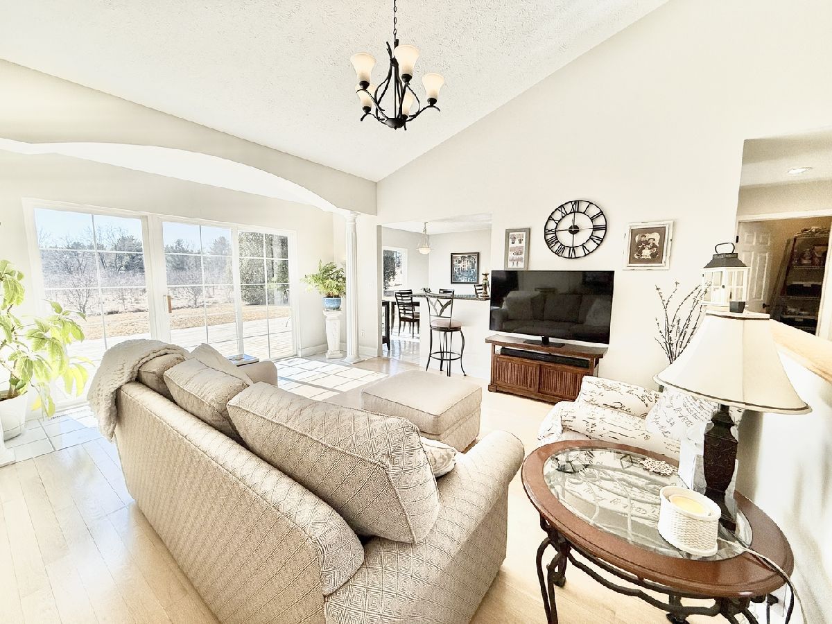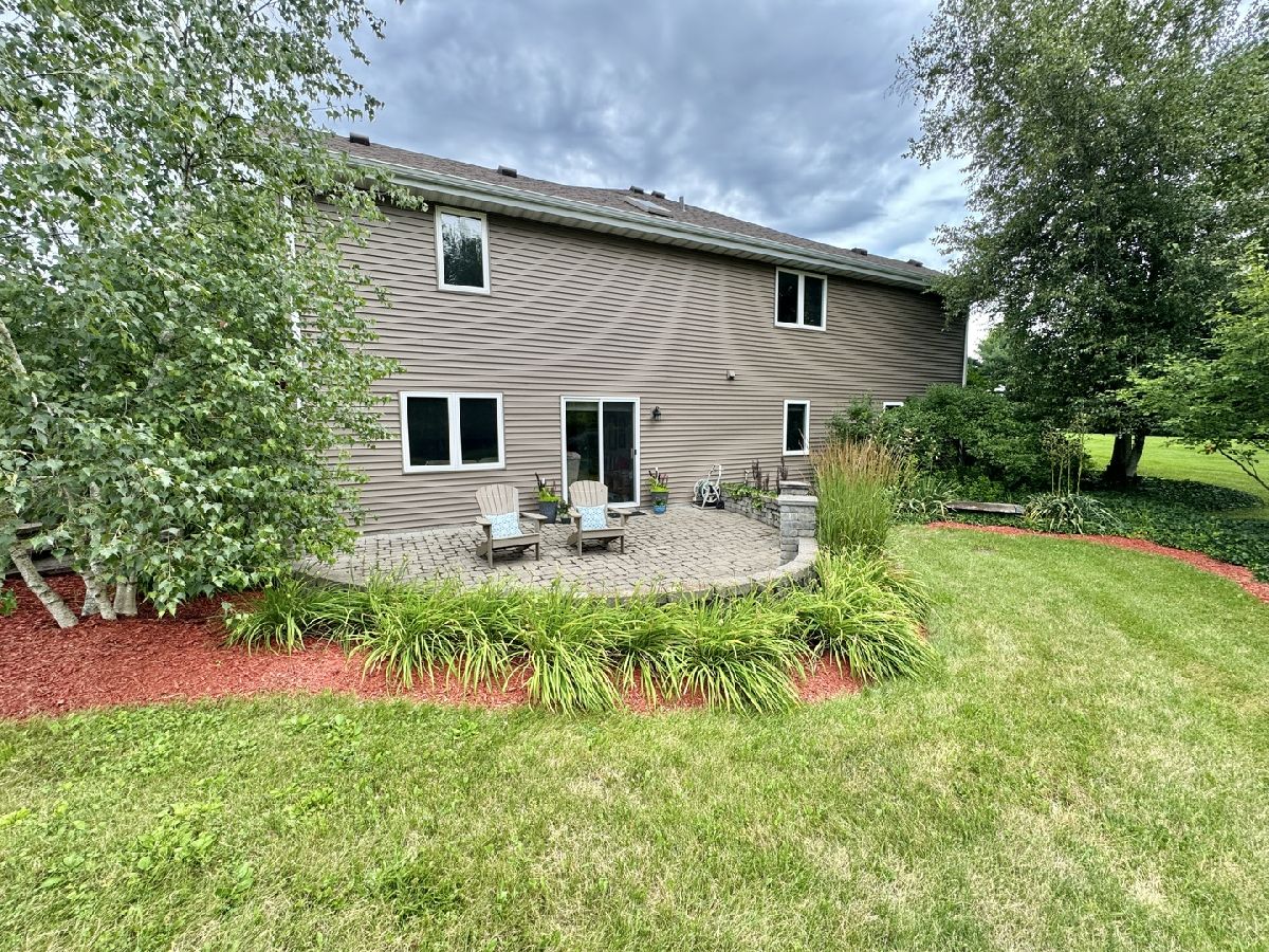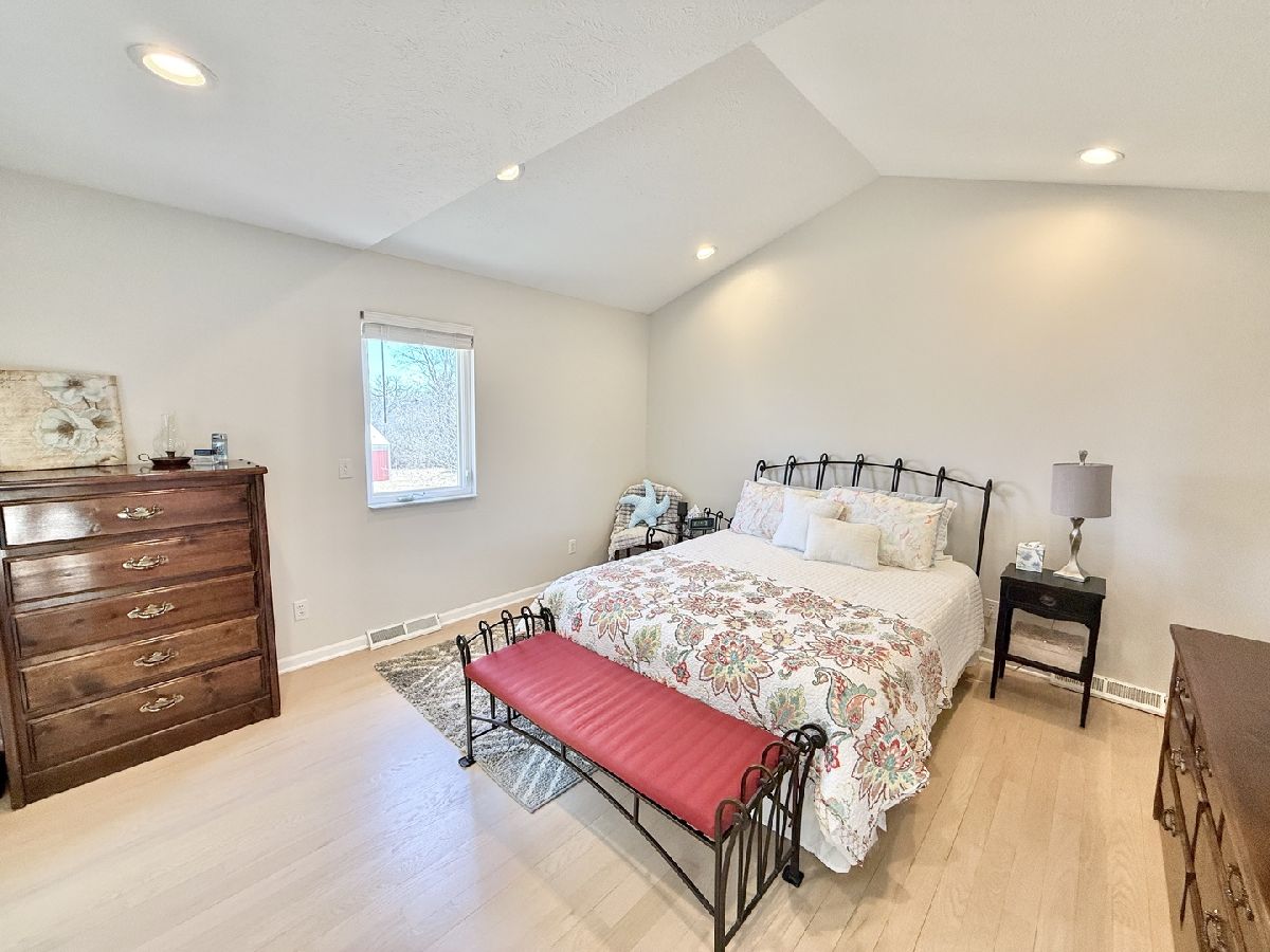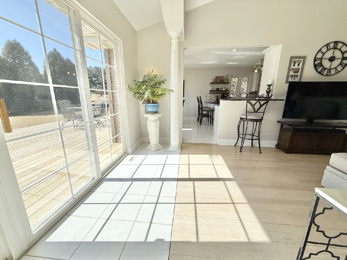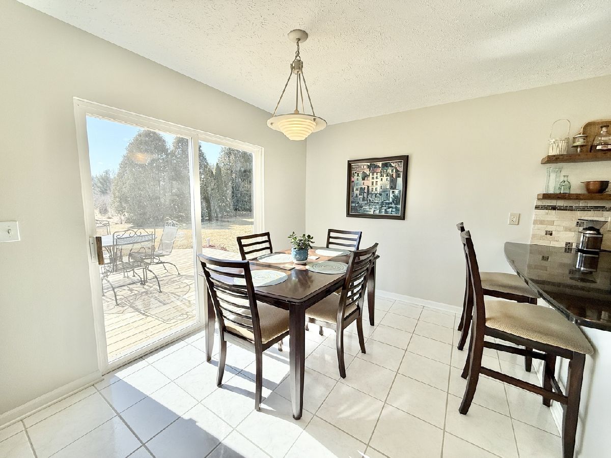 Escape to peaceful country living in this beautiful one-owner 4- bedroom, 3-bath ranch home set on 8 picturesque acres. A winding creek with a natural spring & mature trees creates a serene backdrop for this inviting property. Upon entering the tiled foyer, you are greeted with a bright & airy floor plan showcasing a slice of nature through the oversized windows/sliding door in the living room with white-washed hardwood flooring & a vaulted ceiling. Large eat-in kitchen with white cabinetry, granite countertops, breakfast bar, SS appliances, tile backsplash, a walk-in pantry & sliders out to the 27' x 16' deck with new top boards. 2 bedrooms on the main floor + a bonus room with French doors that could be an office, formal dining or 3rd bedroom. Primary bedroom with vaulted ceiling, walk-in closet private bathroom with Jacuzzi tub, separate shower, vanity with Quartz top & skylight to let in lots of natural light. The fully exposed lower level with 9' ft ceiling boasts 2 bedrooms, a game area with wet bar, full bath with Quartz top & a family room with a stacked stone gas fireplace with patio doors that lead out to a brick paver patio, perfect for entertaining or relaxing. 2.5 car garage with insulated finished drywall, epoxy flooring and even an 8' ft garage door to fit your oversized vehicles. Outside you have a 30' x 45' outbuilding with electricity providing ample space for storage, hobbies, or a workshop. Roof on house & building, siding, gutters, insulated garage door new in 2021, furnace with April Aire 2020, AC 2021, 50-gallon water heater 2016, water softener 2020. Portion of the property has AG zoning for your animals, low county taxes, Winnebago school district within minutes to the highway for easy access to local amenities.