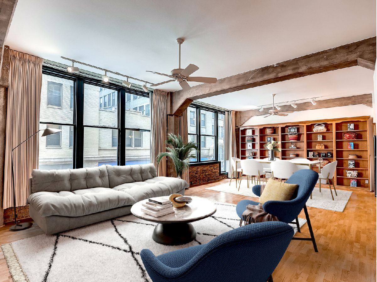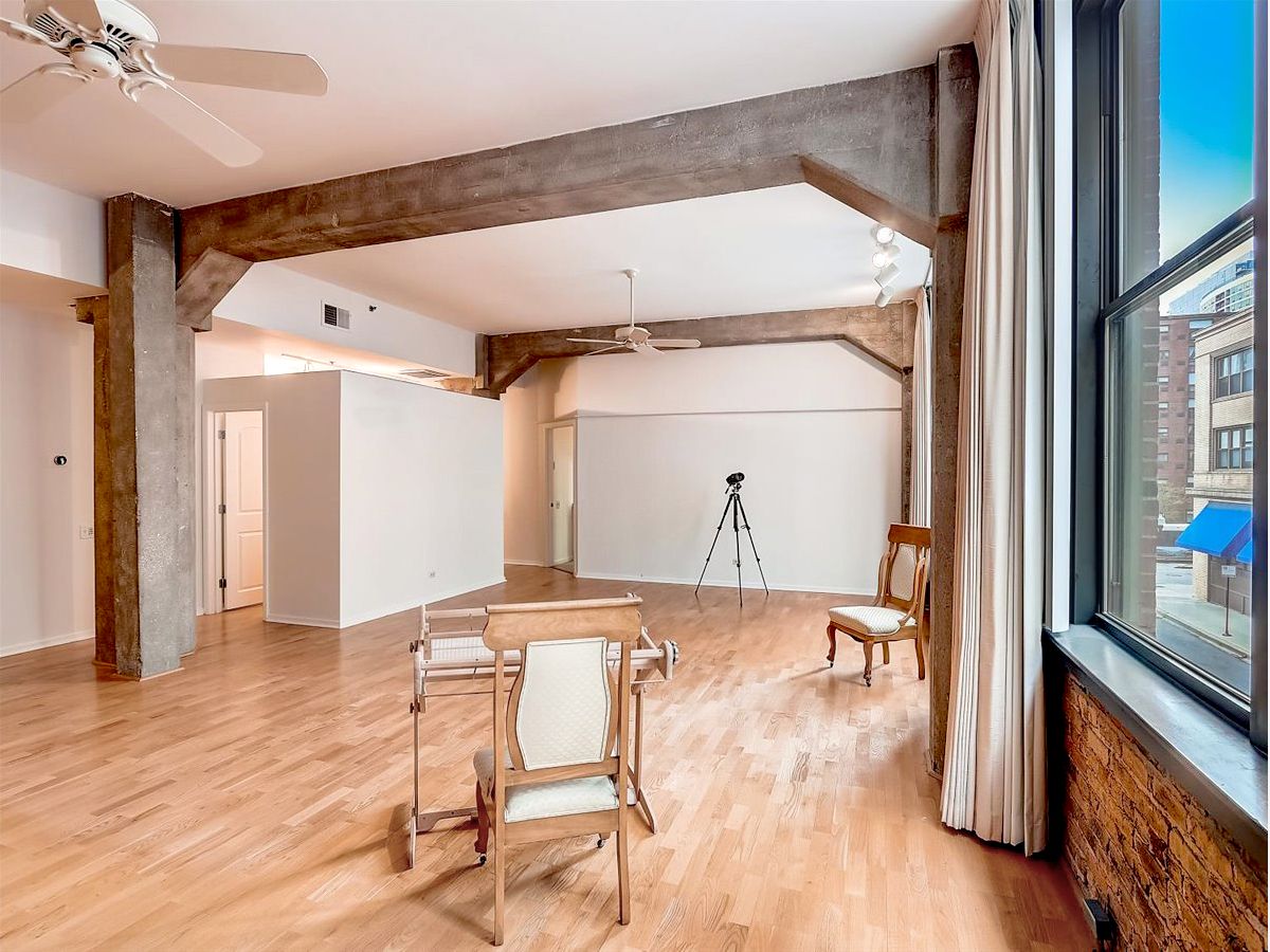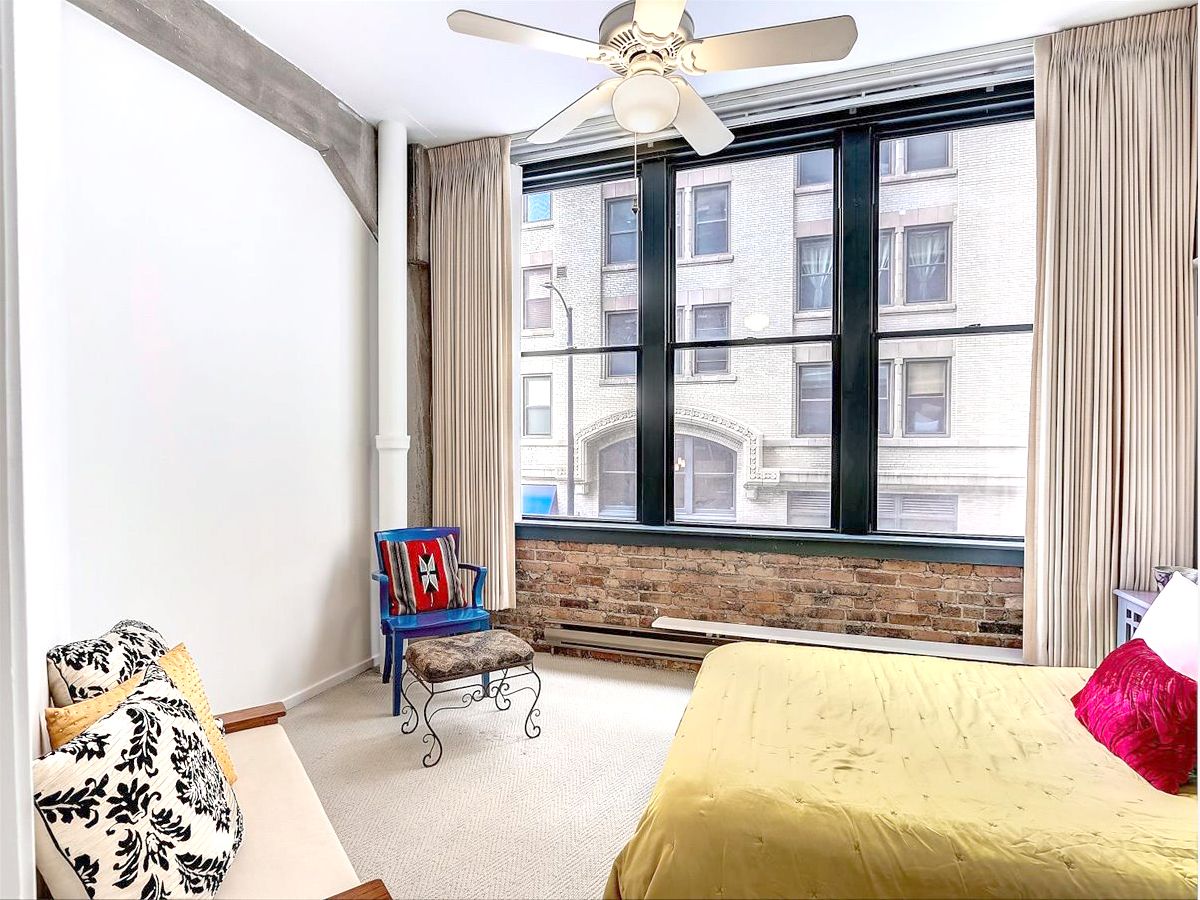 Beautiful finished loft space in the heart of Printer's Row in the historic Franklin Building. 9 tall windows (3 of them in the bedroom) flood the place with afternoon sunshine. Wide open traditional loft space with high ceilings, exposed brick, concrete pillars and beams and genuine oak floors dating from the condo conversion in 1989, so they will still have many years of life in them. A massive built-in open shelved bookcase extends from floor to ceiling on the north wall. The open kitchen is contemporary with wood cabinets, granite countertops and full appliances. Both the half bath and the full bath have been updated and ceramic tiled. The full bath has a glass enclosed shower with a tiled seat and a double undermounted sink vanity with granite countertop. The toilet is in a separate compartment which also includes the front loading laundry machines and storage shelving. Between the kitchen and the full bath is a hallway lined with closets on both sides. One of the double closets has extensive closet built-in cabinetry with drawers, open shelves and hanging rods. There is a large walk-in closet with one wall lined with built-in cabinetry with drawers. Opposite the cabinet is the door to a private bedroom with 3 large windows. The possibilities are endless in this airy condominium. Because there are so many windows with frontage on the street, more rooms could be created or reconfigured. There are no structural walls because of the concrete pillars and beams. The walls and ceilings have just been carefully skimcoated and painted and all the trim and doors have been repainted so it is in move-in condition just the way it is. For those who live on this special block of the city, there is no where else they'd rather be. It is in the center of the transportation hub of the metropolis. All of the CTA train lines have stops within 2 blocks of the building. There is a Red Line stop right outside on Polk. It's easy access to all of the highways from Ida B Wells Drive just 2 blocks north including easy access to Lake Shore Dr. Buses stop across the street. The neighborhood is brimming with restaurants, bars & shops. It's an easy walk or roll to Grant Park, Buckingham Fountain, Millennium Park, the museums, theaters, universities, and all of the shopping and eating in the Loop. You can head south and be at the University of Chicago and its hospitals in minutes. Walk Score says it's a walker's and public transportation rider's paradise. The vaunted 2-way protected bike path that runs all the way through the Loop and over the river begins outside the front door. Parking garages and a parking lot surround this building. The parking offered would be offsite and leased separately, but you'll rarely have to use a car. There is a bike room in the basement next to the coin laundry which is available to use if you have bulky items. The janitor is competent, and the management company is miraculously accessible. There is a large service elevator that opens to the street for easy move-in and out that recalls its days of hauling heavy loads of paper. This building is carefully run by an attentive board and management. They have so successfully completed the most recent improvements to the building that they were able to LOWER the assessments beginning in 2020. 2023 assessments are 8.38% LESS than last year's. EVERYTHING is included in the assessment except electric. That includes high speed internet and basic cable from RCN. Please note that the virtual tour includes unit 206 which is on the market as a separate listing or can be purchase with this unit 204 for a different price.