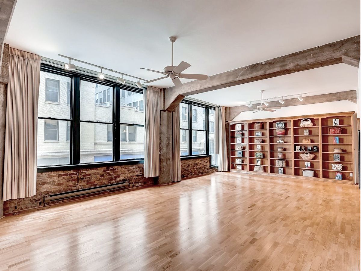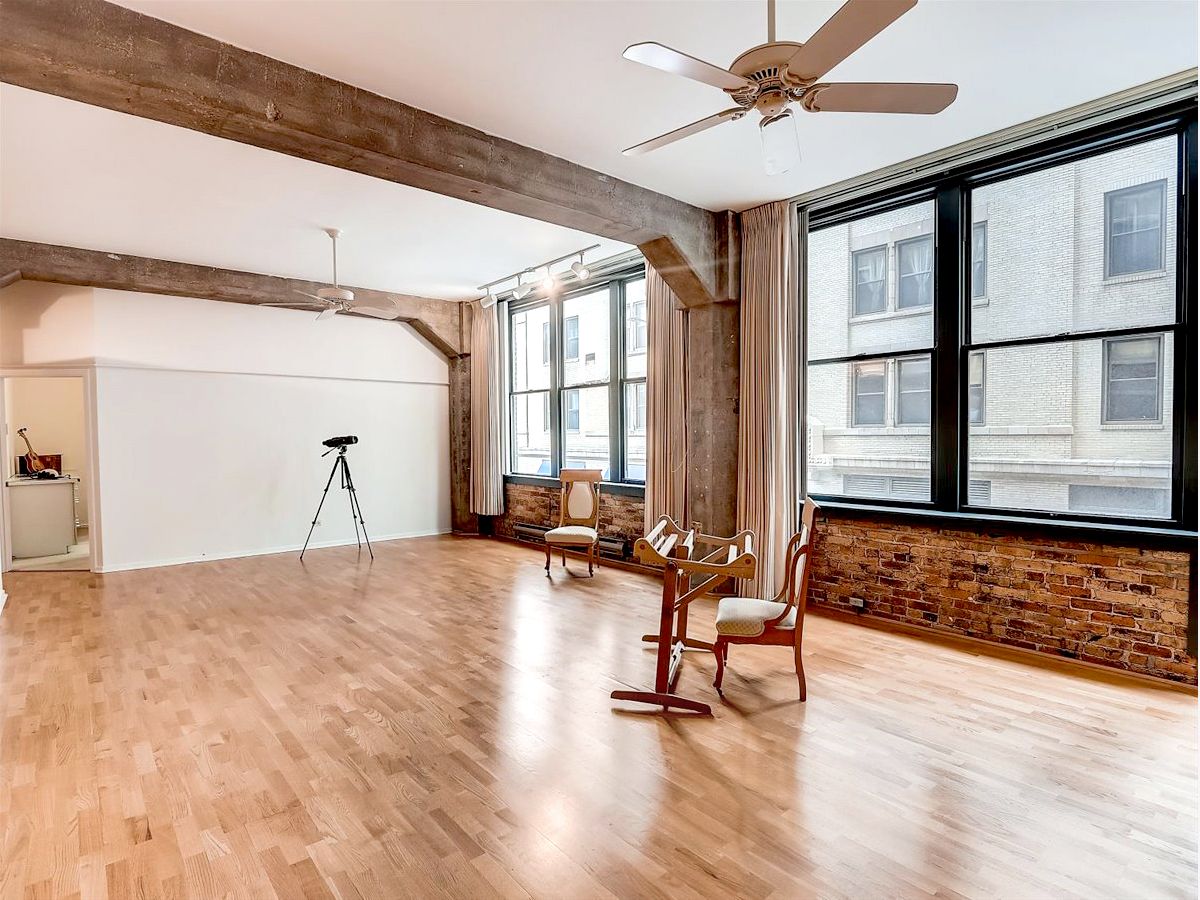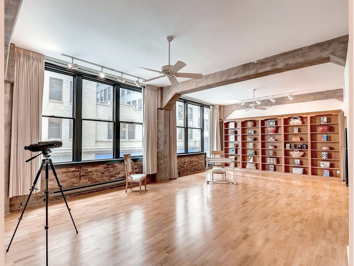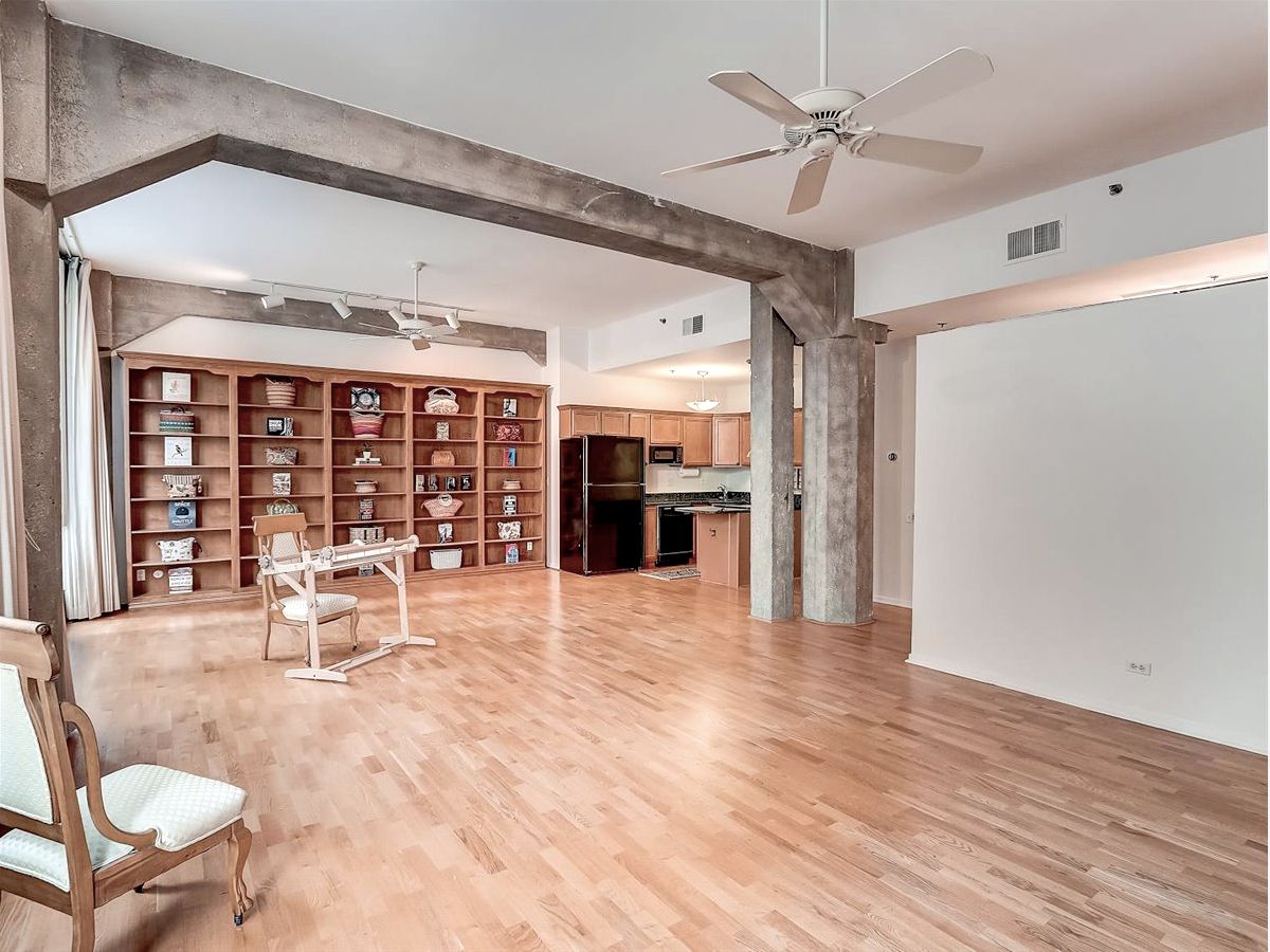 Beautiful finished loft space in the heart of Printer's Row in the historic Franklin Building. 9 tall windows (3 of them in the bedroom) flood the place with afternoon sunshine. Wide open traditional loft space with high ceilings, exposed brick, concrete pillars and beams and genuine oak floors dating from the condo conversion in 1989, so they will still have many years of life in them. A massive built-in open shelved bookcase extends from floor to ceiling on the north wall. The open kitchen is contemporary with wood cabinets, granite countertops and full appliances. Both the half bath and the full bath have been updated and ceramic tiled. The full bath has a glass enclosed shower with a tiled seat and a double undermounted sink vanity with granite countertop. The toilet is in a separate compartment which also includes the front loading laundry machines and storage shelving. Between the kitchen and the full bath is a hallway lined with closets on both sides. One of the double closets has extensive closet built-in cabinetry with drawers, open shelves and hanging rods. There is a large walk-in closet with one wall lined with built-in cabinetry with drawers. Opposite the cabinet is the door to a private bedroom with 3 large windows. The possibilities are endless in this airy condominium. Because there are so many windows with frontage on the street, more rooms could be created or reconfigured. There are no structural walls because of the concrete pillars and beams. The walls and ceilings have just been carefully skimcoated and painted and all the trim and doors have been repainted so it is in move-in condition just the way it is. For those who live on this special block of the city, there is no where else they'd rather be. It is in the center of the transportation hub of the metropolis. All of the CTA train lines have stops within 2 blocks of the building. There is a Red Line stop right outside on Polk. It's easy access to all of the highways from Ida B Wells Drive just 2 blocks north including easy access to Lake Shore Dr. Buses stop across the street. The neighborhood is brimming with restaurants, bars & shops. It's an easy walk or roll to Grant Park, Buckingham Fountain, Millennium Park, the museums, theaters, universities, and all of the shopping and eating in the Loop. You can head south and be at the University of Chicago and its hospitals in minutes. Walk Score says it's a walker's and public transportation rider's paradise. The vaunted 2-way protected bike path that runs all the way through the Loop and over the river begins outside the front door. Parking garages and a parking lot surround this building. The parking offered would be offsite and leased separately, but you'll rarely have to use a car. There is a bike room in the basement next to the coin laundry which is available to use if you have bulky items. The janitor is competent, and the management company is miraculously accessible. There is a large service elevator that opens to the street for easy move-in and out that recalls its days of hauling heavy loads of paper. This building is carefully run by an attentive board and management. They have so successfully completed the most recent improvements to the building that they were able to LOWER the assessments beginning in 2020. 2023 assessments are 8.38% LESS than last year's. EVERYTHING is included in the assessment except electric. That includes high speed internet and basic cable from RCN. Please note that the virtual tour includes unit 206 which is on the market as a separate listing or can be purchase with this unit 204 for a different price.