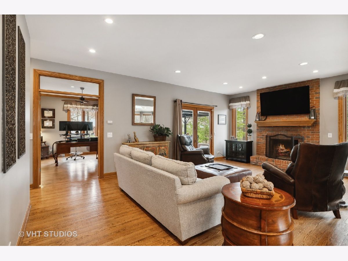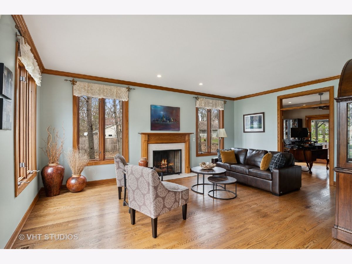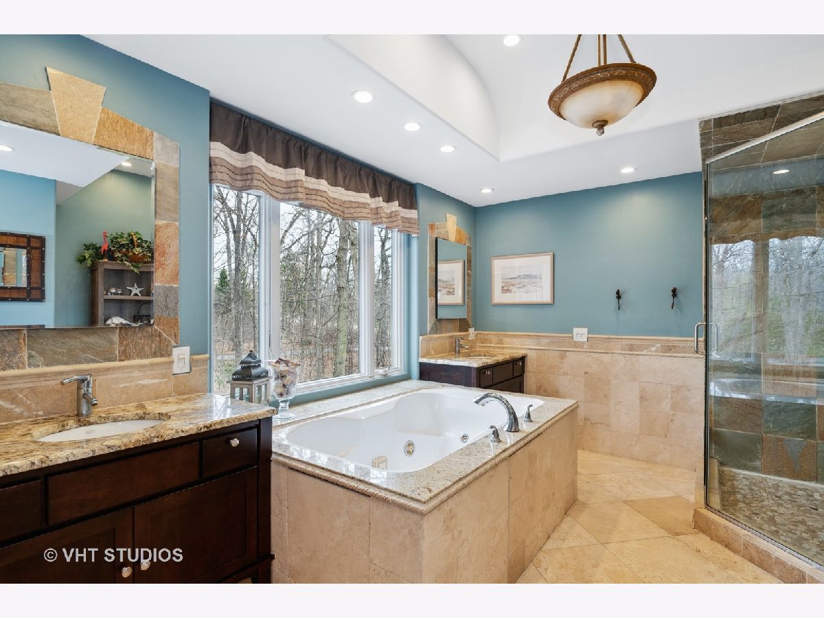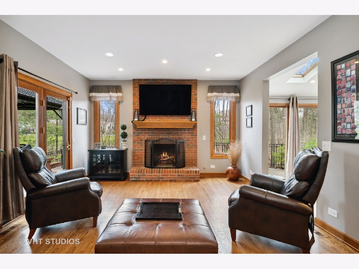 This stunning showcase home is located just 1-mile from beautiful Lake Minear. With 5-Bedrooms and 4-1/2 Bathrooms there is tons of space to meet every need. The grand open floor plan is the hub of this home - starting in the large Kitchen and sunny Breakfast Room to the adjacent Family Room with brick fireplace. The Kitchen has upgraded 42-inch cabinets, granite countertops, a Travertine tile backsplash, and stainless appliances. The main floor has an office with a view, and a flex room (also with a view) that can be a second office or 5th bedroom. The full finished basement has space to entertain even the largest of groups - with a gorgeous wet bar, movie screen and a brick fireplace. There's even a full bathroom in the basement! Soaring ceilings in the Master Bedroom with a fireplace create a serene space to unwind. The Master Bathroom with stone/slate and marble, has his 'n' hers sink vanities, a large whirlpool tub, and a large separate shower. There is an upstairs Laundry Room with a sink, plenty of counter space for folding, and cabinets for storage - very convenient. There are three more large bedrooms upstairs, one with its own ensuite bathroom, AND a nice bonus room as well - this could be your room for gaming, exercise, crafting, another bedroom, or schooling/homework - this house has got every need covered! Expand your everyday living space to the outdoors with a lovely hardscape private patio across the entire back of the house with a built-in fire pit, plus there is charming covered porch providing extra space for gathering or dining. There are two large side yards - one completely fenced, and the other is open space with a little stream running through it. So much of the big stuff has been done for you within the last few years: New Roof & Gutters, In-Ground Sprinkler System installed, Patio Stones Leveled and Re-laid, New Front Walk & Porch Installed, Both Chimneys Tuck Pointed, New Garage Doors, New Well Pump, New Dishwasher, Two New AC Condensers, New Disposal, New Ejector Pit, New Blinds throughout, and more. Close to downtown Libertyville and all it has to offer - dining, shopping, a weekly summer Farmer's Market, concerts in the park, and the library. Easy access to downtown Chicago from the recently renovated Libertyville Metra Station, or a short drive to 94. You can be in this home in time for Libertyville Days June 16th - 19th. Stop by to take a tour and fall in love!