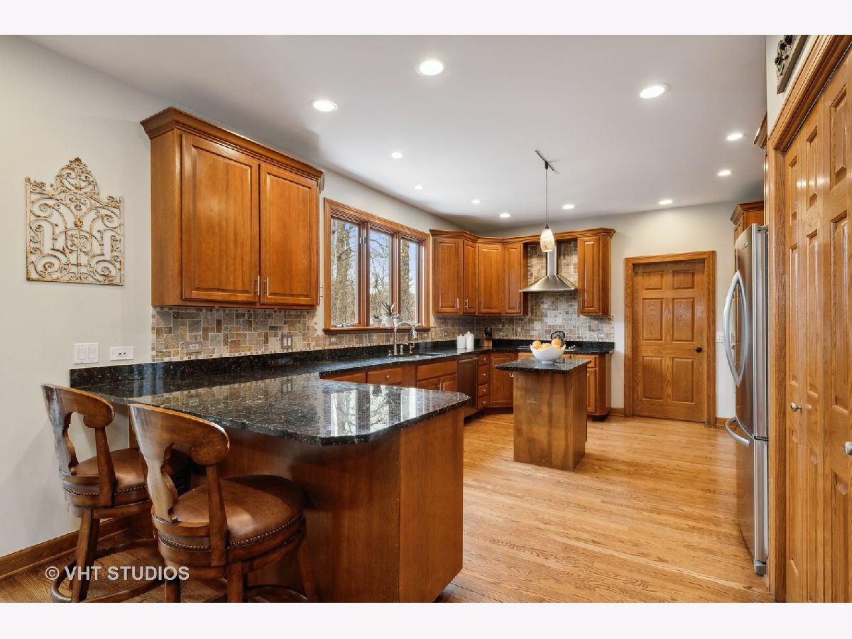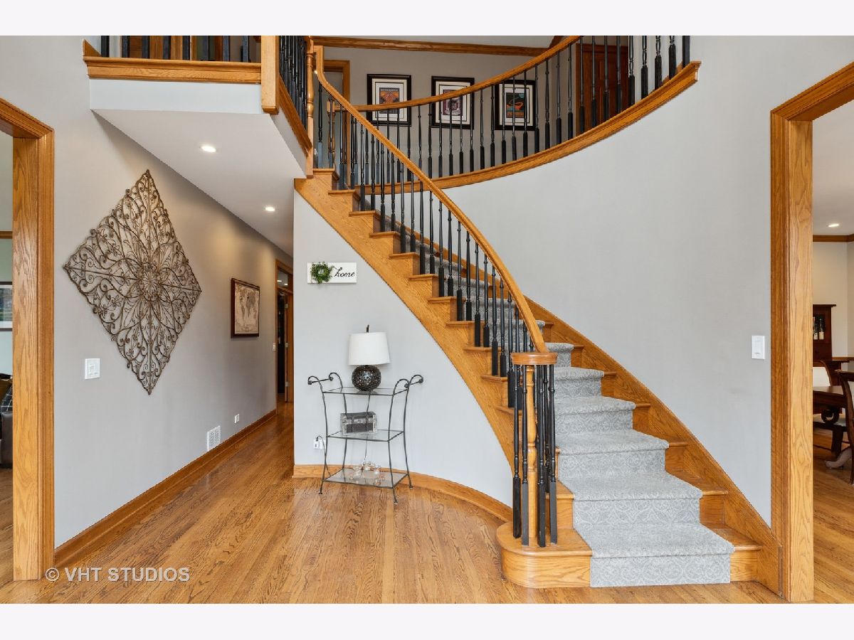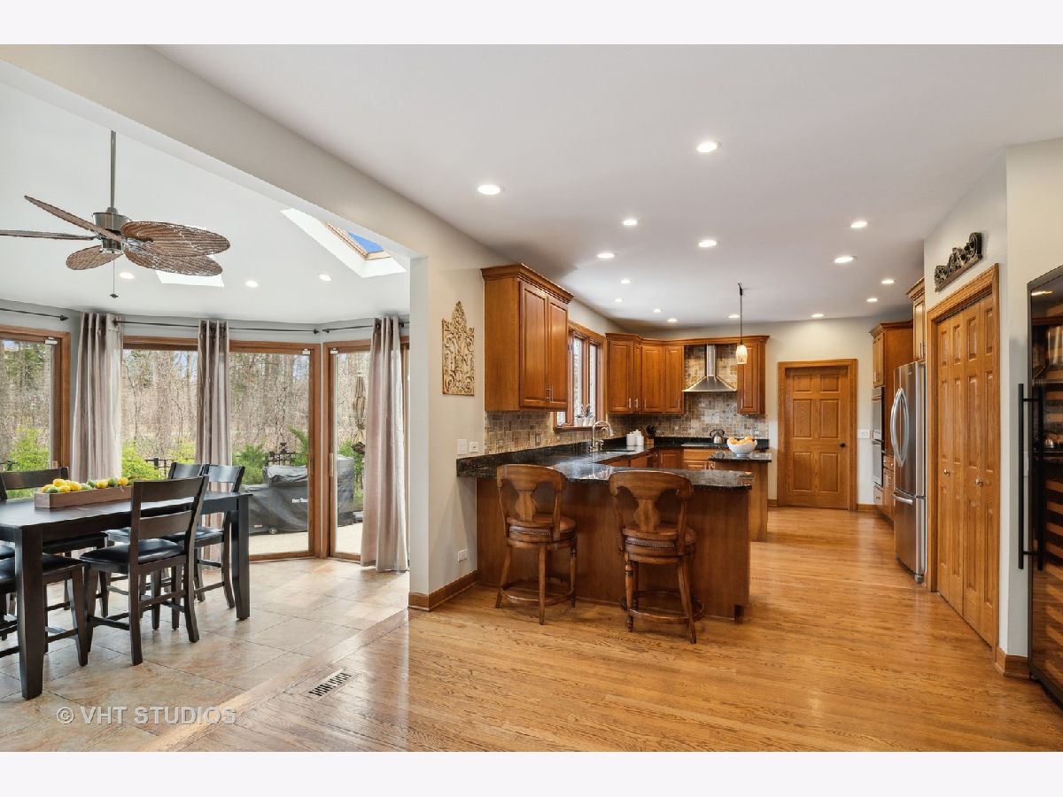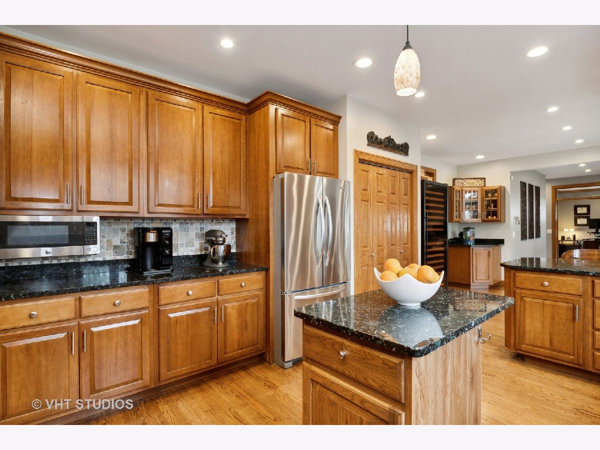 This stunning showcase home is located just 1-mile from beautiful Lake Minear. With 5-Bedrooms and 4-1/2 Bathrooms there is tons of space to meet every need. The grand open floor plan is the hub of this home - starting in the large Kitchen and sunny Breakfast Room to the adjacent Family Room with brick fireplace. The Kitchen has upgraded 42-inch cabinets, granite countertops, a Travertine tile backsplash, and stainless appliances. The main floor has an office with a view, and a flex room (also with a view) that can be a second office or 5th bedroom. The full finished basement has space to entertain even the largest of groups - with a gorgeous wet bar, movie screen and a brick fireplace. There's even a full bathroom in the basement! Soaring ceilings in the Master Bedroom with a fireplace create a serene space to unwind. The Master Bathroom with stone/slate and marble, has his 'n' hers sink vanities, a large whirlpool tub, and a large separate shower. There is an upstairs Laundry Room with a sink, plenty of counter space for folding, and cabinets for storage - very convenient. There are three more large bedrooms upstairs, one with its own ensuite bathroom, AND a nice bonus room as well - this could be your room for gaming, exercise, crafting, another bedroom, or schooling/homework - this house has got every need covered! Expand your everyday living space to the outdoors with a lovely hardscape private patio across the entire back of the house with a built-in fire pit, plus there is charming covered porch providing extra space for gathering or dining. There are two large side yards - one completely fenced, and the other is open space with a little stream running through it. So much of the big stuff has been done for you within the last few years: New Roof & Gutters, In-Ground Sprinkler System installed, Patio Stones Leveled and Re-laid, New Front Walk & Porch Installed, Both Chimneys Tuck Pointed, New Garage Doors, New Well Pump, New Dishwasher, Two New AC Condensers, New Disposal, New Ejector Pit, New Blinds throughout, and more. Close to downtown Libertyville and all it has to offer - dining, shopping, a weekly summer Farmer's Market, concerts in the park, and the library. Easy access to downtown Chicago from the recently renovated Libertyville Metra Station, or a short drive to 94. You can be in this home in time for Libertyville Days June 16th - 19th. Stop by to take a tour and fall in love!