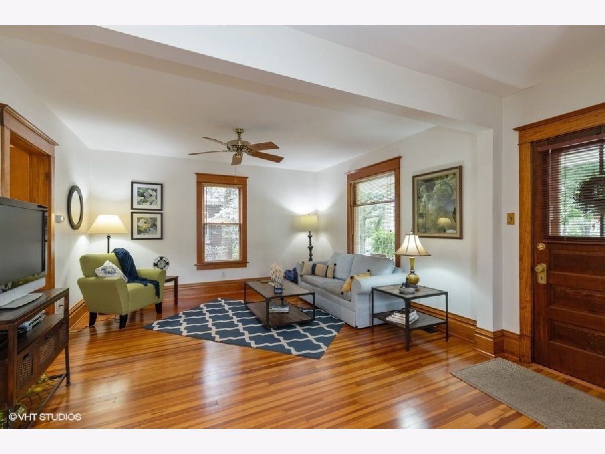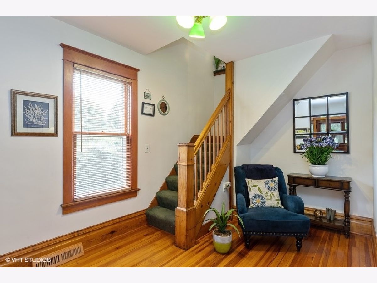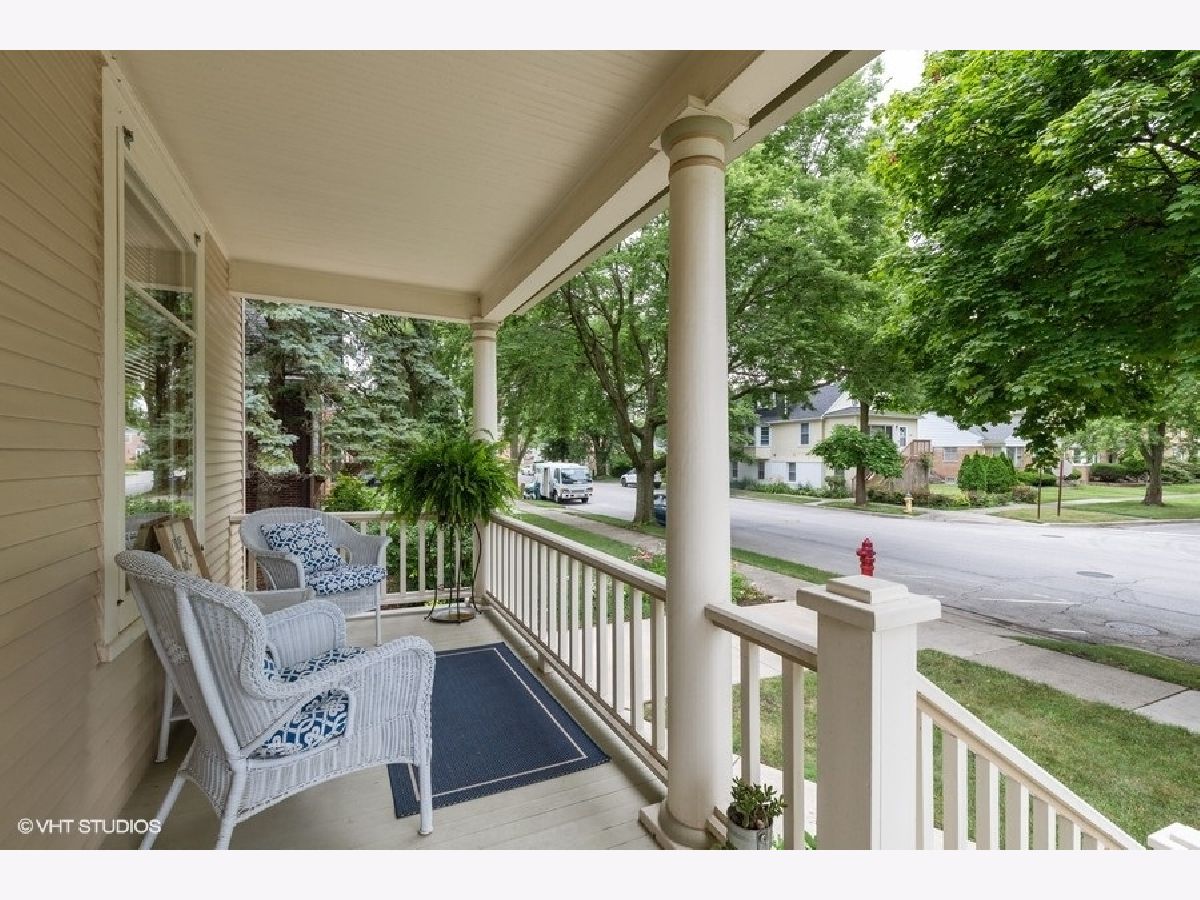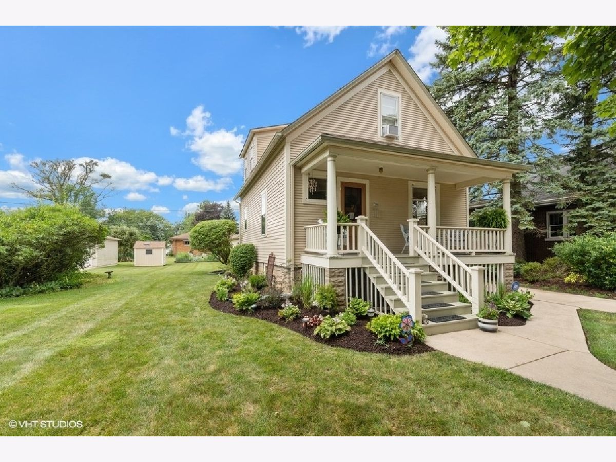 A UNIQUE opportunity to own a beautifully restored and meticulously maintained Farmhouse/Cottage style home with easy access to Metra rail, shopping, restaurants, library, parks and schools! The attractive tri-color exterior paint scheme has just been professionally refreshed. - A TRADITIONAL front porch entry greets you and your guests and is a great place to sit and relax with friends. - INSIDE you'll be impressed with the gleaming wood floors, wide base mouldings and detailed window trim in the living room and entry. The spacious eat-in kitchen boasts lots of counter space and refinished cabinet storage. Table space easily accommodates 4-6 people. A new stainless dishwasher has just been added as well. - ADDITIONAL features include a walk-in pantry and a 13'x5' bonus room (laundry/sitting area) off the kitchen that includes a Maytag washer & dryer. - THE WOOD staircase takes you upstairs to 2 bright bedrooms, each with closets that have additional attic storage space and Hunter ceiling fans in both bedrooms. - OUTSIDE your back door you'll see the patio area , a relaxing place to enjoy the beautifully landscaped side yard/ back yard that includes many perennial flowers and shrubs. - THE LARGE custom garage has separate power overhead doors, floored attic storage with pull-down stair and it has been trimmed to match the house! - NOTABLE additions/features: Maytag washer 2019, Exterior paint refreshed 2019, New dishwasher 2019, Ballard Design exterior stair treads 2019, Storage shed trimmed to match the house and garage.