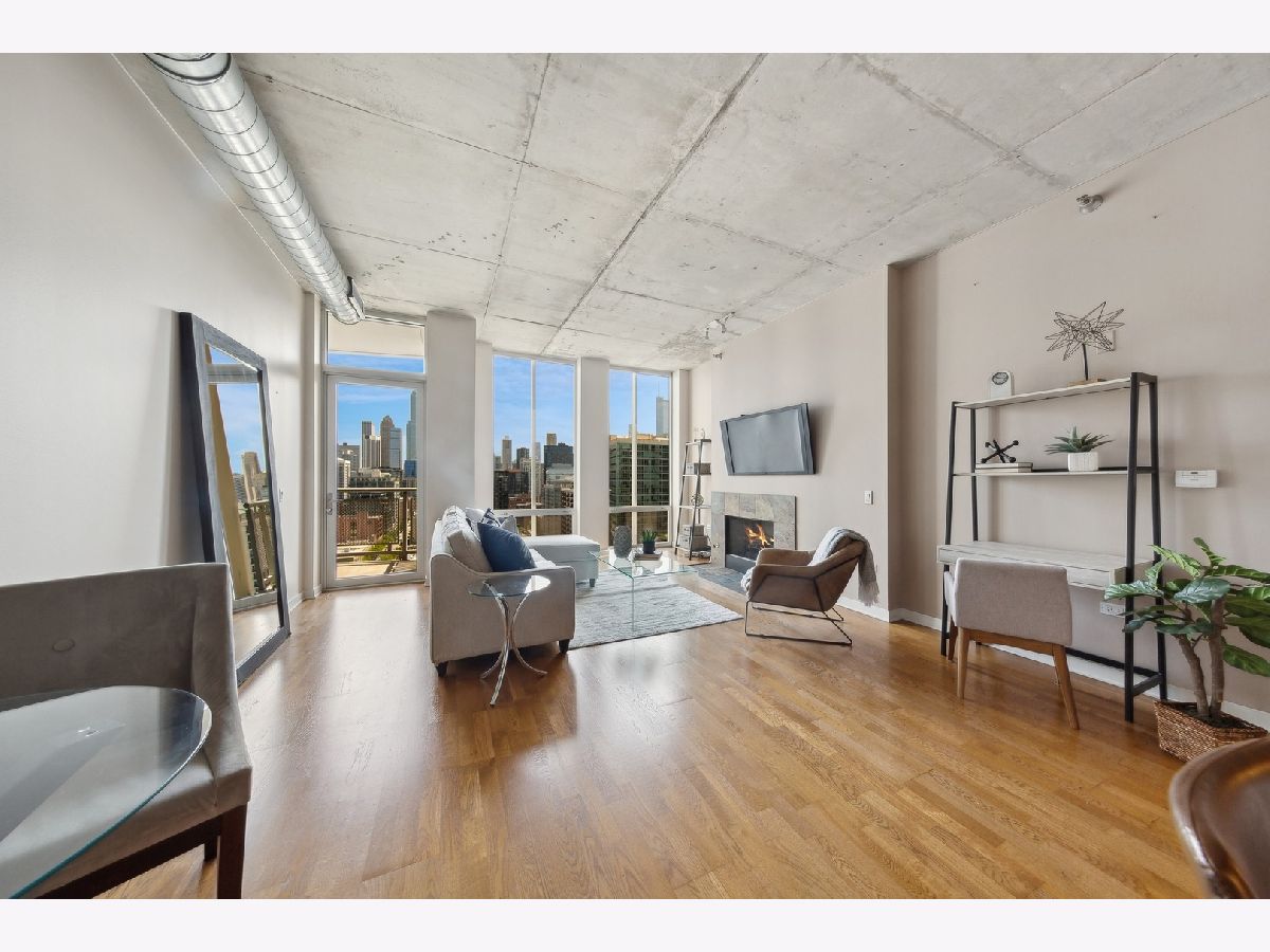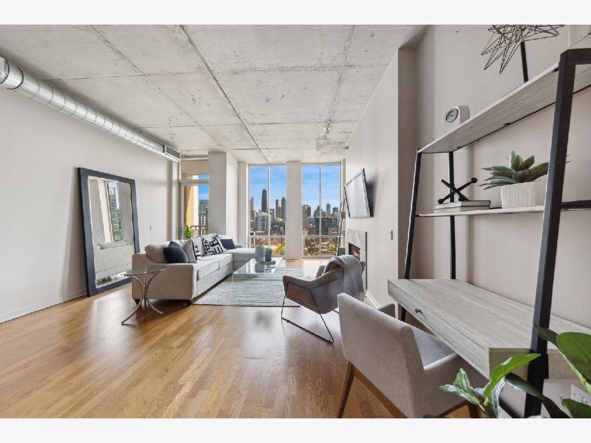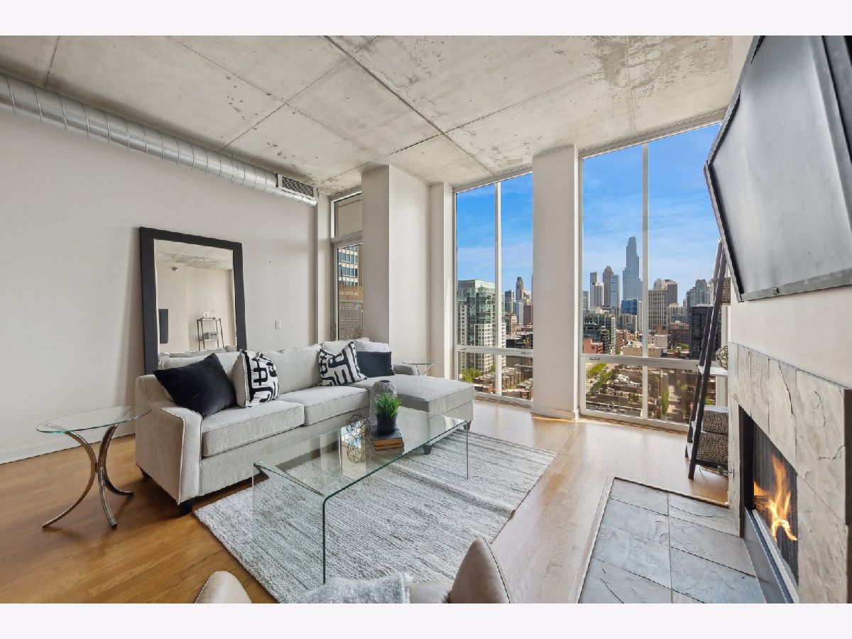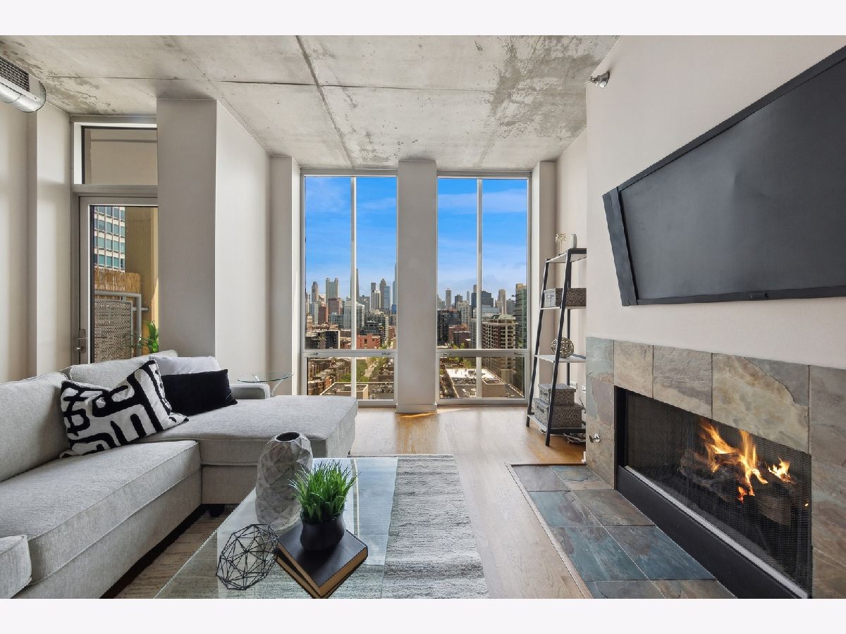 High Floor 1 Bedroom 1 Bath soft loft in highly desirable River North neigborhood with INCREDIBLE unobstructed East-facing city skyline views and a private balcony. Features include an open concept living room/dining room with tremendous space, tons of natural light, 10 ft floor to ceiling windows, gas fireplace, hardwood floors, stainless steel appliances, in unit washer/dryer, & a balcony with room to grill. Sleek kitchen w/ granite countertops, shaker style cabinetry, SS appliances, & large island. Large master bedroom can accommodate a king size bed and two night stands with a full wall of closets. Upgraded bathroom just steps away. Heated garage parking $30k. Monthly assessment includes EVERYTHING except electric. Large storage unit included. Building amenities include newly renovated lobby with 24 hr doorman, fitness room, dry cleaner service, bike room, onsite manager, building engineer/maintenance staff, & electric car charging station. Beautiful courtyard which leads to the River Walk.Prime River North location, enjoy all the best River North has to offer...next to the Chicago Water Taxi stop, Chicago River Walk, two dog parks, the East Bank Club and tons of restaurants...plus enjoy easy access to the El, buses & 90/94/290.