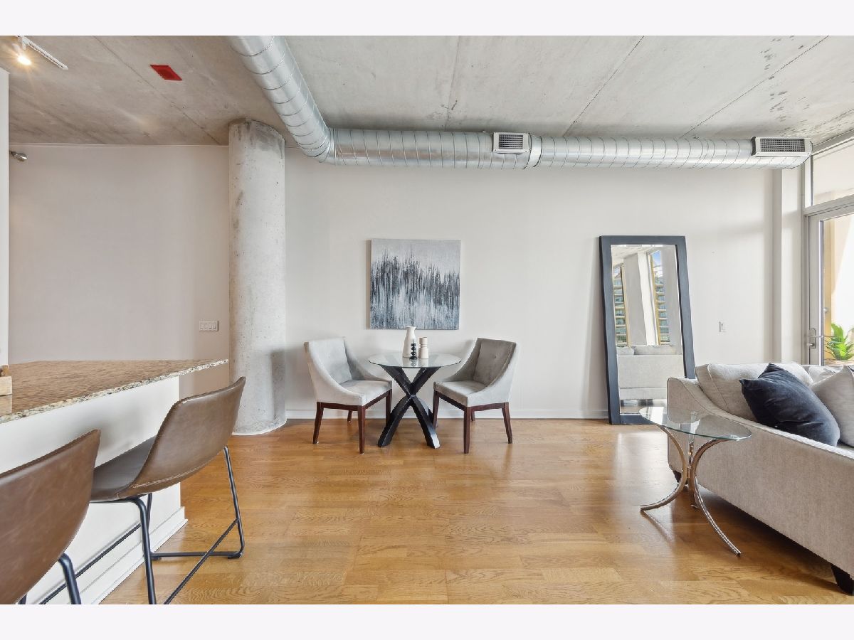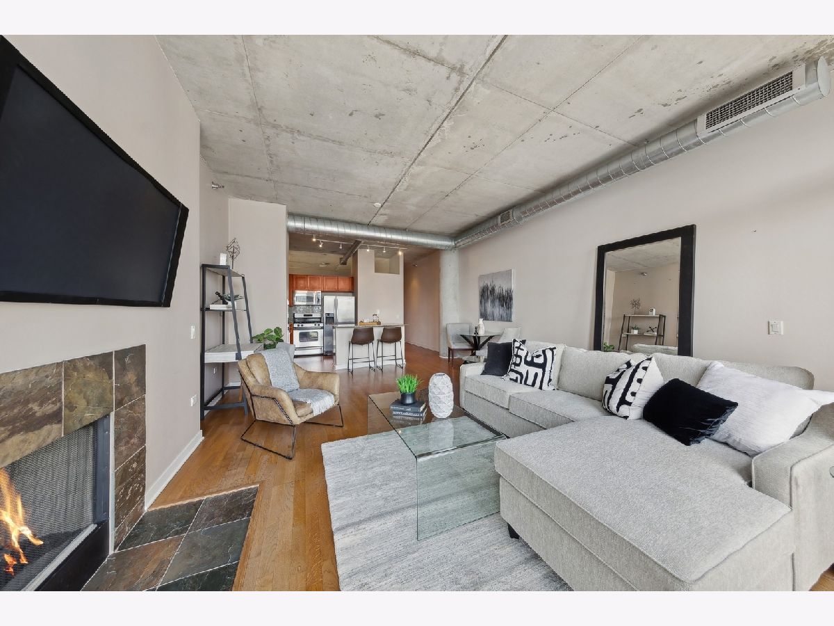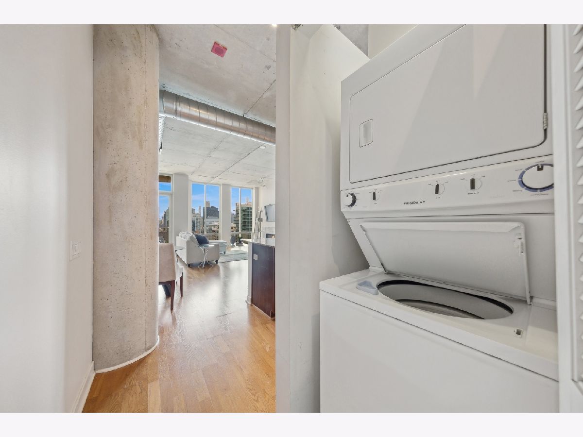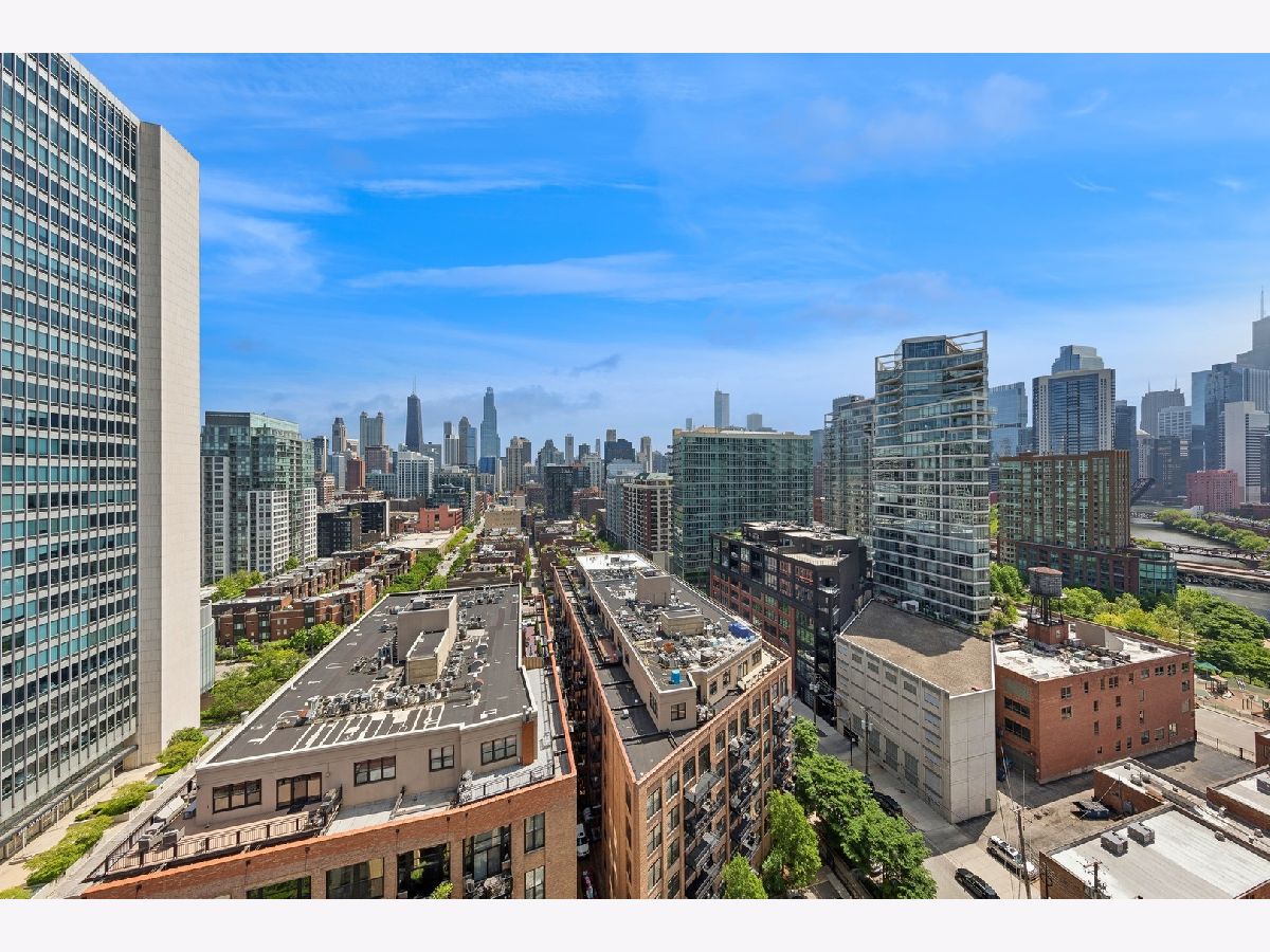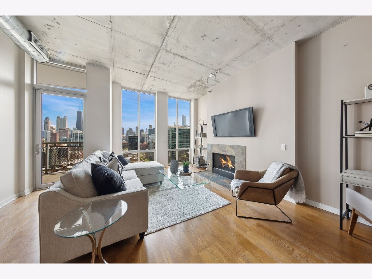 High Floor 1 Bedroom 1 Bath soft loft in highly desirable River North neigborhood with INCREDIBLE unobstructed East-facing city skyline views and a private balcony. Features include an open concept living room/dining room with tremendous space, tons of natural light, 10 ft floor to ceiling windows, gas fireplace, hardwood floors, stainless steel appliances, in unit washer/dryer, & a balcony with room to grill. Sleek kitchen w/ granite countertops, shaker style cabinetry, SS appliances, & large island. Large master bedroom can accommodate a king size bed and two night stands with a full wall of closets. Upgraded bathroom just steps away. Heated garage parking $30k. Monthly assessment includes EVERYTHING except electric. Large storage unit included. Building amenities include newly renovated lobby with 24 hr doorman, fitness room, dry cleaner service, bike room, onsite manager, building engineer/maintenance staff, & electric car charging station. Beautiful courtyard which leads to the River Walk.Prime River North location, enjoy all the best River North has to offer...next to the Chicago Water Taxi stop, Chicago River Walk, two dog parks, the East Bank Club and tons of restaurants...plus enjoy easy access to the El, buses & 90/94/290.