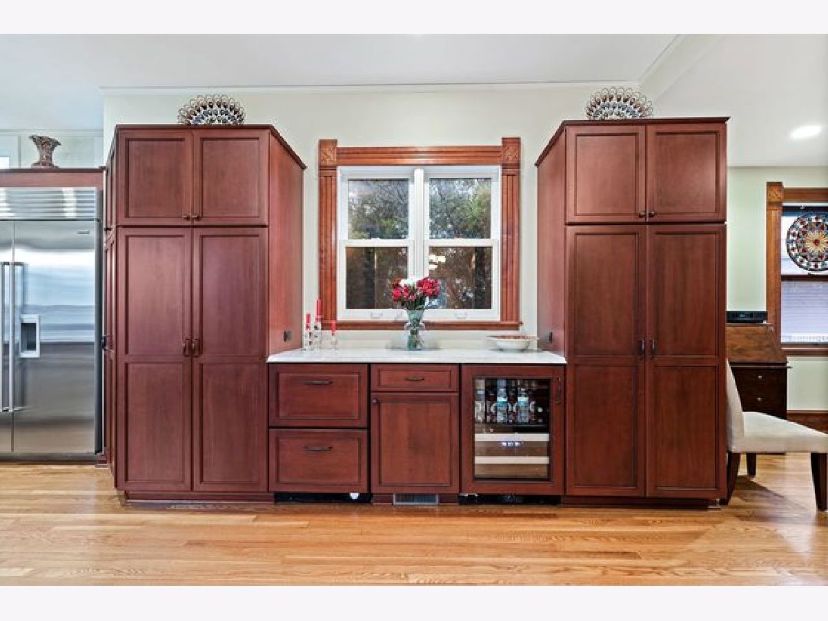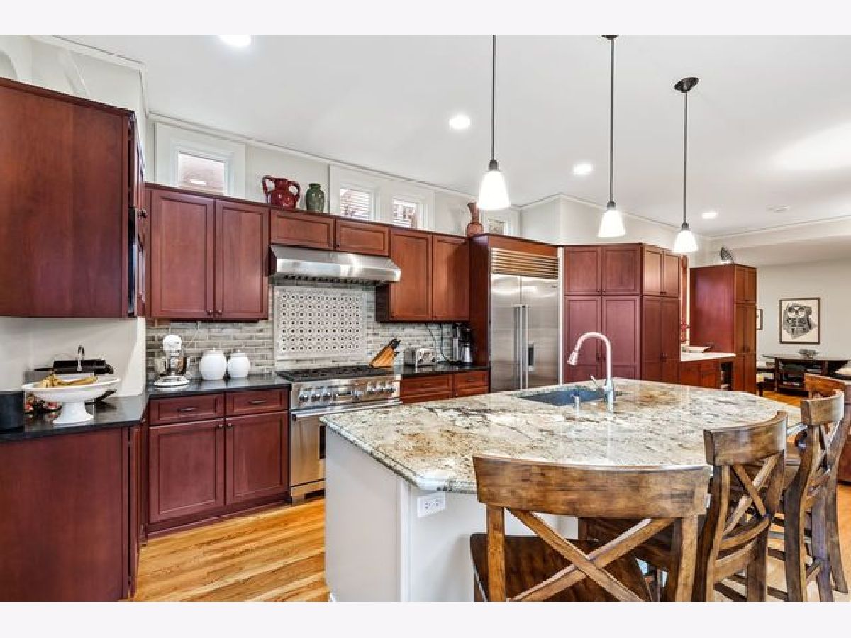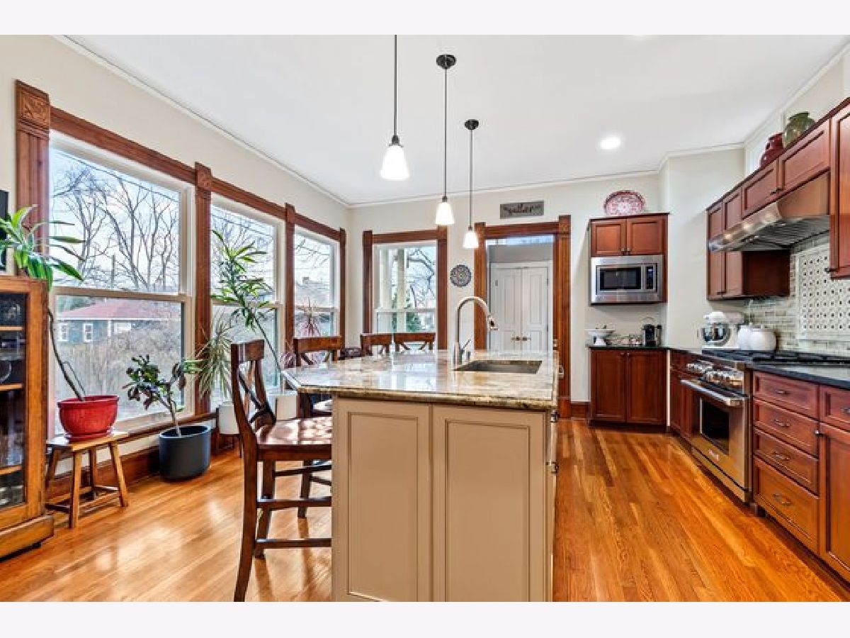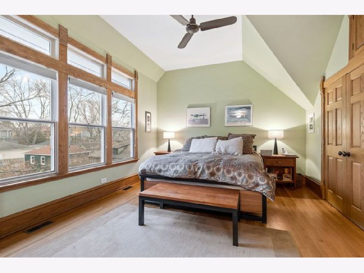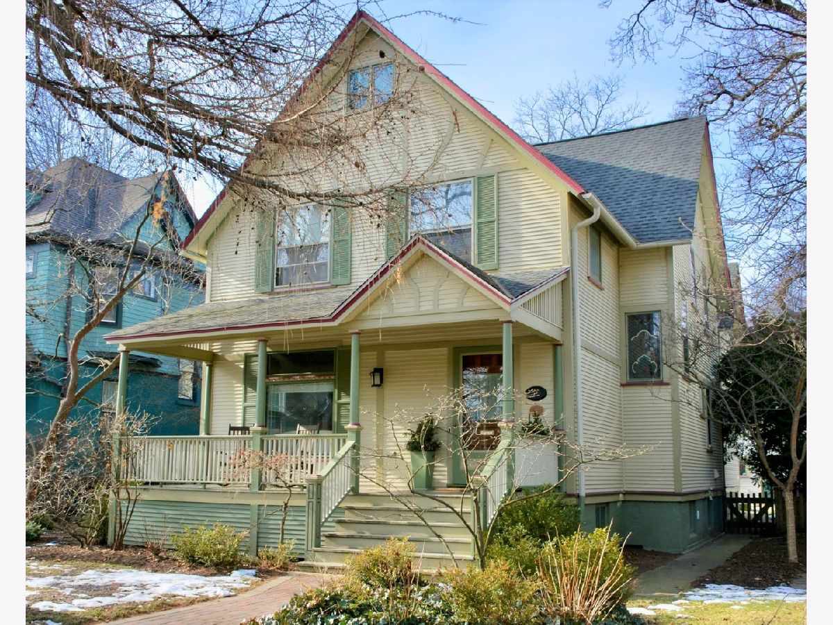Location and charm! From the welcoming front porch, you are greeted with a rich sense of history in this three story, five bedroom storybook Landmark Victorian. Nestled in the Evanston Lakeshore Historic District, the home's notable period details are exquisitely featured in this "Painted Lady". Intricate details shine thru in the craftsmanship of woodwork and the restored bead board ceiling on the porch entryway. Utmost care has been taken to retain the integrity of home and highlight its unique details while offering conveniences sought out by today's buyers. Lovely restored fireplace with original surrounding tiles in the living room (parlor) has been outfitted with a gas starter. Thoughtful high-end remodel of kitchen in 2014 includes wall of southern facing windows, large island with seating at island bar and an expanded eat-in/study area. Abundant built-in cabinetry with six burner Wolf gas range/convection, Subzero refrigerator, Bosch dishwasher and buffet built in serving area with beverage frig and freezer drawer. Rear entry mud room leads to a detached two-car garage & fully fenced in back yard with brick paver patio! First floor offers nearly 10-foot ceiling height with all hardwood flooring and 1st floor family room. Second floor has all hardwood flooring, is where all five bedrooms reside with primary suite having its own full bath with separate shower, jacuzzi tub, skylights, and vaulted ceiling. Relaxing and sunny sitting area in primary suite offers fully organized dual closets and skylights. Beautifully remodeled 2017- second floor hall bath with double sinks. The third floor is convenient flexible space: office/zoom room, family room, or additional en suite bedroom. Zoned heating & A/C, third floor spacepak. Basement is full & unfinished with laundry area, abundant storage & additional expansion possibilities. Ring Doorbell, ADT security outfitted. Generously situated on a 50*172 lot, one is surrounded by like homes with expansive city parkway setback and surrounded by mature city trees. Grab this special opportunity to live in one of Evanston's most sought after neighborhoods! One block to Lake Michigan, numerous city parks and beaches blocks away, four blocks to Metra, "L" and Main street shops!