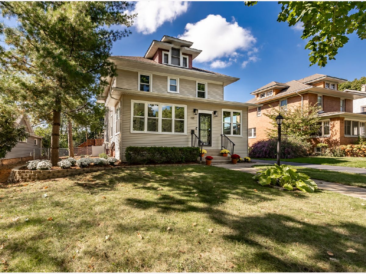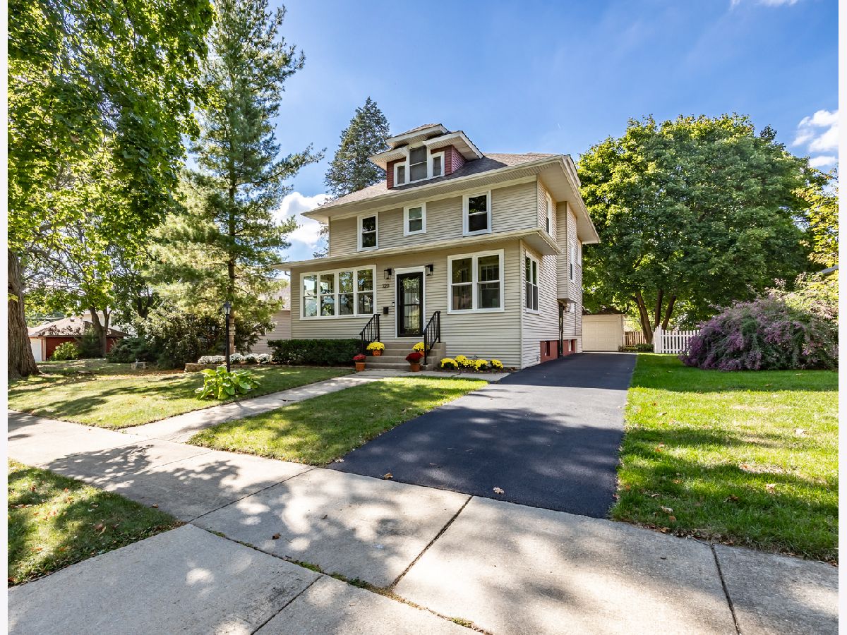 wont go active until 2/2025. This house is in excellent shape, well maintained. So many original old house details, including: Hardwood floors, period millwork, built-in buffet, leaded glass windows, crown moulding, and 9' ceiling height. Enclosed front porch and a second floor sleeping porch. First floor den/office/bedroom. Walkup attic. bigger yard with 400 sq.ft. deck. New sanitary sewerline, with new water line to be installed by City of Elgin