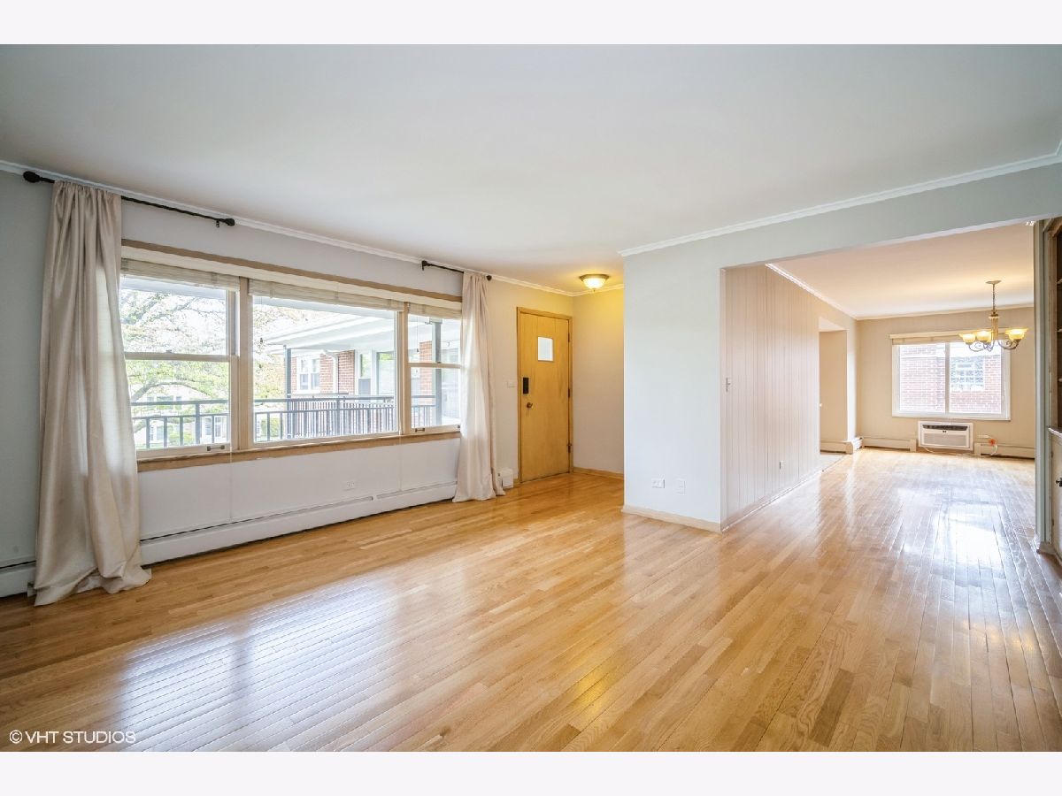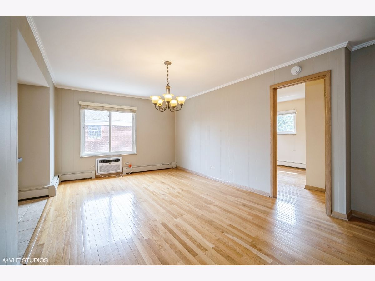 Step into nearly 1,100 sq ft of comfortable living space in this beautifully maintained, move-in ready end unit condo. Enjoy the generously sized living and dining rooms, both featuring gleaming hardwood floors throughout. The spacious kitchen offers excellent counter space, a breakfast bar, new stainless steel refrigerator, electric cooktop and oven, and a convenient pantry-perfect for home chefs and entertainers alike. This unit features two large bedrooms, each with beautiful hardwood floors and offering ample closet space, plus the added convenience of 1.1 bathrooms. Recent upgrades include a newer electric panel and two newer A/C units, and the entire condo has just been freshly painted. Located in a solid, all-brick building with a newer roof and updated common area railings, this condo offers excellent shared amenities including: Free laundry and a huge common storage room in addition to your large private storage closet and deeded covered parking space. Monthly assessments cover heat, water, gas, exterior maintenance, lawn care, scavenger, and snow removal-with only electric paid by the owner. Pet-friendly and investor-friendly, this condo is ideal for both homeowners and landlords. Enjoy an unbeatable location-just a short walk to the Metra station and close to all that Uptown Park Ridge has to offer, including restaurants, shopping, a theater, library, and more!