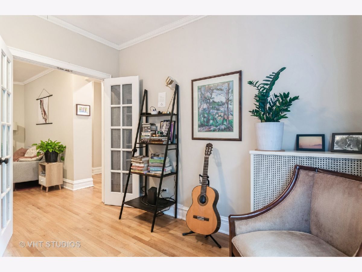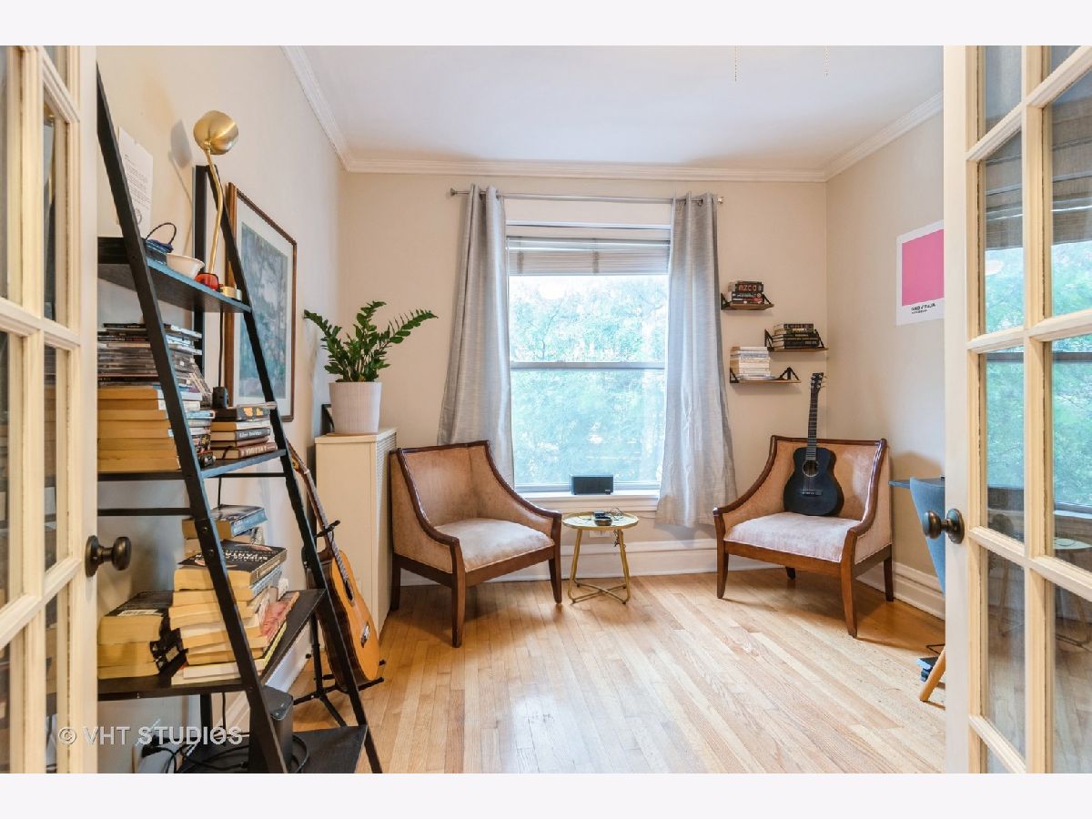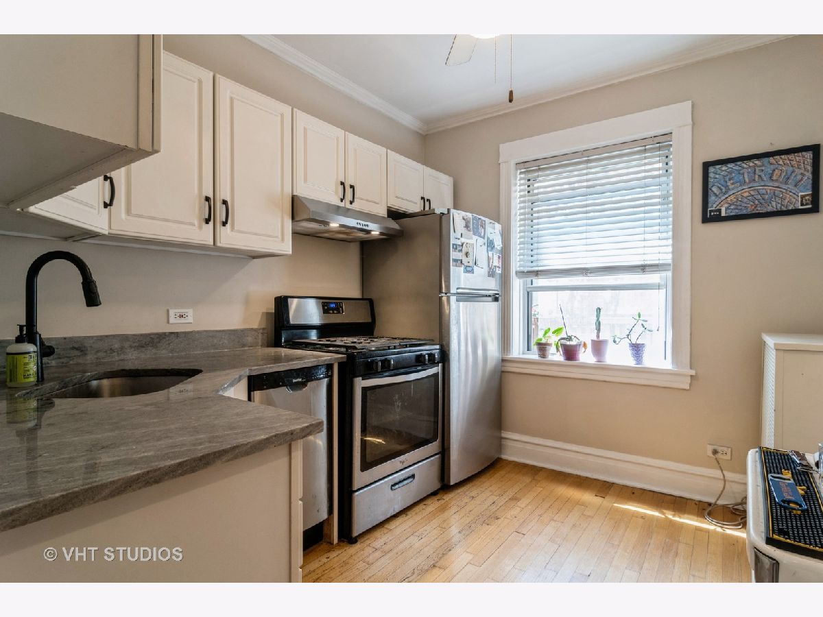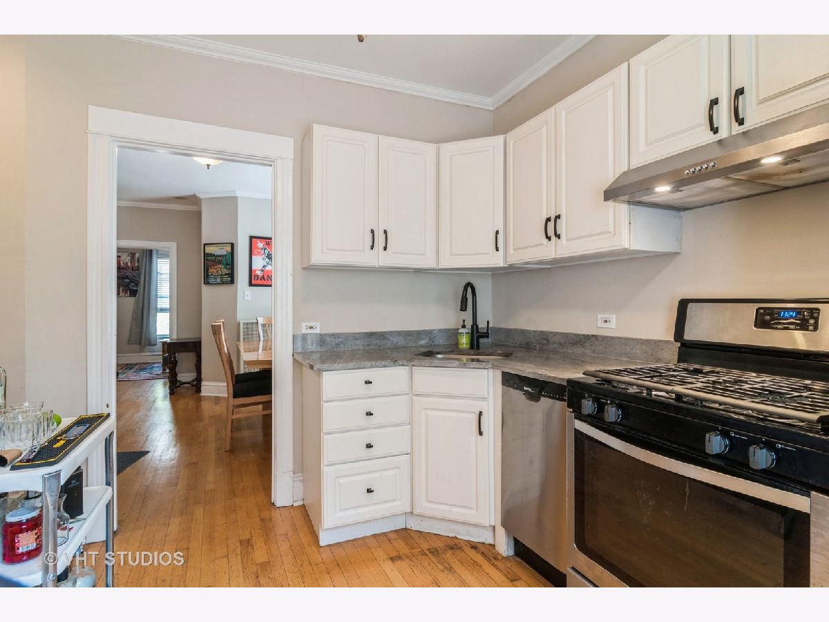 LIVE IN THE HEART OF LINCOLN PARK! Just steps from Oz Park, this charming 2-bedroom condo in an intimate building offers an unbeatable Lincoln Park location. The unit blends classic vintage features with modern updates. Unit features hardwood floors, oversized windows, and elegant baseboard and crown molding throughout. The primary bedroom boasts a nice sized closet, with both bedrooms offering views of the tree-lined Belden Avenue. The main living space flows seamlessly into an updated kitchen, complete with white cabinets, stunning quartz countertops, a newer sink, and newer stainless steel appliances, plus a separate built-in pantry area. The bathroom has been tastefully updated with porcelain flooring and a white vanity topped with marble. Enjoy outdoor living with a deck off the back and a common brick patio in a gated courtyard. The building offers free laundry, with the option to install an in-unit washer and dryer. Please note, no dogs are allowed. Easy street parking and garage rental options are available in the neighborhood. This unit is a must-see!