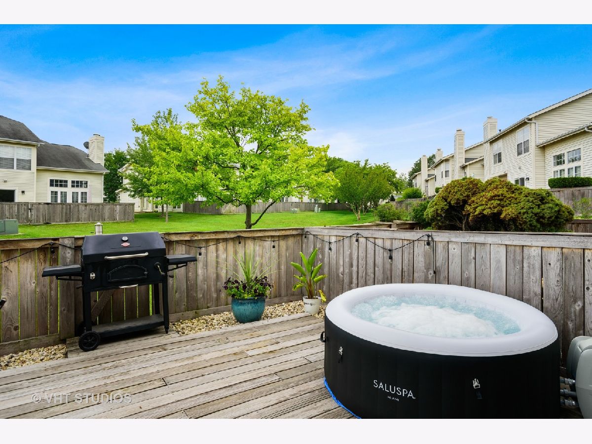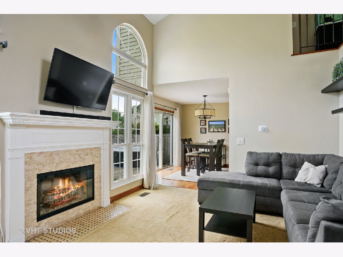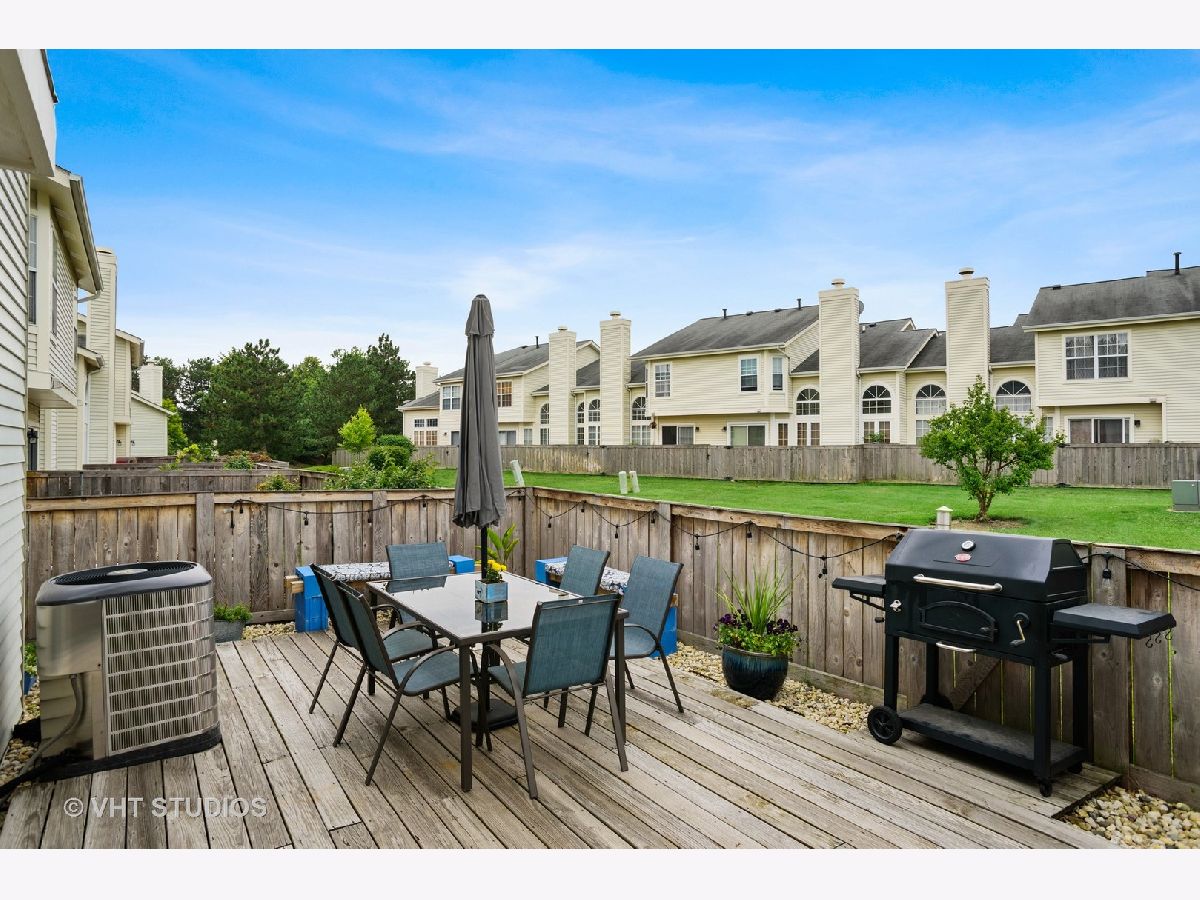 Do NOT miss this light-filled 2 bed, 1.5 bath 2 story Schaumburg townhouse with soaring, double height ceilings, oversized windows, an updated kitchen and baths, and a back deck/patio that rivals most people's backyards. Set back from the street for maximum privacy, the entrance to 721 Sturnbridge is both impressive and cozy. Admire the lovely new landscaping put in by the current owners as you travel up to the large double front doors. Upon entry, you'll immediately notice the towering 2 story ceilings in the foyer and living room. Tucked off to the right is an an entry closet and a newly updated powder room. Straight ahead, the massive ceilings and windows in the living room will take your breath away as you look out over your back deck and patio with a professionally landscaped common yard for your use and enjoyment just beyond your back fence. Walk your pets, soak up the sun, or open your back gate and let your gatherings flow out from your deck into this rich, lush, association-maintained green space. In your living room, you'll notice a lovely fireplace to enjoy in the upcoming colder months. A full dining room, updated kitchen with white cabinets and dark counters, AND a dedicated laundry room with a side by side washer/dryer complete this level. Upstairs is the primary bedroom with double closets, high ceilings, a window overlooking the beautiful common yard greenery, and an oversized bath with access from the primary suite. The guest bedroom is large enough for a queen bed and the extra furniture we all need to cultivate a home office in these times. Newer furnace/ac and windows. An insulated garage door with gas heat in your TWO car attached garage is just one of the many bonuses of this lovely townhome. Common area amenities include the HUGE green space between the townhome rows, the clubhouse, and an in-ground pool with all new furniture. Moments from the famed Streets of Woodfield with hundreds of restaurants and shops and this area's desired schools, this home is a winner on all fronts.
