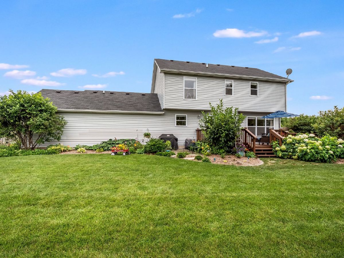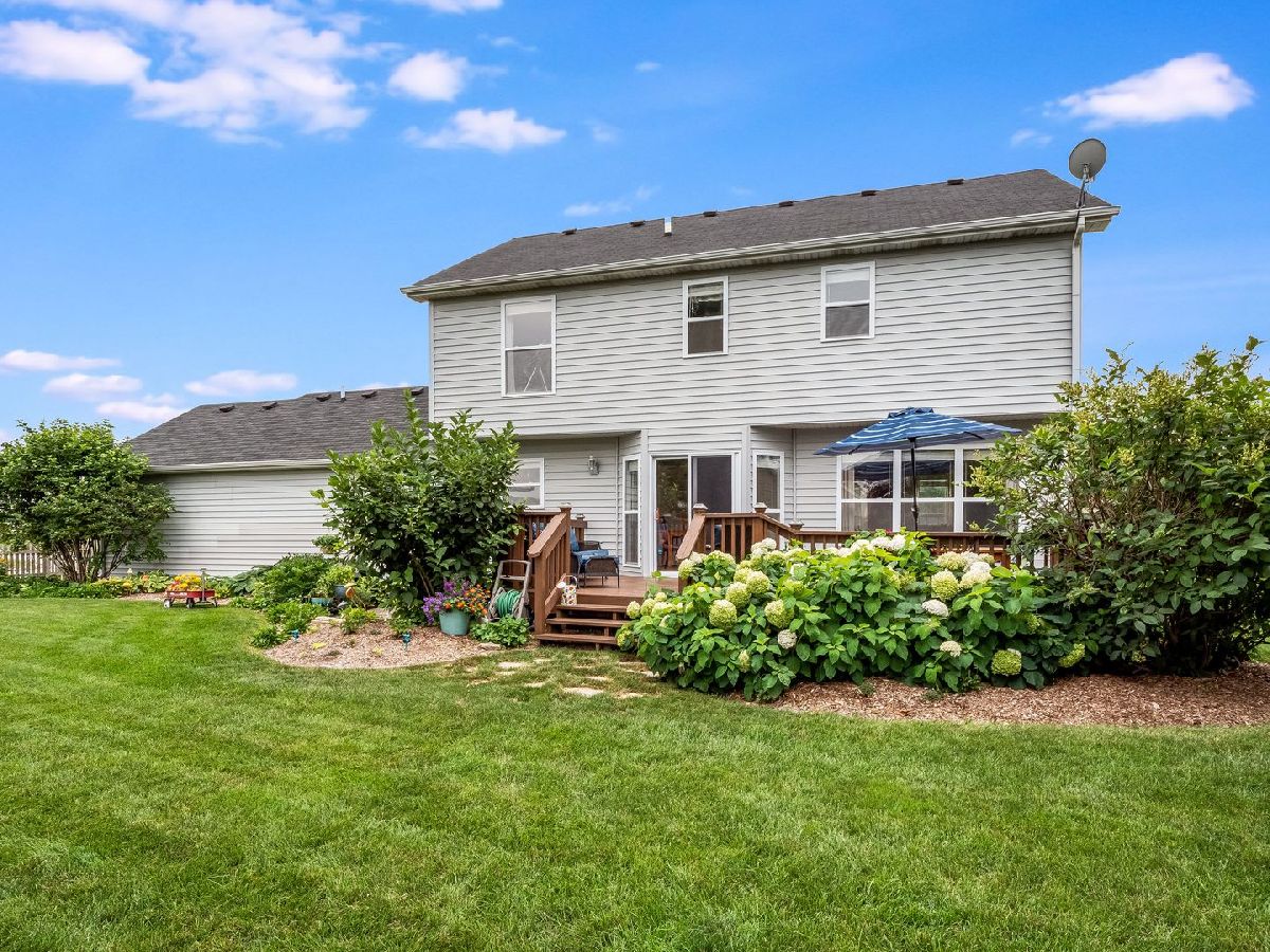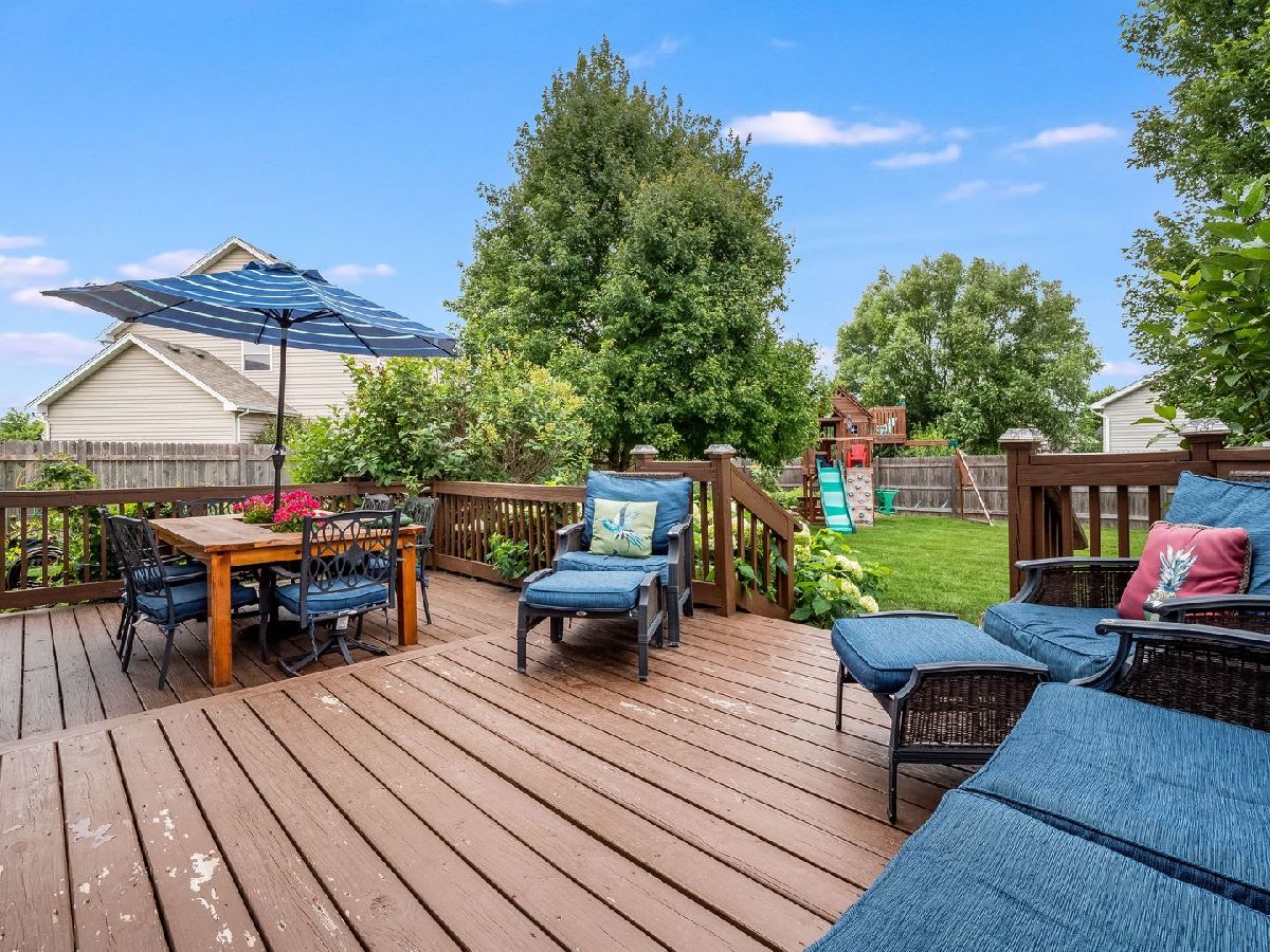 This 3 bedroom BEAUTY is located at the front of the popular subdivision, "The Knolls", and is very near the walking path. Perfect for a growing family. Nice fully fenced-in backyard with beautiful perennial's that make the view very calming from the great deck! Some hardwood flooring, large kitchen with stainless steel appliances, the dining room is currently used as a play room. There is a 1/2 bath on 1st floor with 2 full baths and laundry on the 2nd level, washer and dryer stay. (Hook up is gas or electric). The basement is partially finished with a good size family room, plenty of storage. There is a sump pump back up and radon mitigation system. The 3 car garage is a plus, (the refrigerator in garage does not stay ). Sellers would love a September 10th closing if that works out for the lucky buyer.
