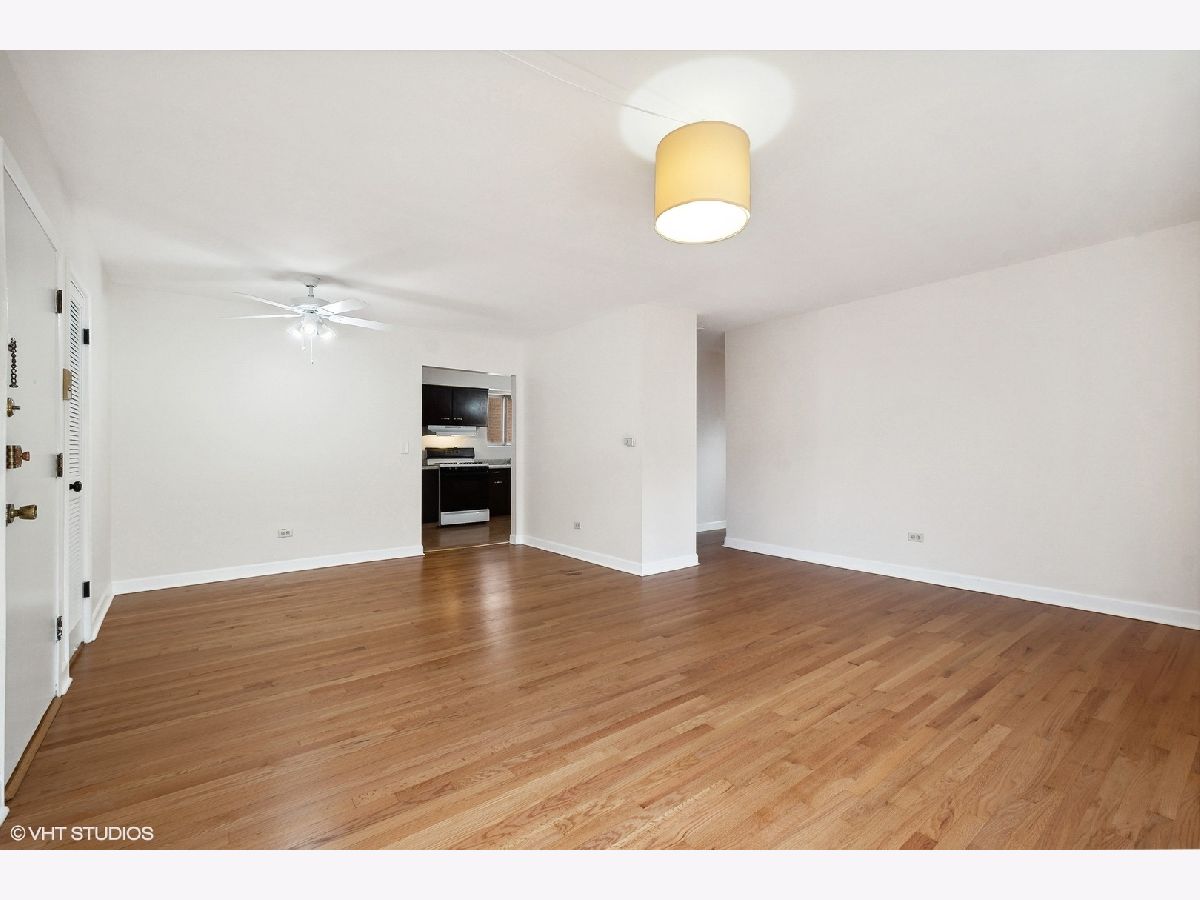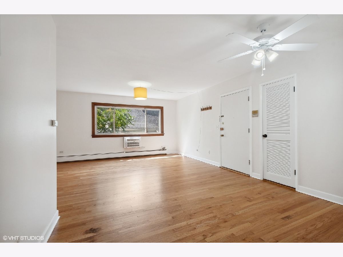 Best deal in Rogers Park! Many updates now complete in this bright, open 2 bed, 1 bath condo. They include: refinished oak hardwood floors, fresh paint throughout, resurfaced kitchen cabinets, new counter top, backsplash, microwave and range hood that vents out. New ceiling fan, living room AC unit and window screens. Tub has been glazed in white. Ample closet space and primary bedroom has walk in closet. Baseboard heat. Parking spot included in price! Coin laundry and large storage closet in basement. Don't miss this one! 3 exposures provide amazing light. Investors welcome! Low Taxes.