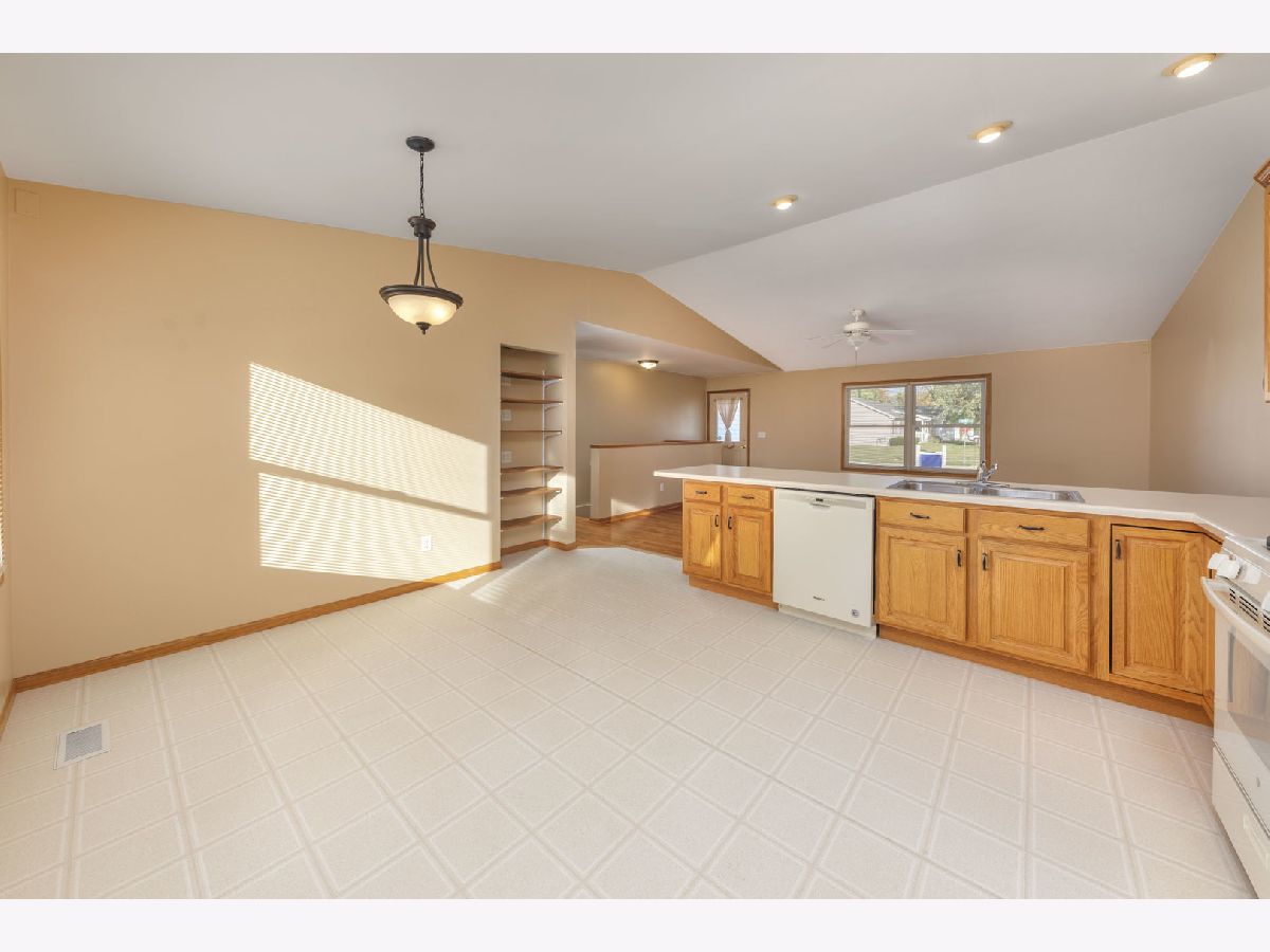 Discover exceptional curb appeal in this charming 3-bedroom, 2-bathroom ranch home, complete with a partially finished basement! Nestled just blocks from NIU, this residence is an ideal choice for students, faculty, or savvy investors. Step inside to find a spacious open floor plan featuring engineered hardwood floors, vaulted ceilings, and recessed lighting.The stylish kitchen is a chef's delight, boasting a breakfast bar, 42" oak cabinets with crown molding, a modern microwave (9/2021), refrigerator, oven, Whirlpool quiet dishwasher (2021), kitchen faucet 2025, and pantry.The convenient first-floor laundry closet with shelving makes chores effortless. Relax in the generous primary bedroom, complete with a walk-in closet and a private en-suite bathroom with a walk-in shower and new commode 2024.The remaining bedrooms are nicely sized and one features a walk in closet. Hall bath is adjacent to bedroom 2 & 3 with new faucet and commode 2024.The partially finished basement extends your living space with a versatile recreational area and abundant storage options. Step outside to your fenced-in backyard oasis, featuring a cement patio and lush landscaping with blueberry and raspberry bushes. Recent upgrades include a new furnace and A/C (2021).The oversized 2-car garage is a handyman's dream, equipped with a workbench, cabinets, and shelving. Whole house alarm system.This wonderful home offers unmatched convenience to NIU, shopping, I-88, dining and more! Move right in and start enjoying all the comforts and conveniences this home has to offer! Welcome Home!