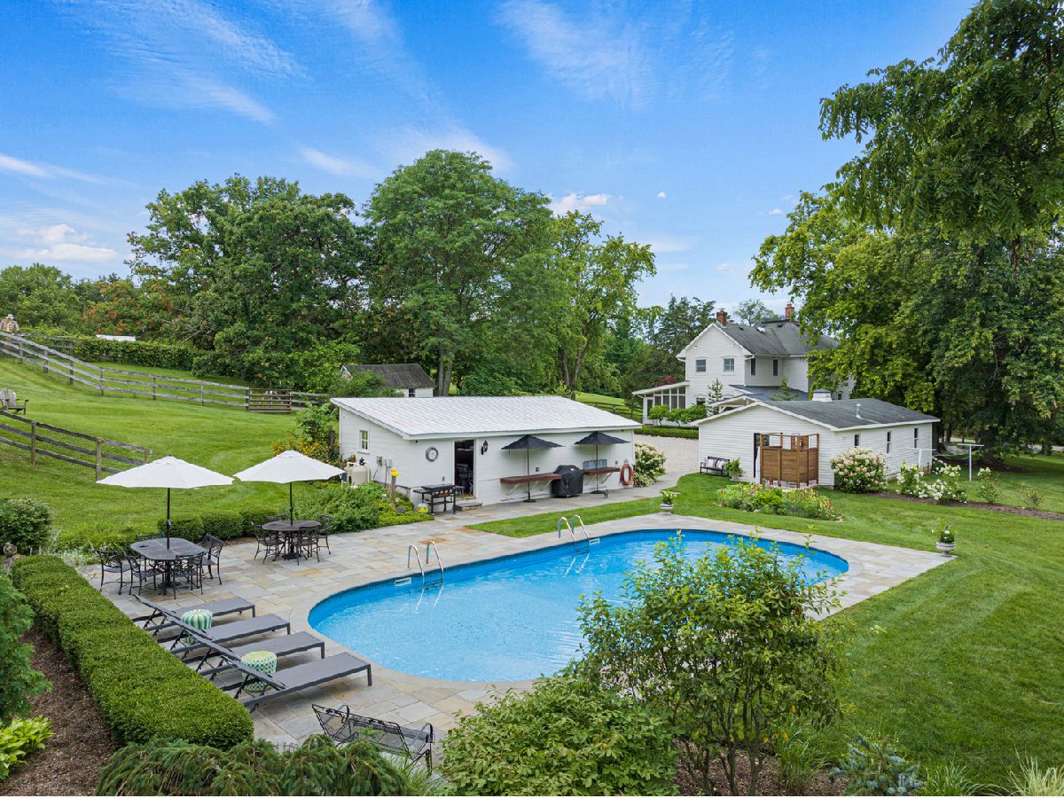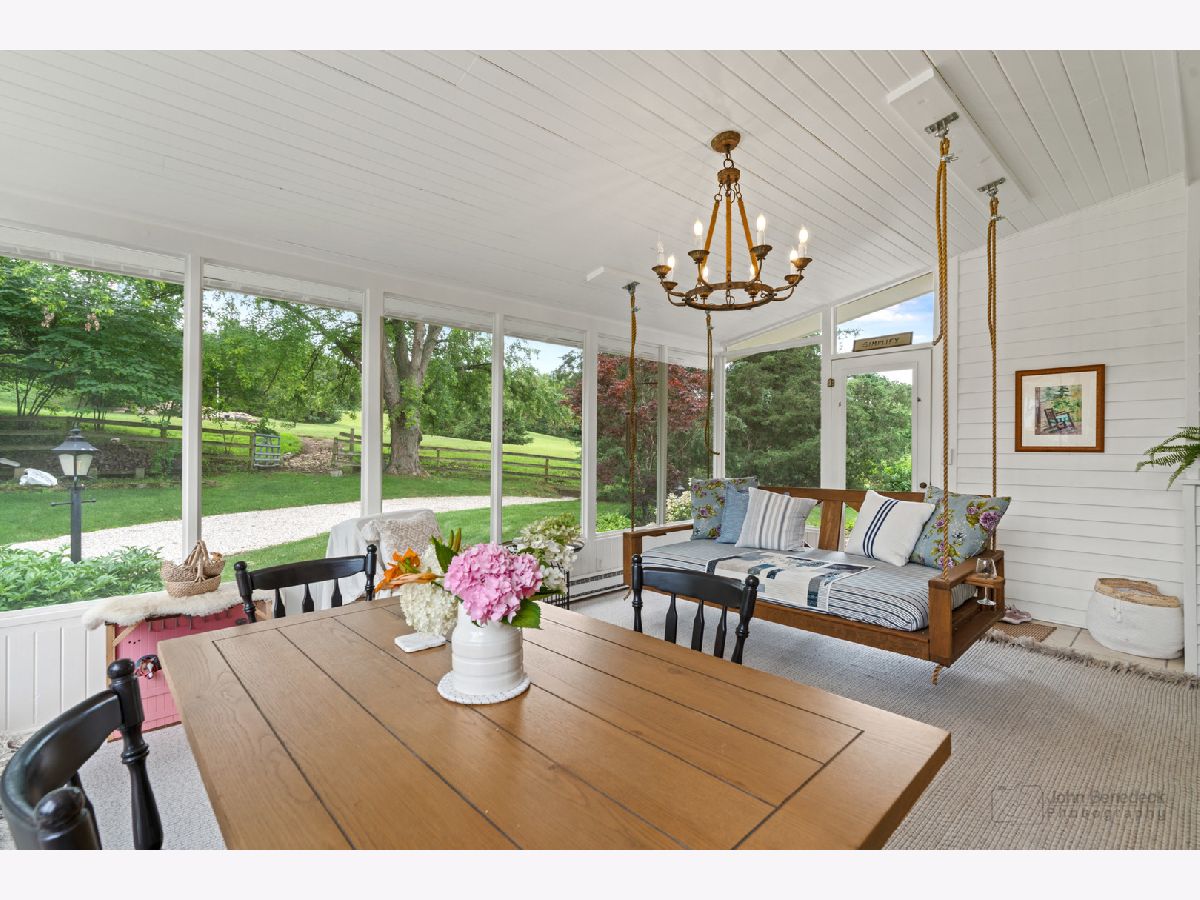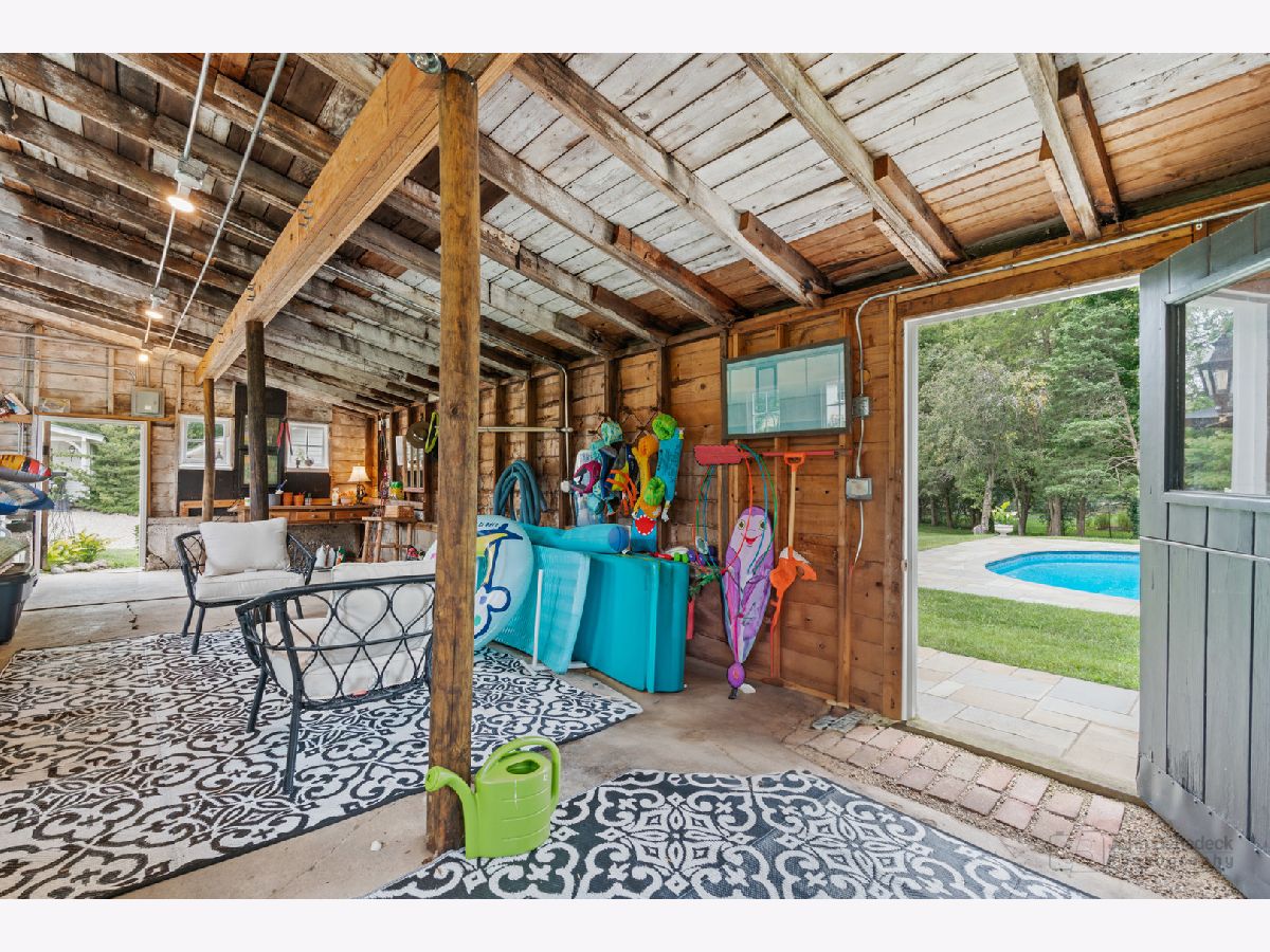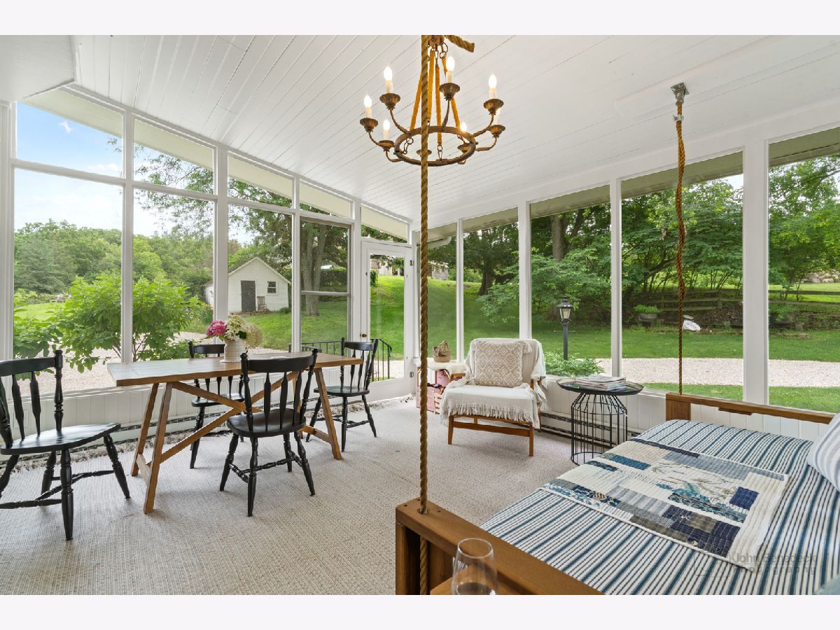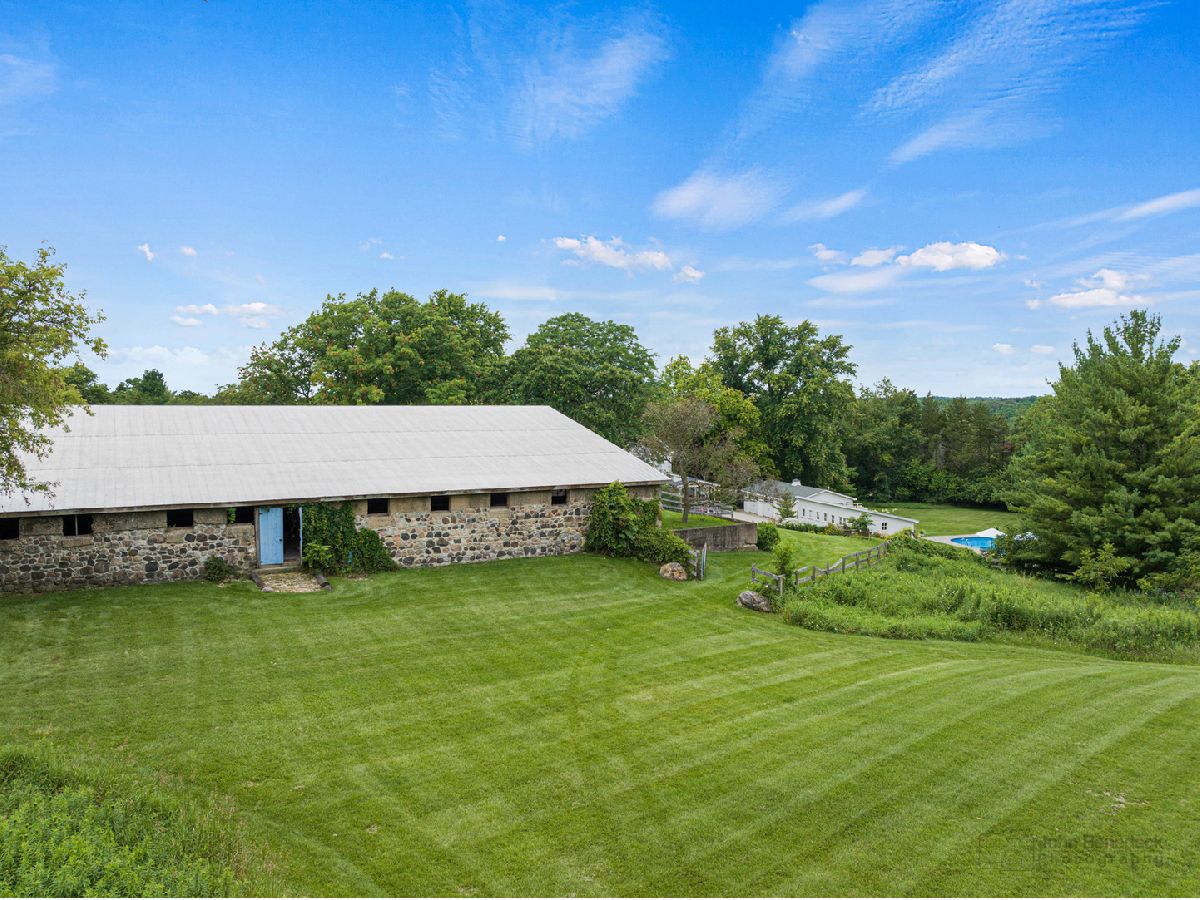 This Iconic Bull Valley Farmhouse is situated on 8 beautiful rolling acres. Enjoy an evening toast to the sunset on "Cocktail Hill" overlooking the well maintained grounds and the 700 acres of conservation land across the street. Ultimate privacy in this home featuring updated large eat-in magazine worthy country kitchen with beamed ceilings, high end stainless steel appliances (Viking-Bosch), plenty of cabinets and counter space. Brand new updated full bath, stunning! Whole house Kohler Generator. The unique 10 stall barn was originally built as a dairy barn from the stones and boulders on the property. It has since has been elevated to a wedding venue and many gatherings with friends and family for campfires and music concerts. Firewood transfers with the property but musical talent does not! Relax on the swing in the screen porch while watching the chickens in the chicken coop, formally the little school house. Full on natural outdoor shower next to the built in salt water swimming pool with new liner 2022, heater 2021. Gleaming woodwork, beams and floors throughout. All mechanicals within the past few years. Down the street is access to horse trails.