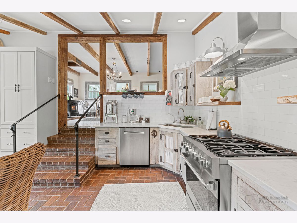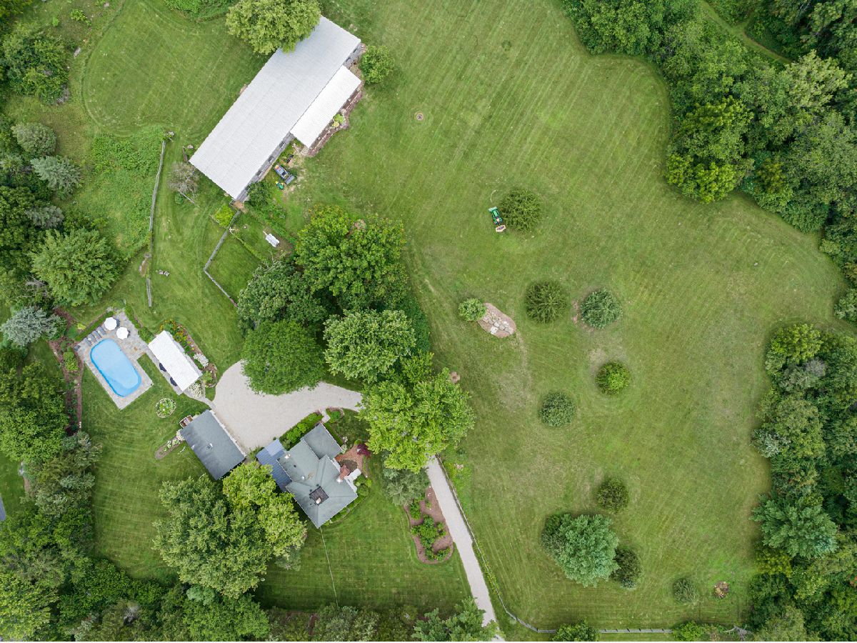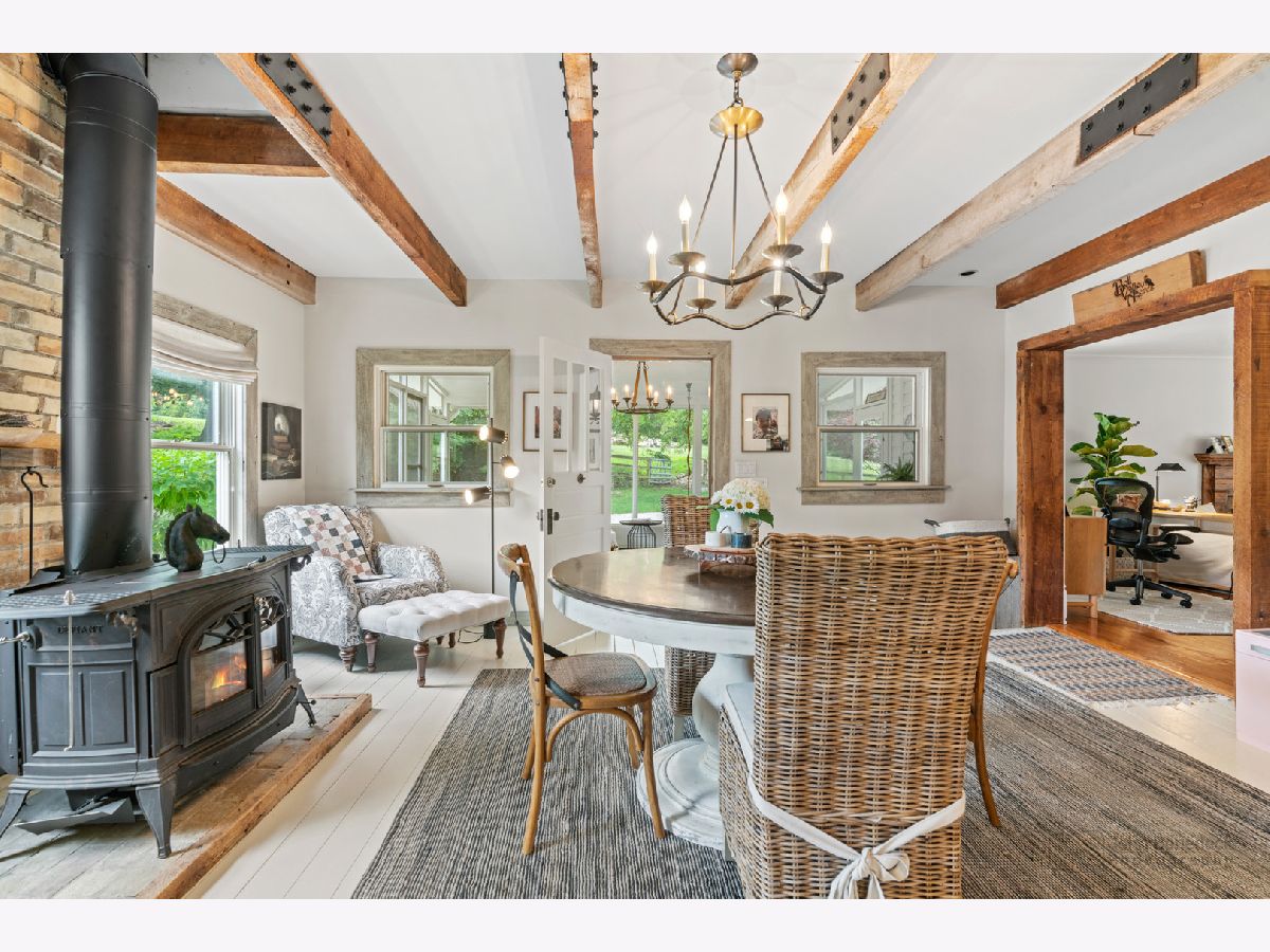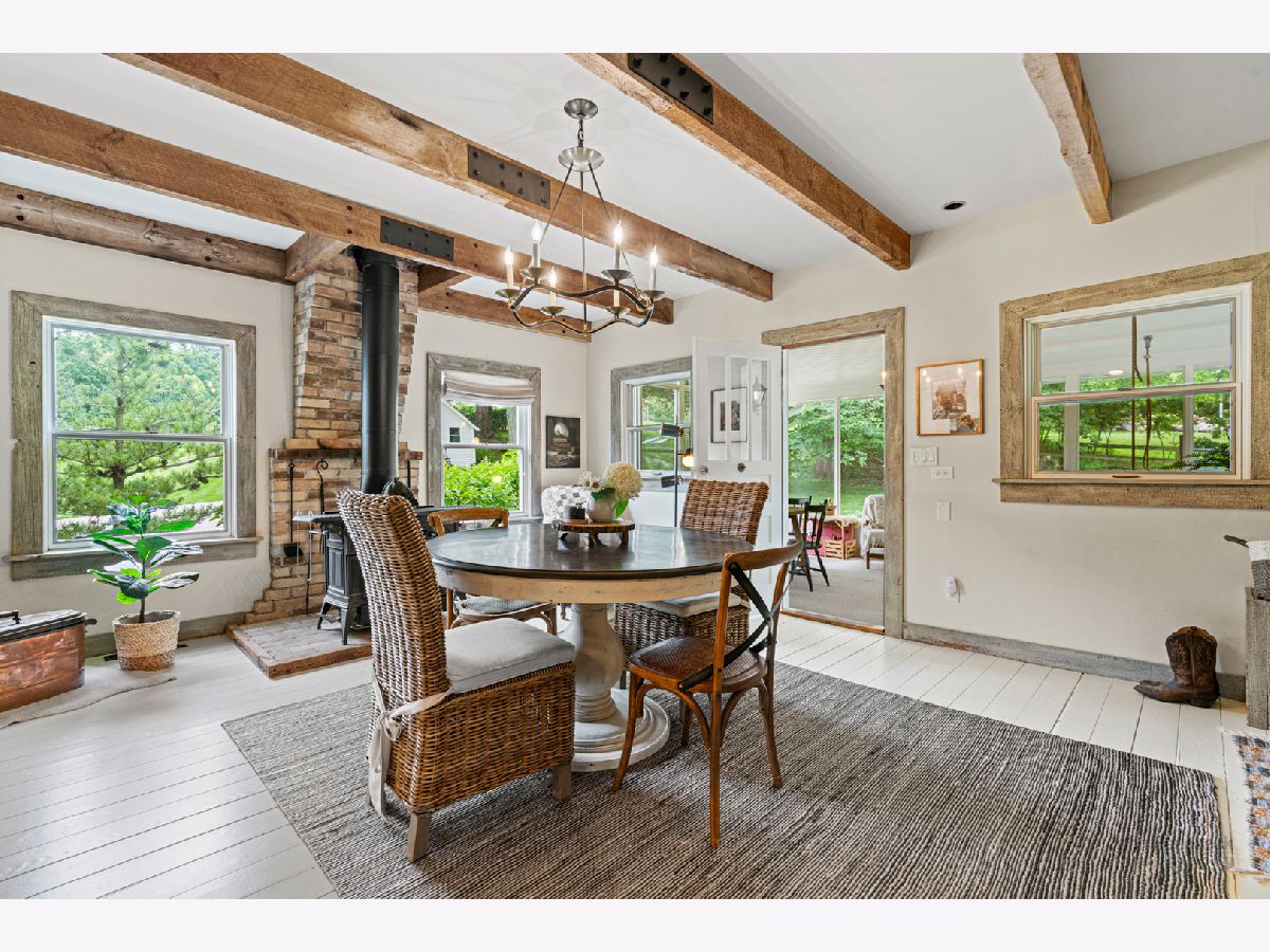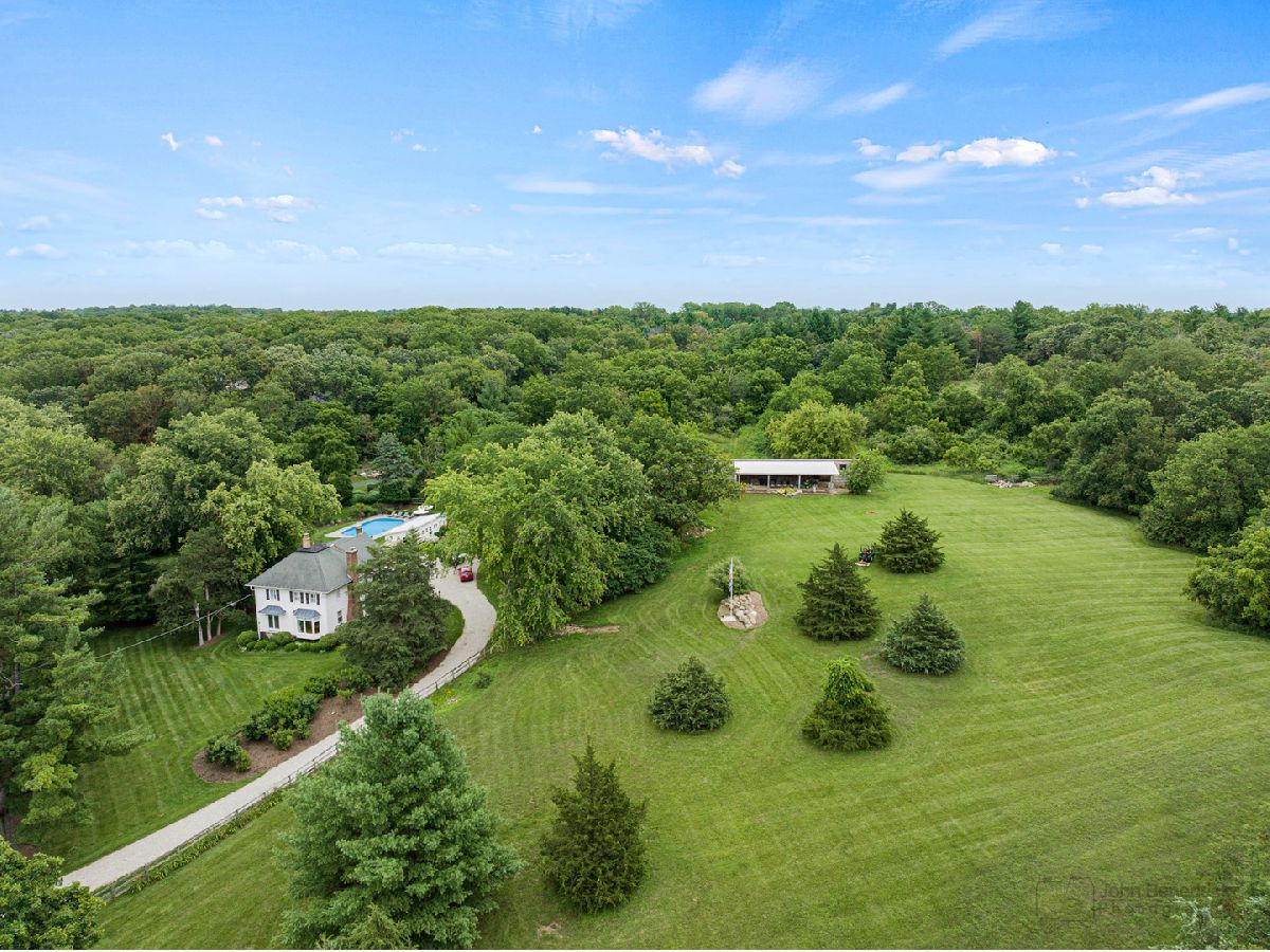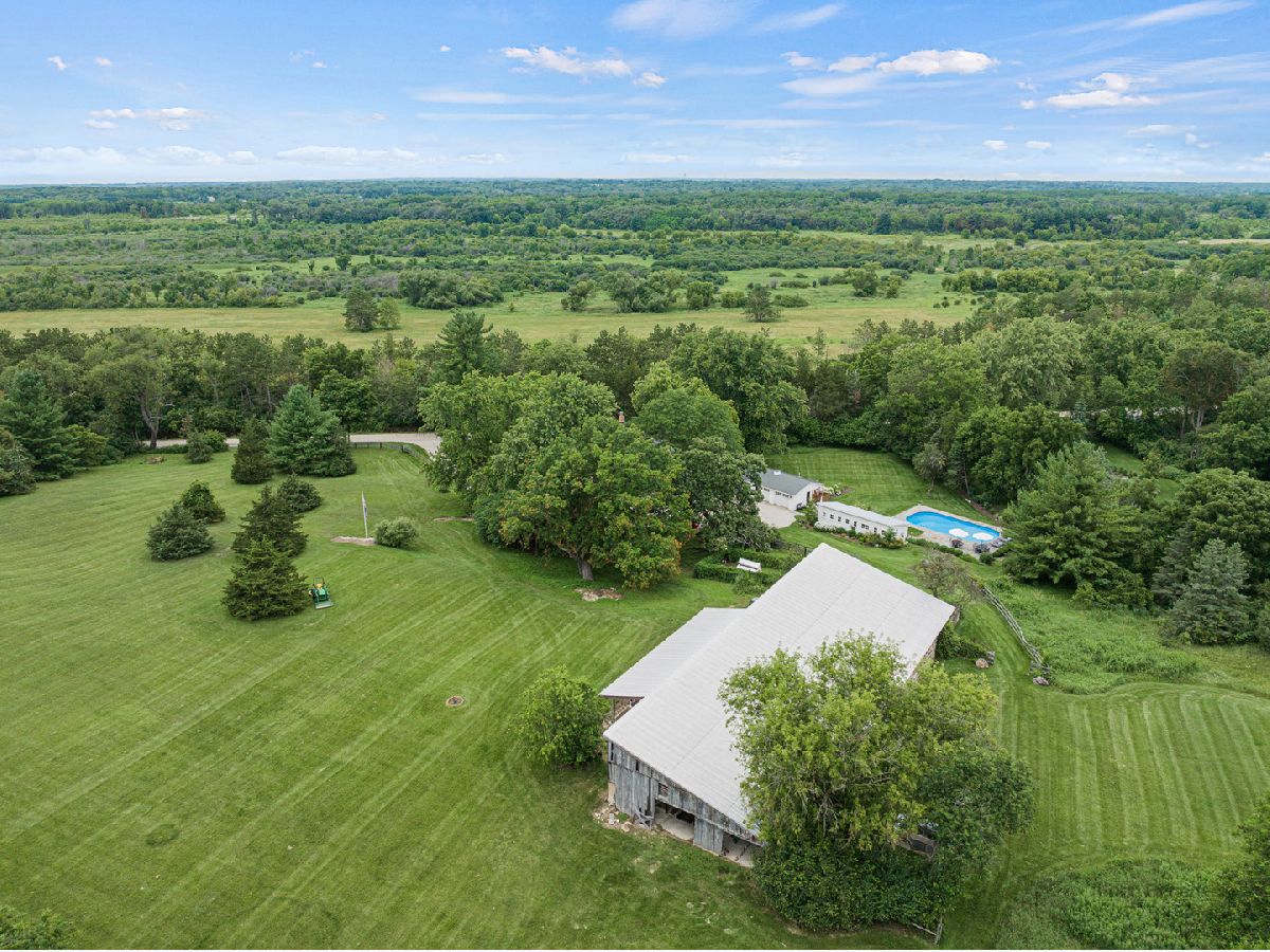 This Iconic Bull Valley Farmhouse is situated on 8 beautiful rolling acres. Enjoy an evening toast to the sunset on "Cocktail Hill" overlooking the well maintained grounds and the 700 acres of conservation land across the street. Ultimate privacy in this home featuring updated large eat-in magazine worthy country kitchen with beamed ceilings, high end stainless steel appliances (Viking-Bosch), plenty of cabinets and counter space. Brand new updated full bath, stunning! Whole house Kohler Generator. The unique 10 stall barn was originally built as a dairy barn from the stones and boulders on the property. It has since has been elevated to a wedding venue and many gatherings with friends and family for campfires and music concerts. Firewood transfers with the property but musical talent does not! Relax on the swing in the screen porch while watching the chickens in the chicken coop, formally the little school house. Full on natural outdoor shower next to the built in salt water swimming pool with new liner 2022, heater 2021. Gleaming woodwork, beams and floors throughout. All mechanicals within the past few years. Down the street is access to horse trails.