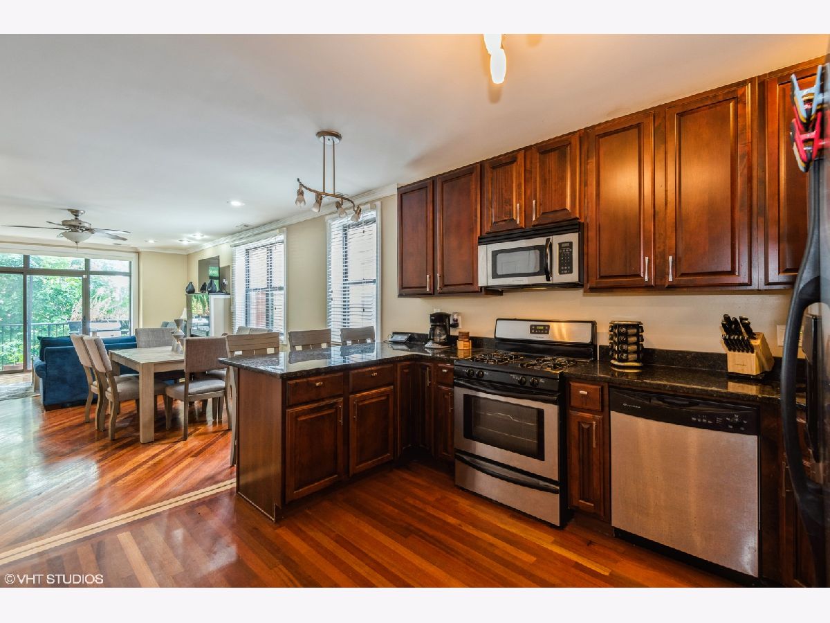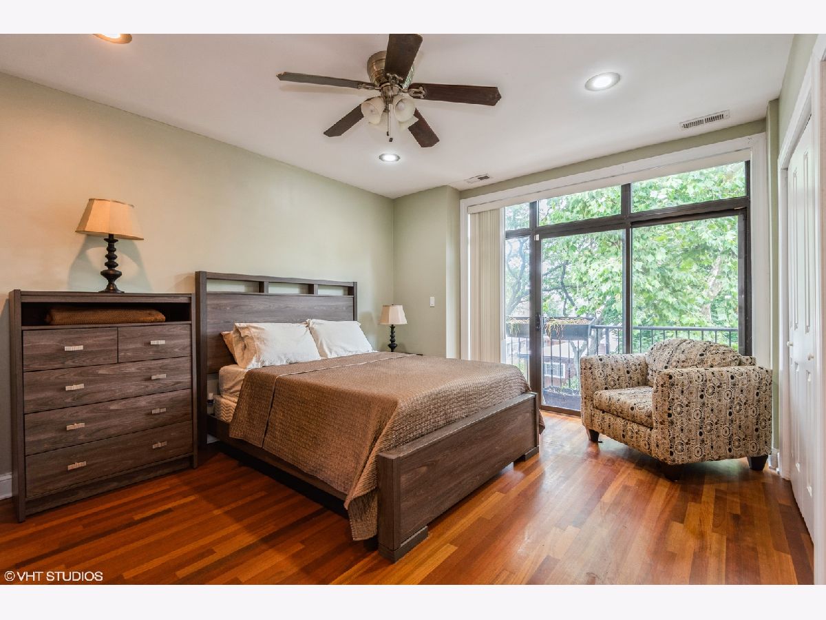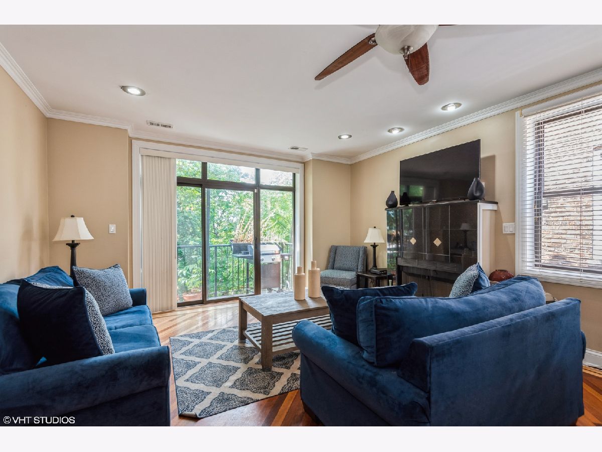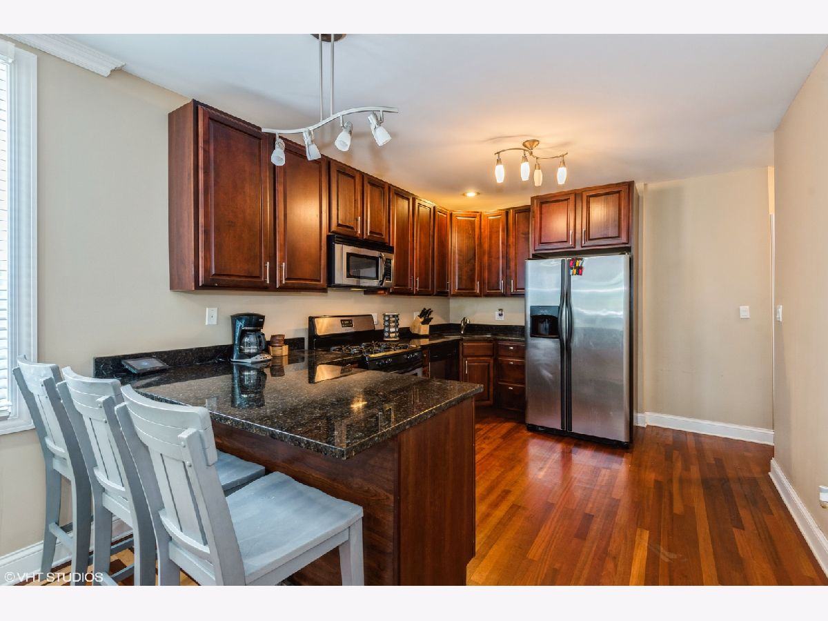 Top floor two bedroom, two bathroom, penthouse unit on a quiet tree-lined street in West Rogers Park. Kitchen includes granite countertops, 42" cabinetry, stainless steel appliances, and under mount sink. Brazilian cherry hardwood floors throughout the entire unit, gas/wood burning fireplace and 5" base and crown molding.. Both bedrooms have en suite bathrooms that feature limestone tile, jacuzzi tub and full body shower. In unit laundry as well as balconies off of the primary bedroom and living room. One exterior parking space included.